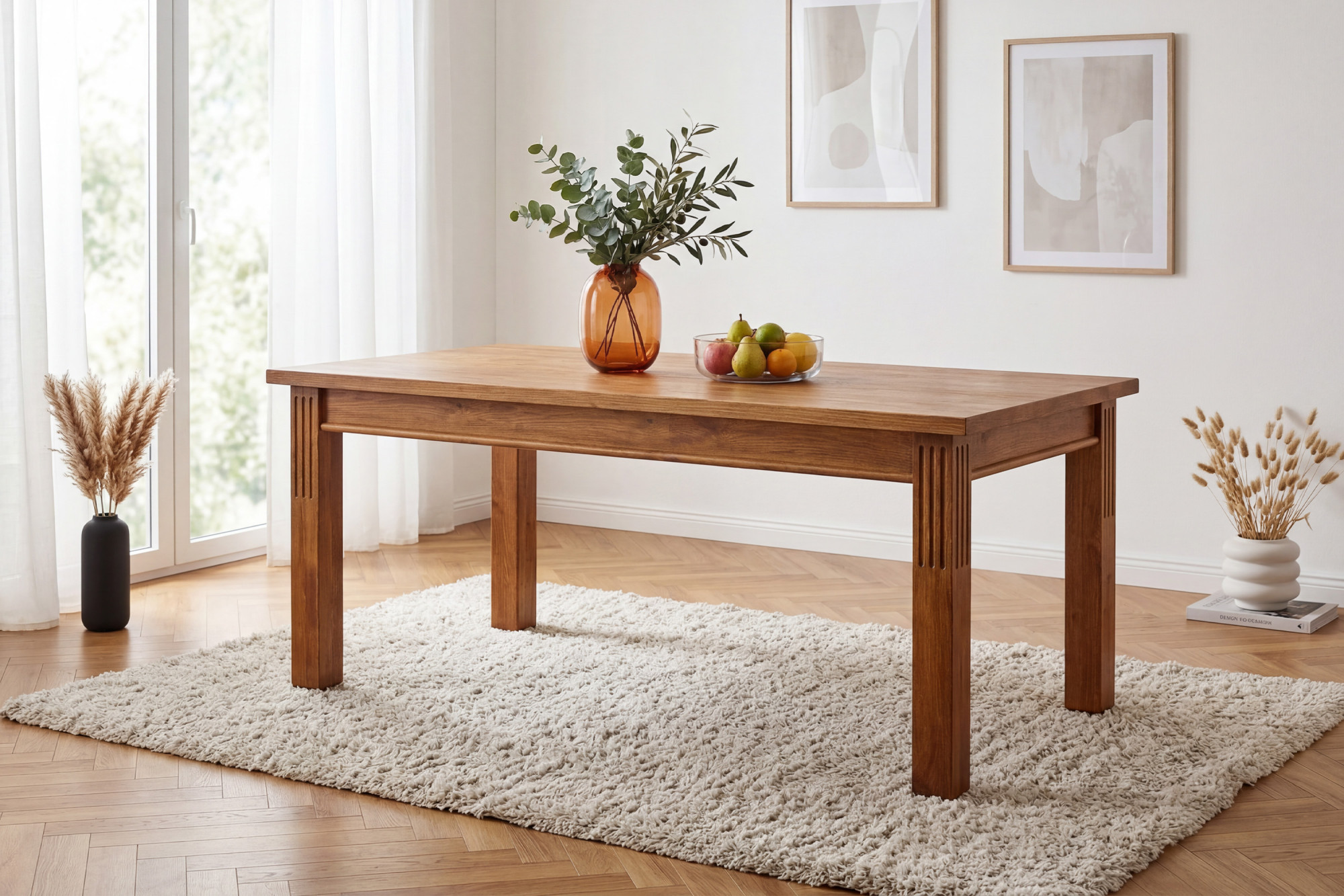 Az Prestige asztal olyan vásárlóknak készült, akik szeretnék ötvözni a megbízható természetes anyagot a reprezentatív megjelenéssel és a gyakorlati használhatósággal. A fenyő tömörfa népszerű a szilárdsága, természetes erezete és a belső térben teremtett otthonos hangulat miatt. A 200 × 100 cm méret elegendő helyet nyújt nagyobb családoknak és kényelmes étkezéshez társasági alkalmakkor.
