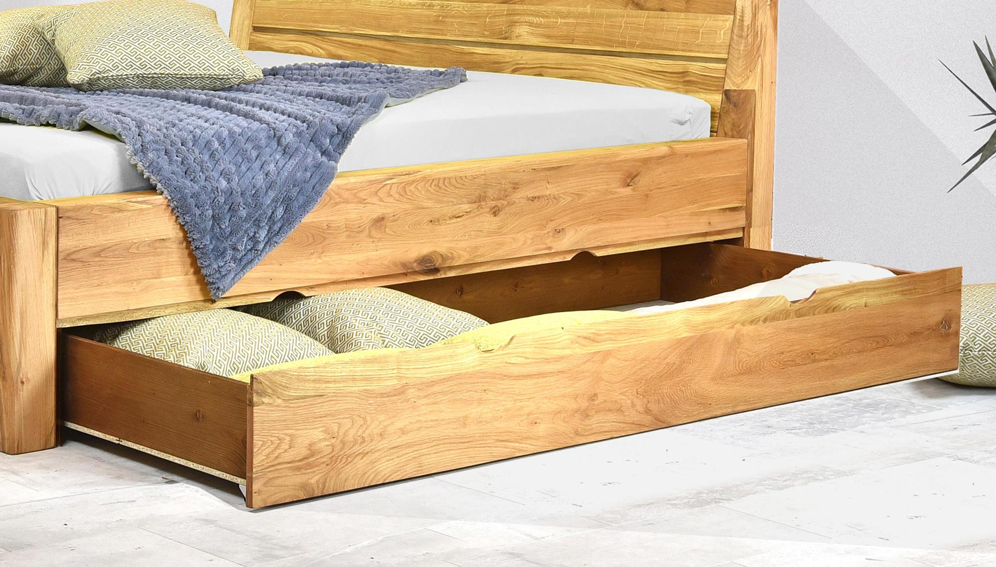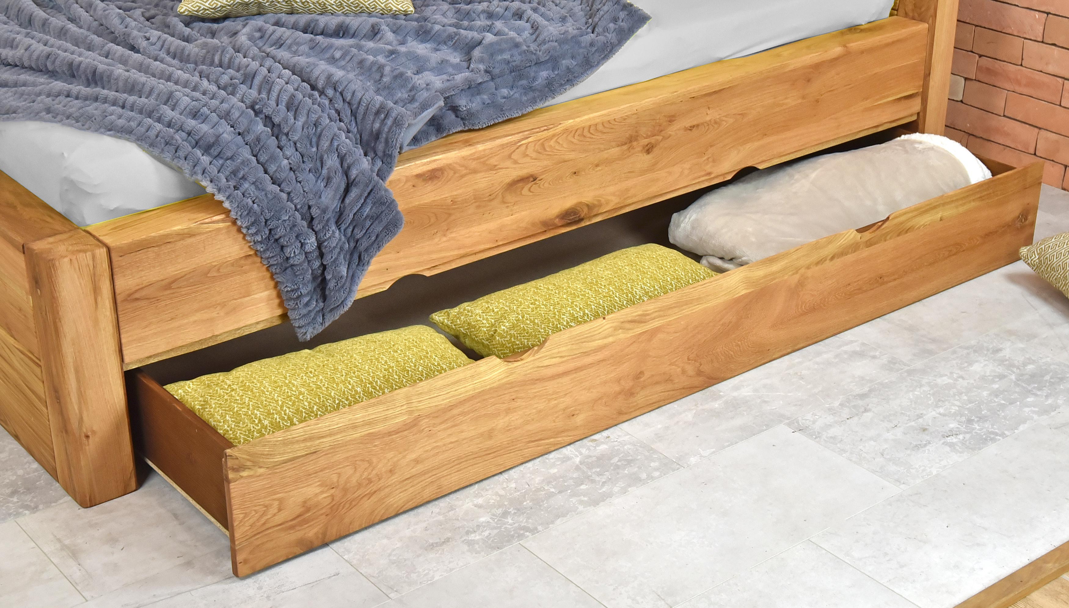 Ágy alatti tároló fiók tölgyfa előlappal, lucfenyő váz, kerekes 150 cm