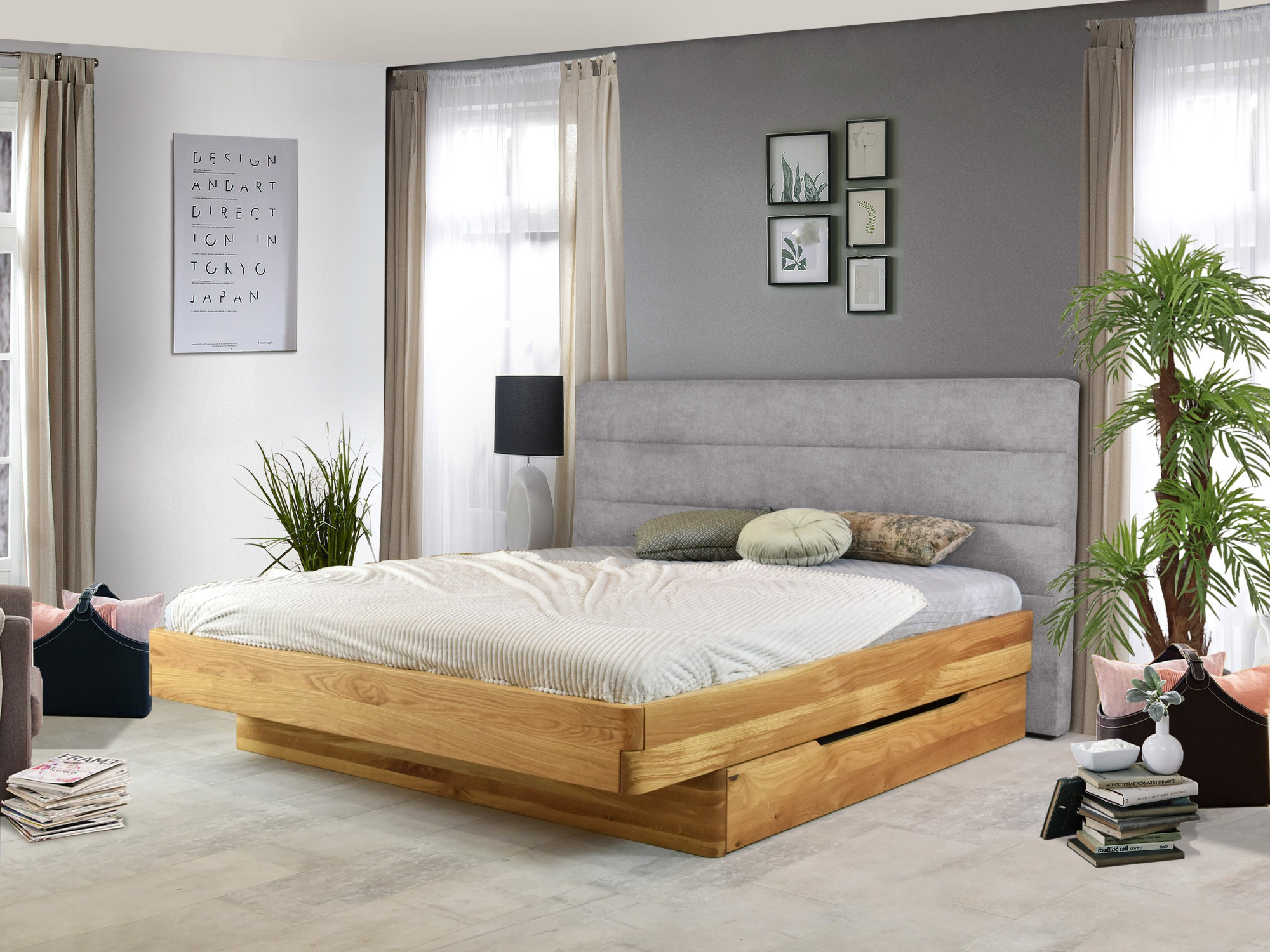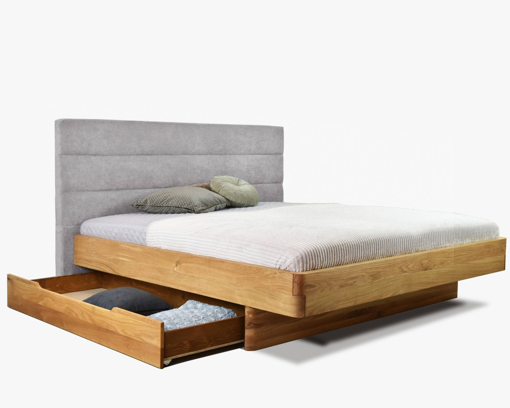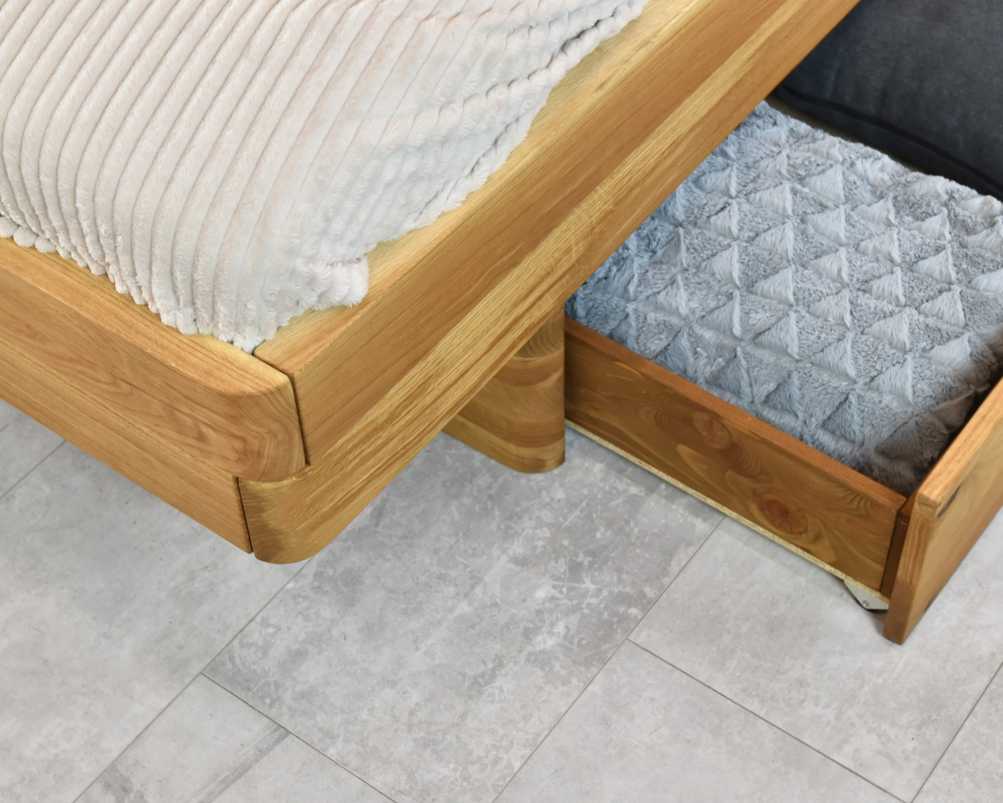 Ágy alatti tároló fiók tölgyfa előlappal, lucfenyő váz, kerekes 150 cm