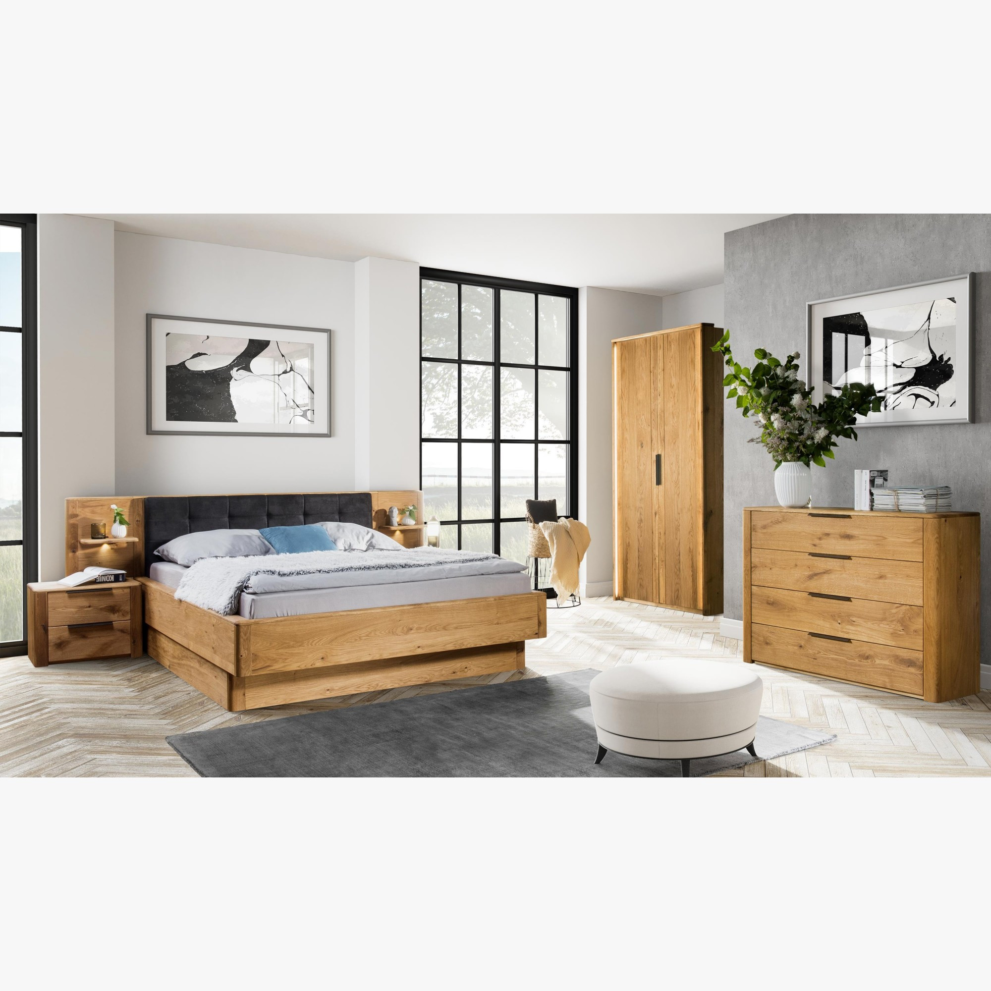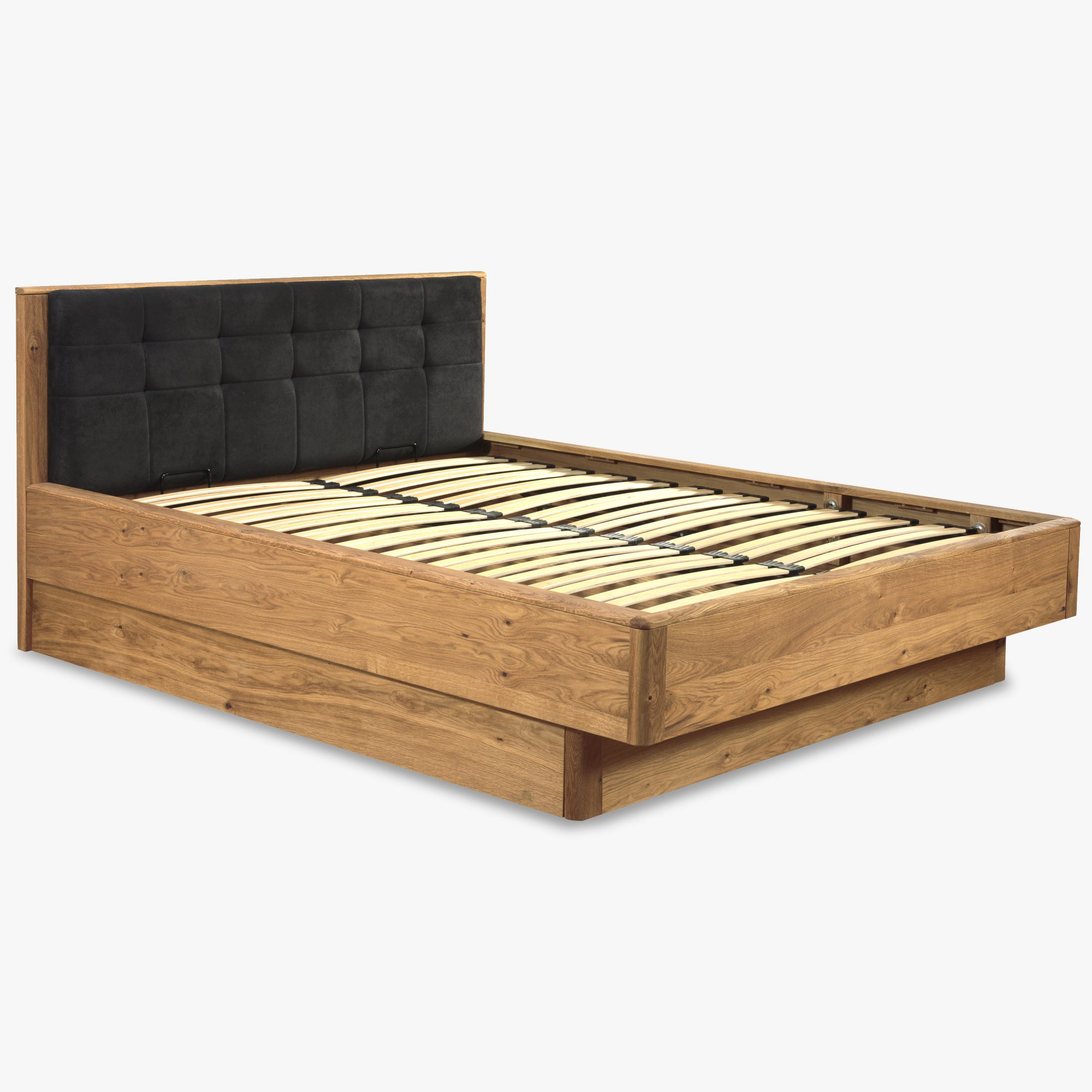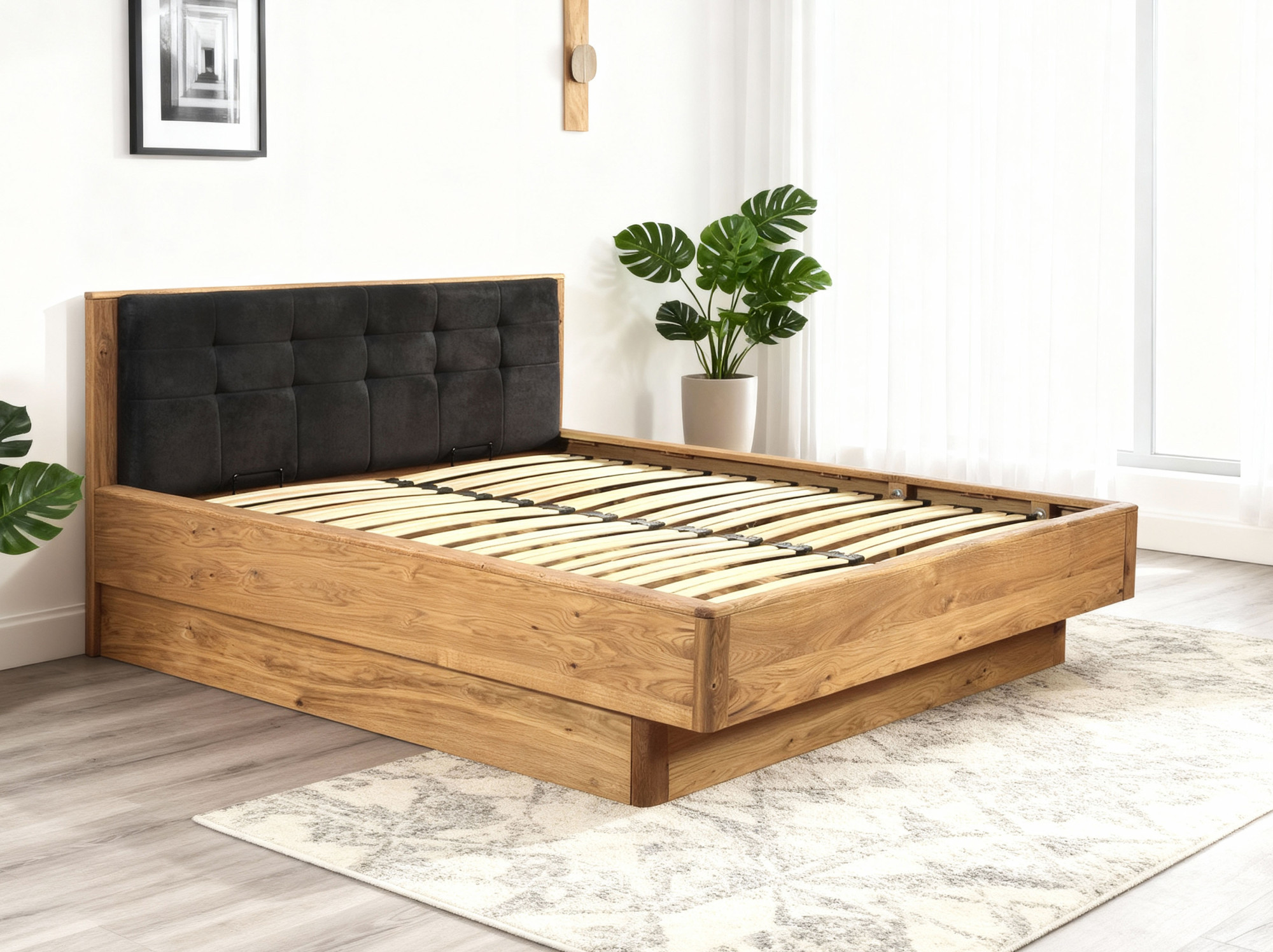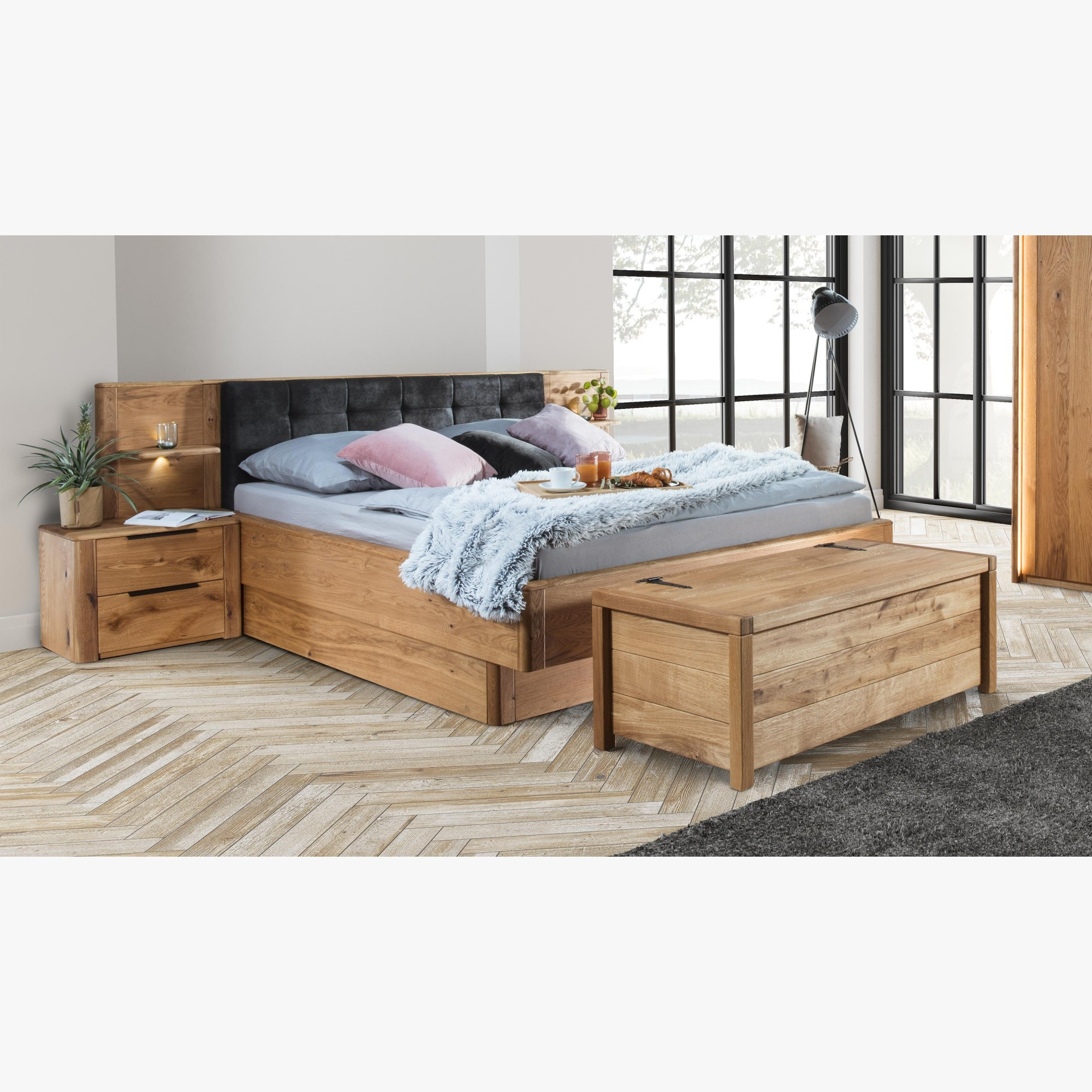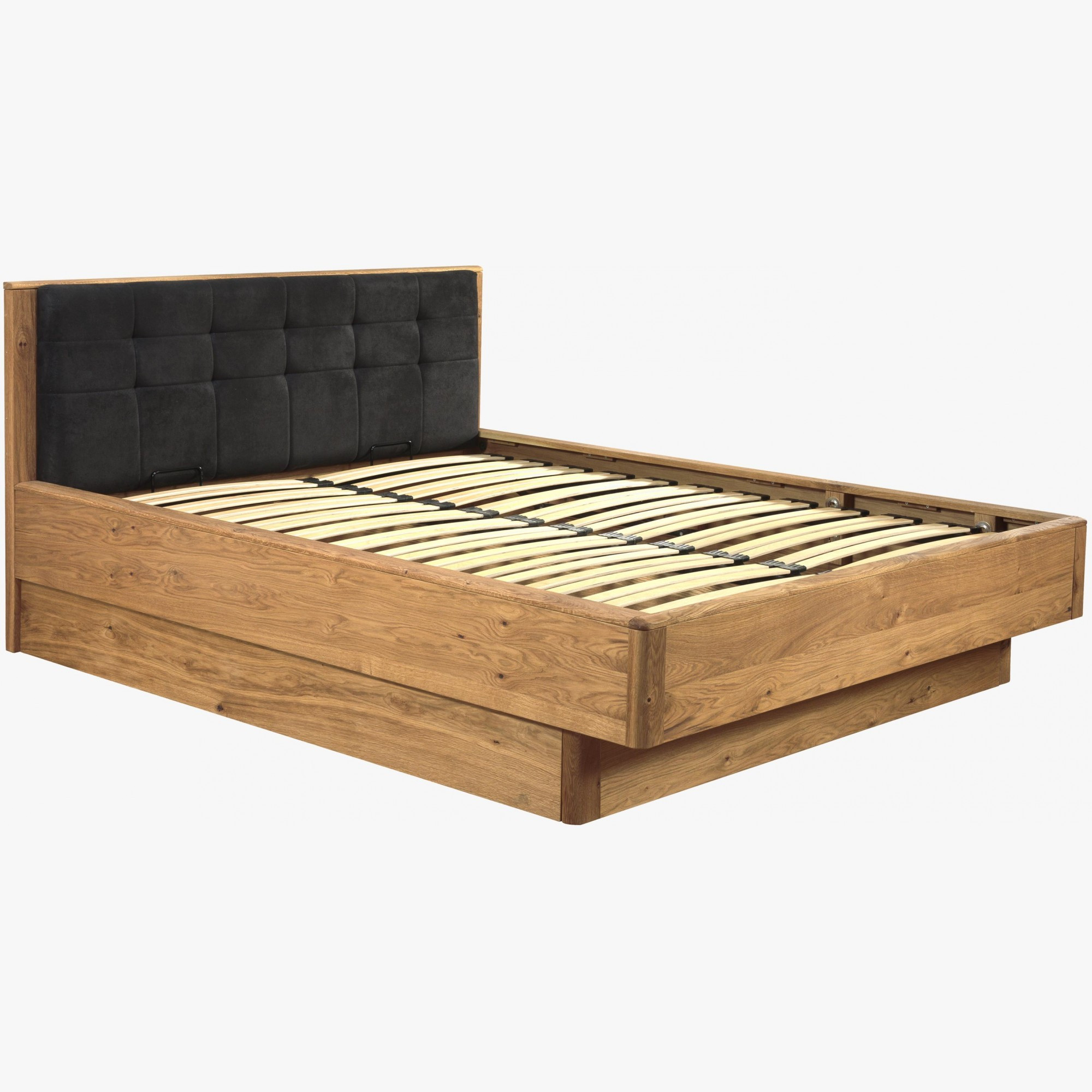 Tömör tölgyfa tárolós ágy 180x200 cm, lamellás ágyráccsal