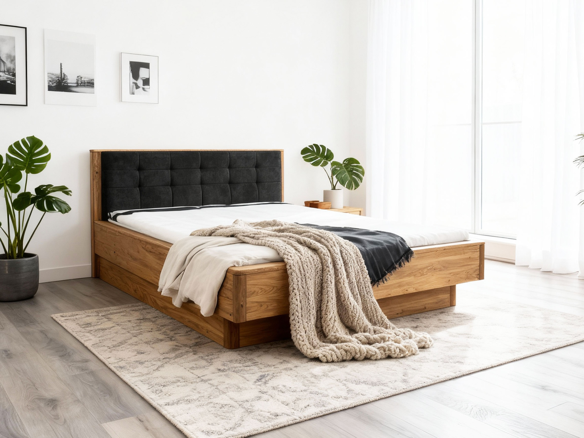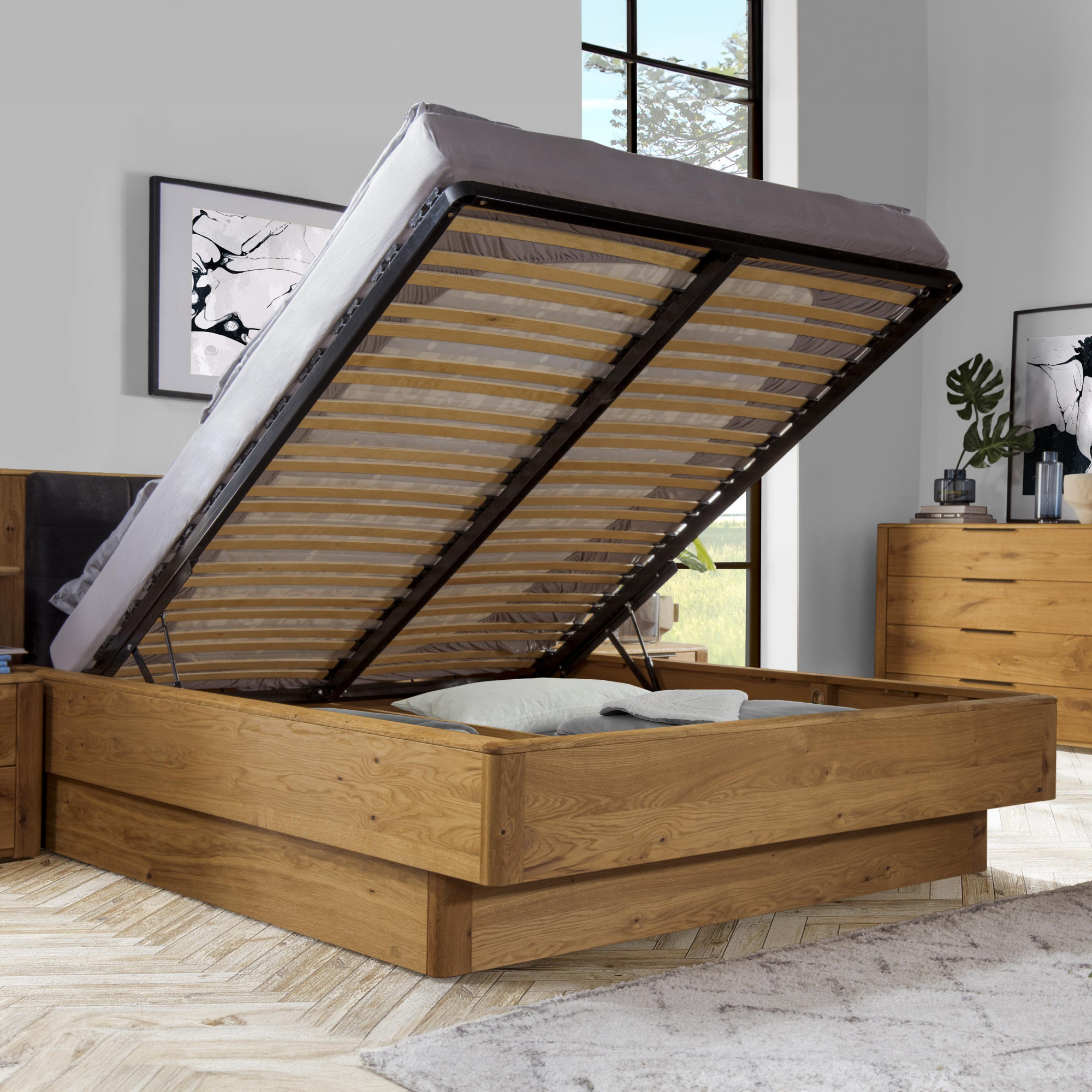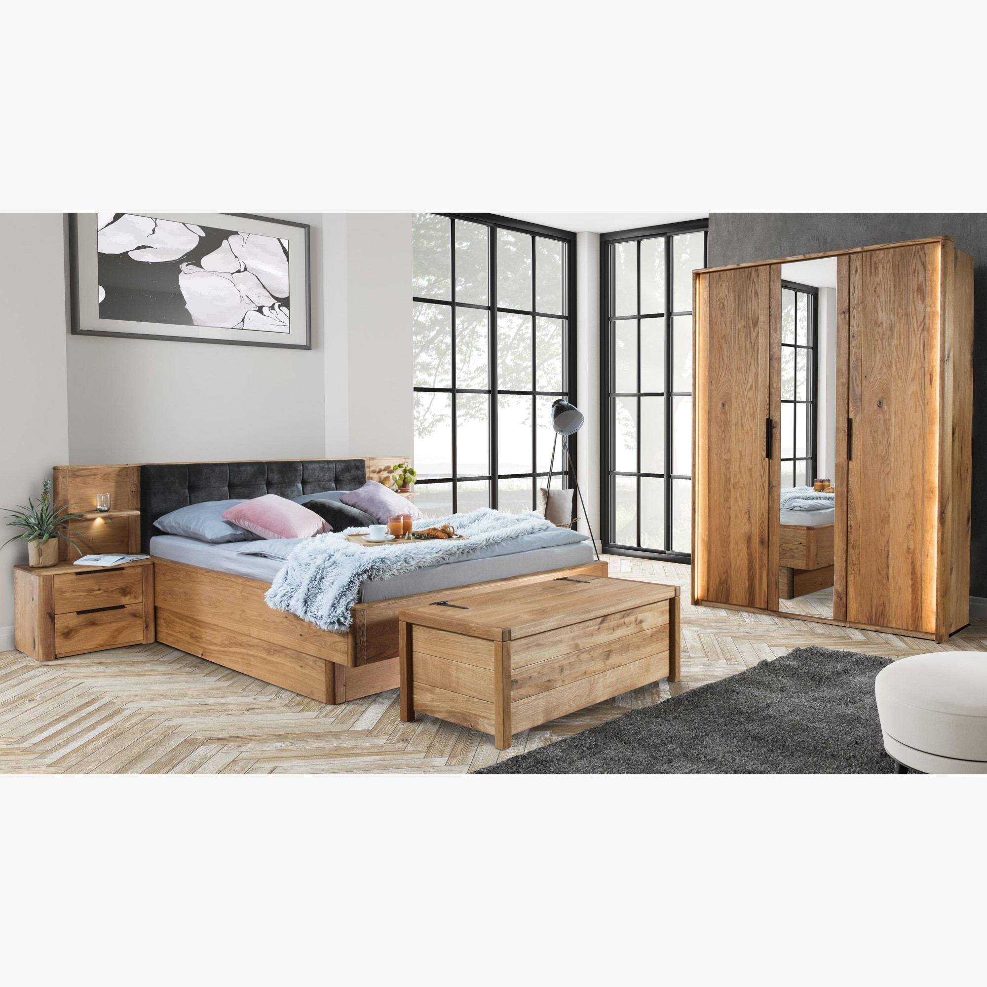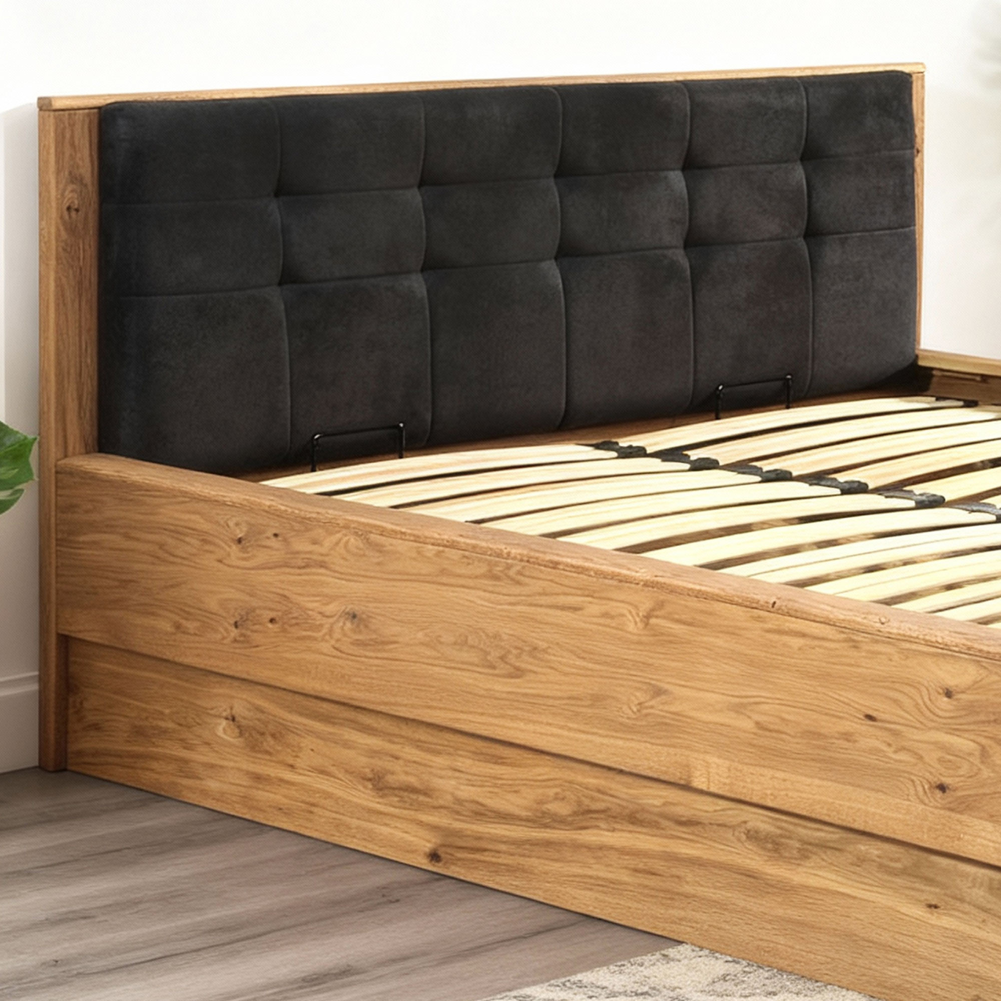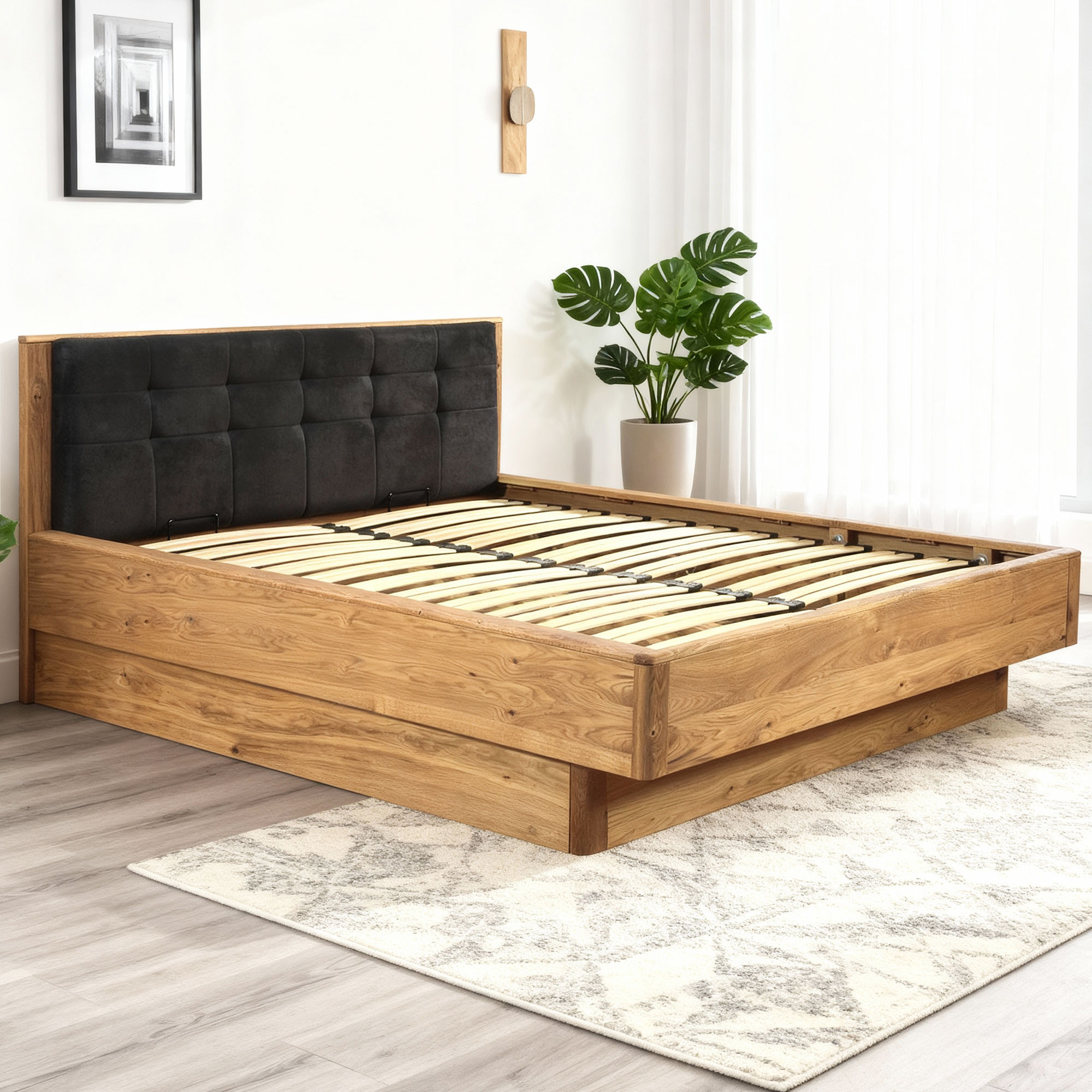 Tömör tölgyfa tárolós ágy 180x200 cm, lamellás ágyráccsal