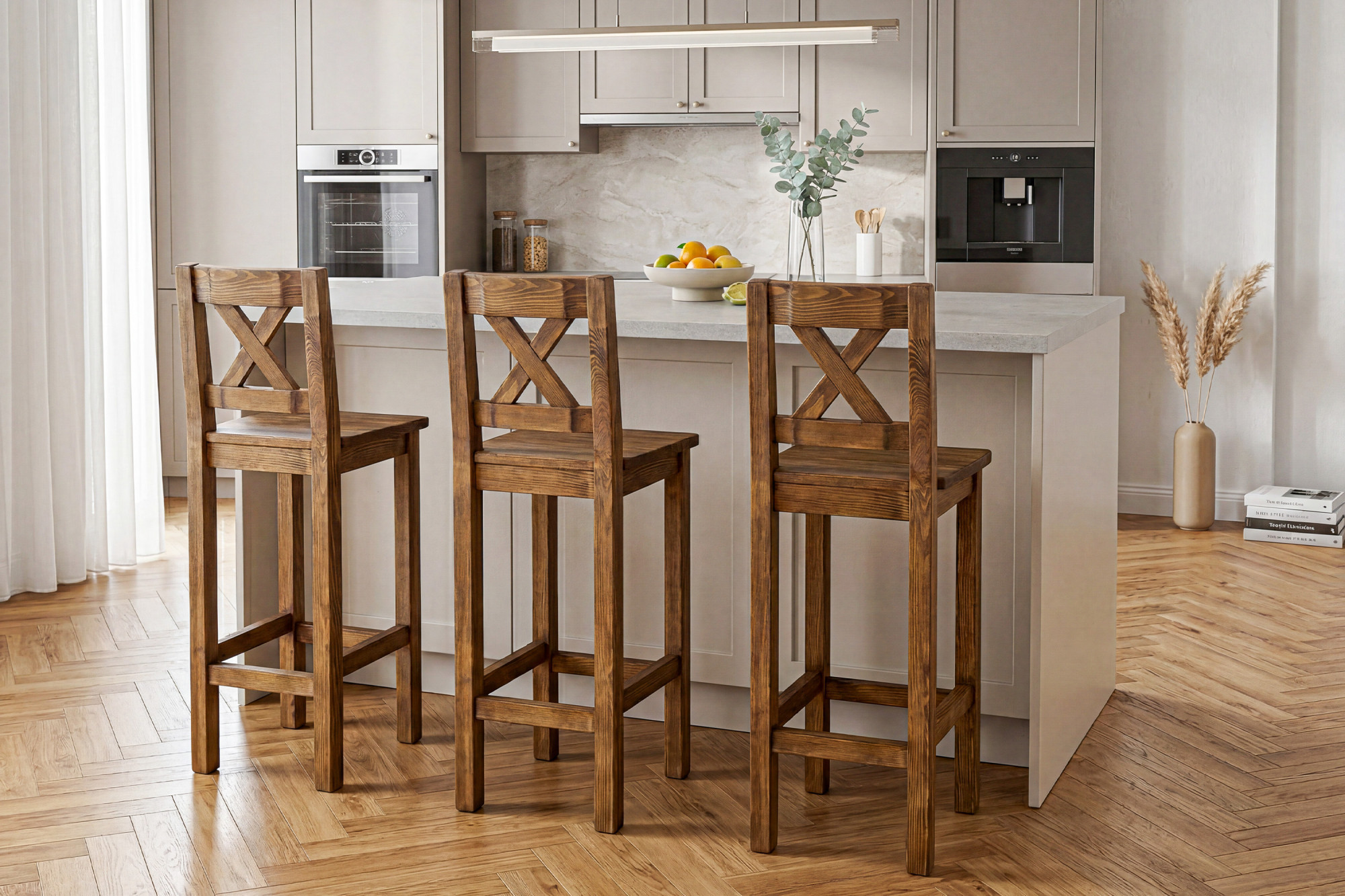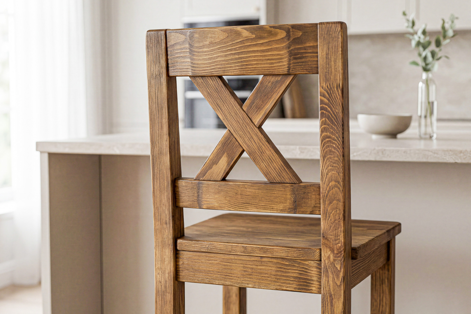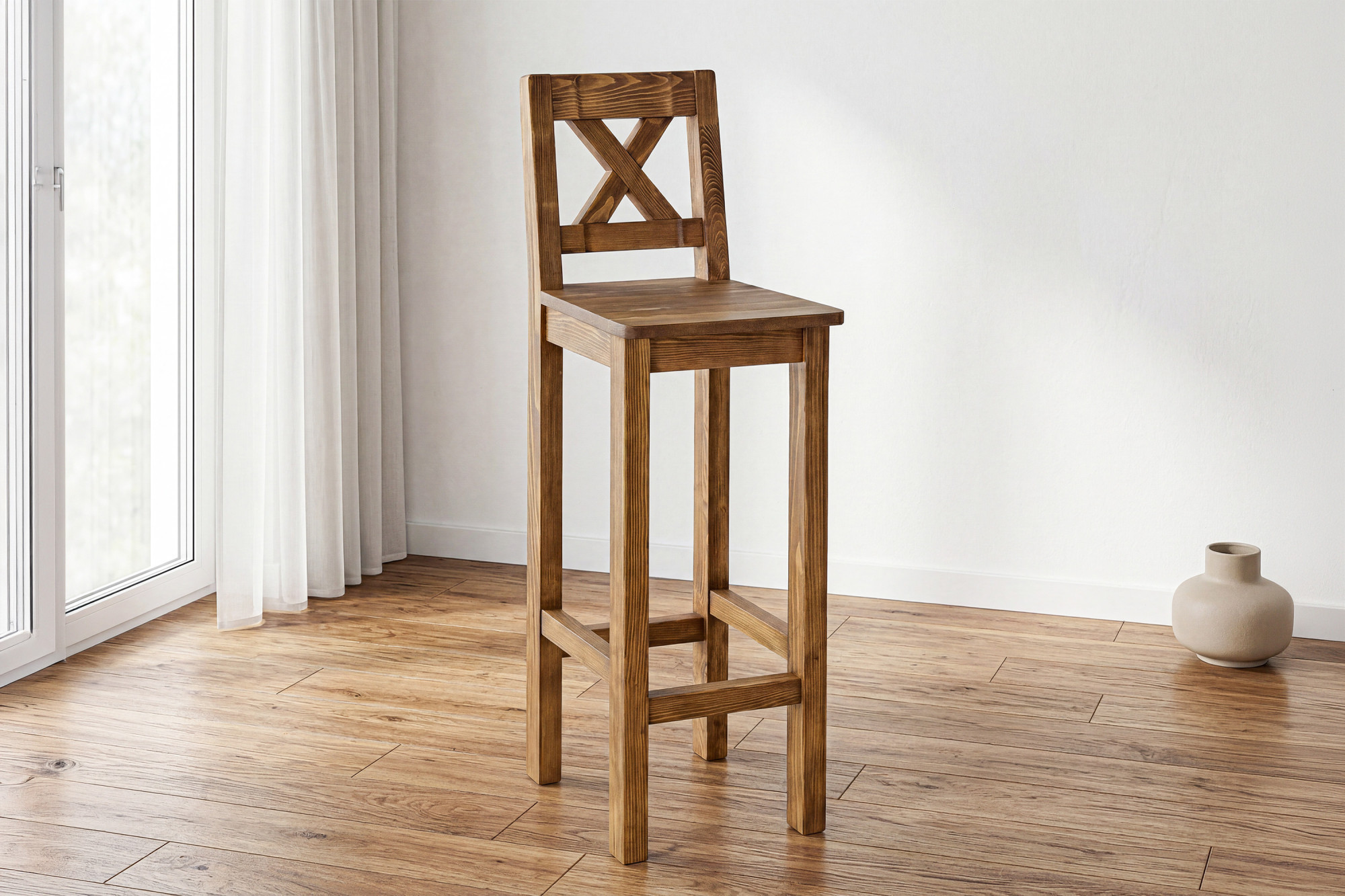 A bárszék minőségi tömör fenyőből készül, amely szilárdságáról, stabilitásáról és hosszú élettartamáról ismert.
