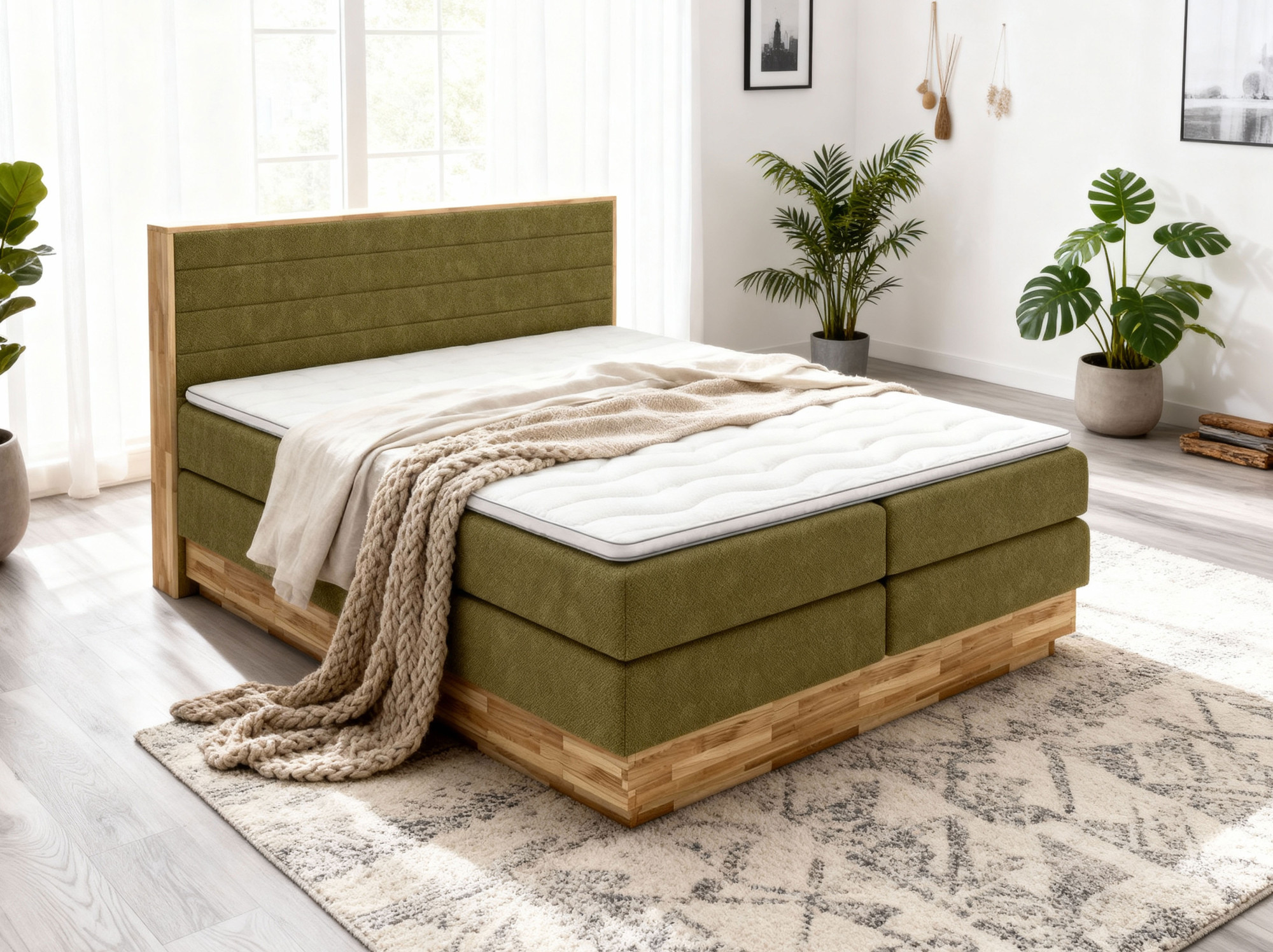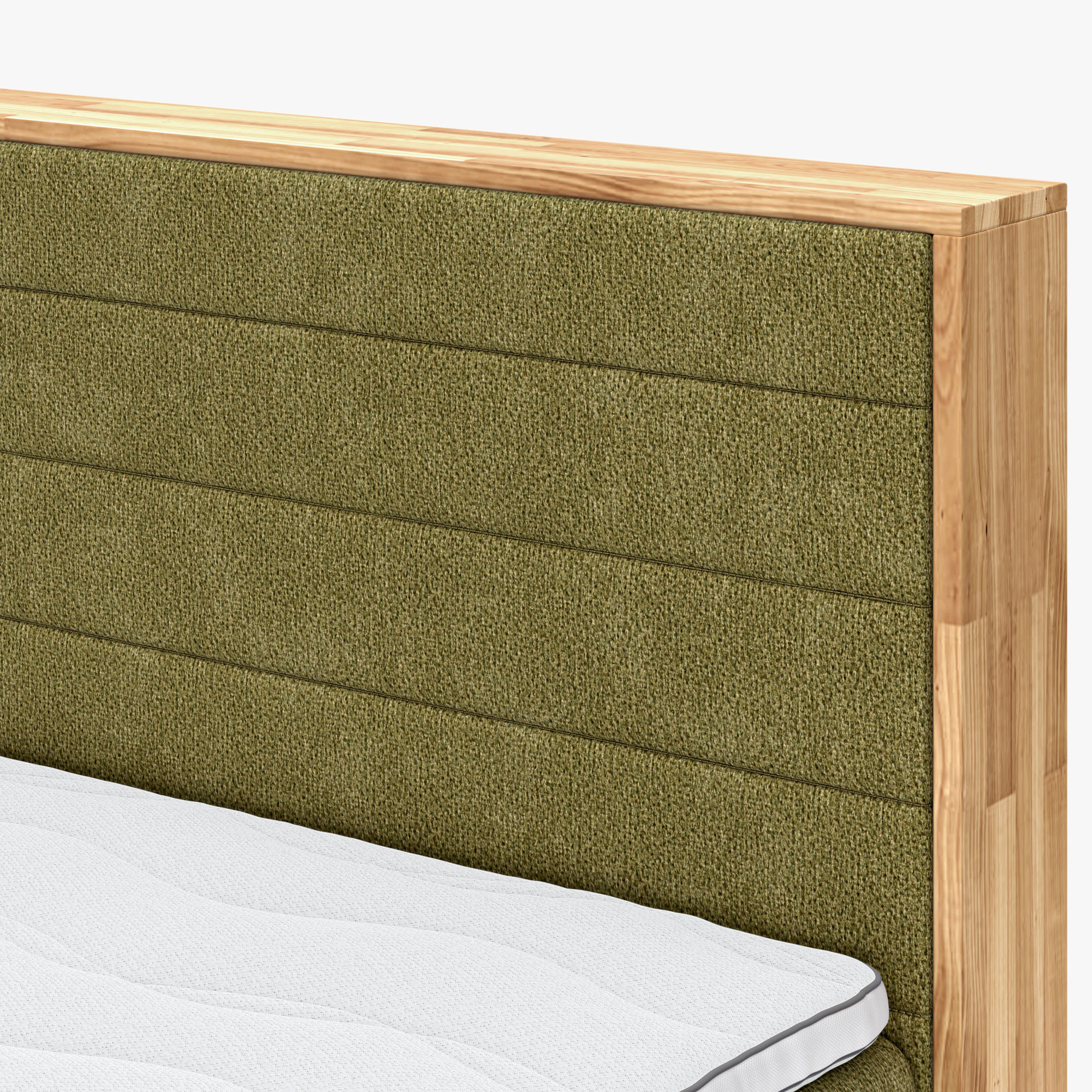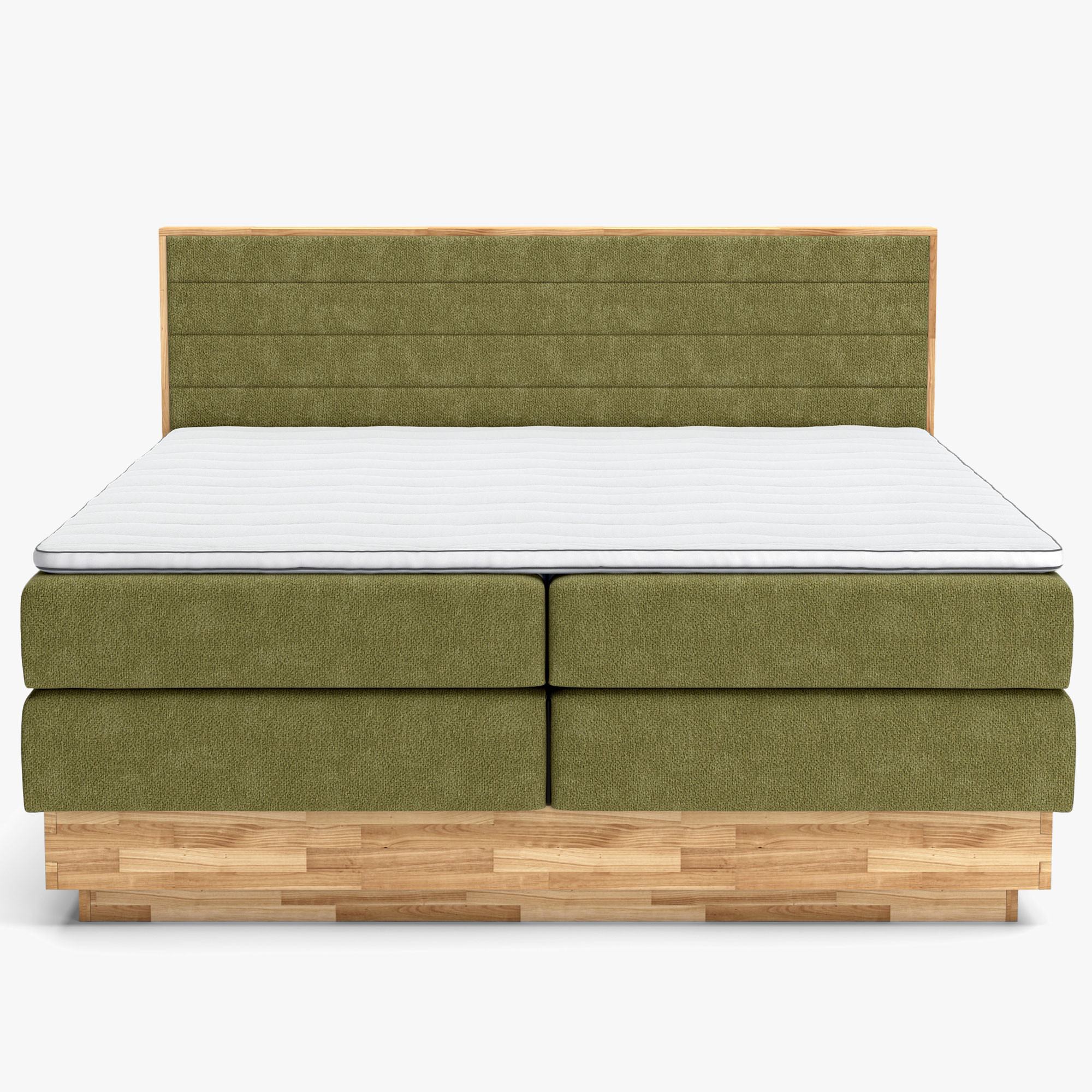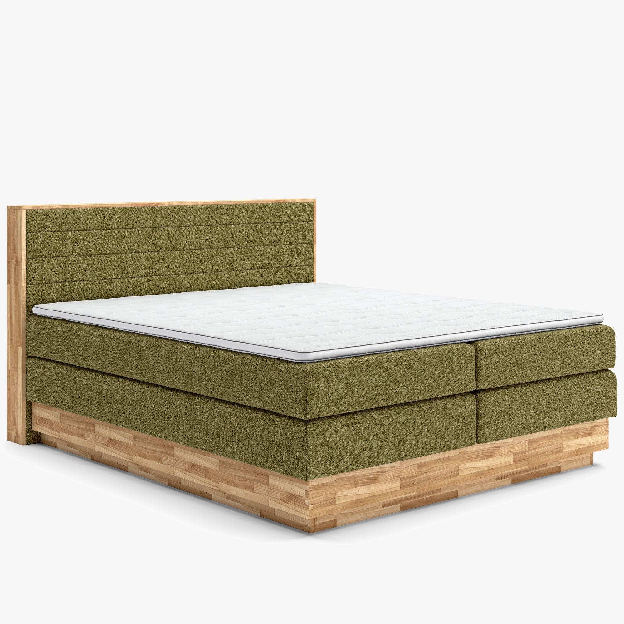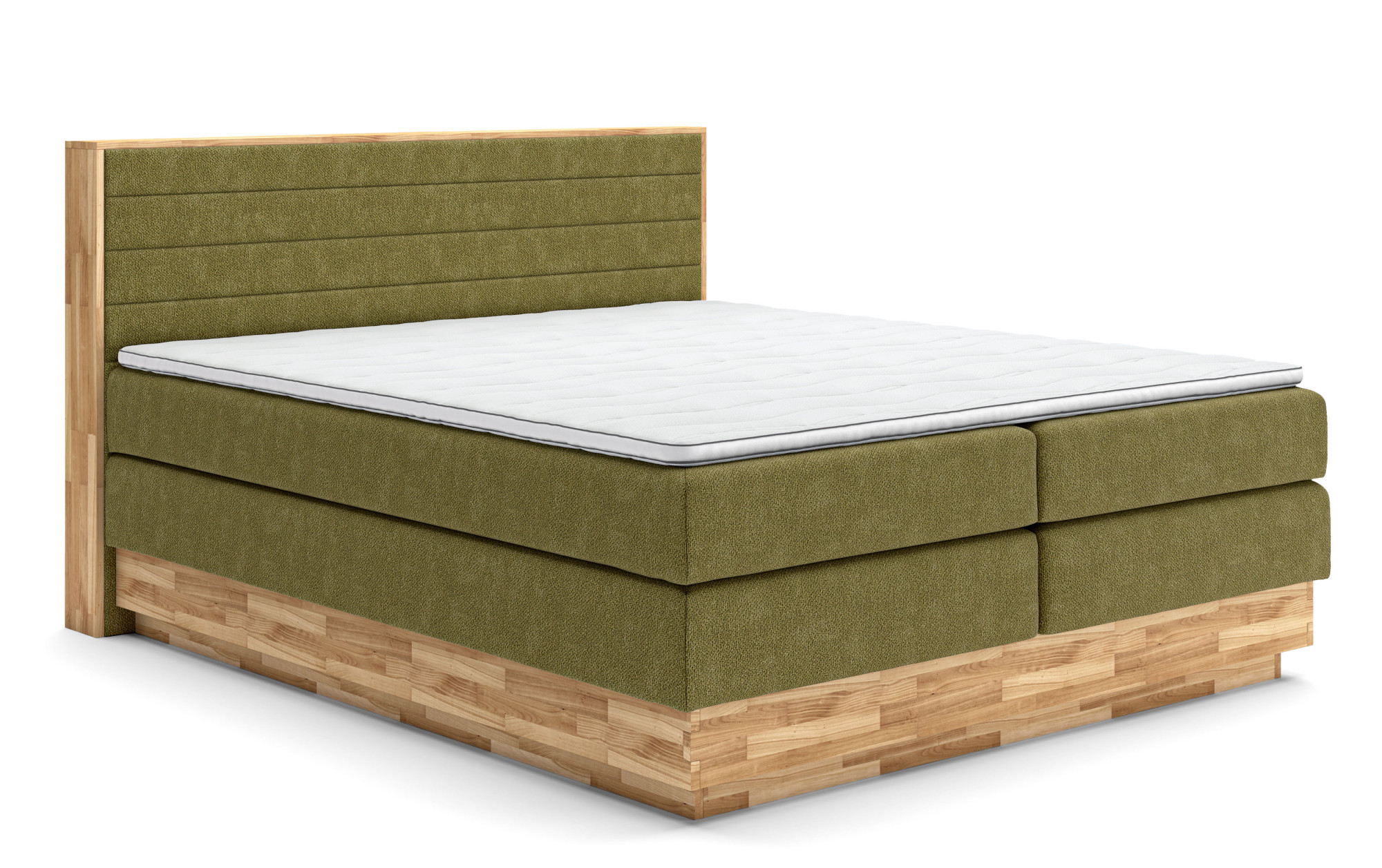 Tömör tölgy boxspring ágy tárolóval, olívazöld, 180x200 cm