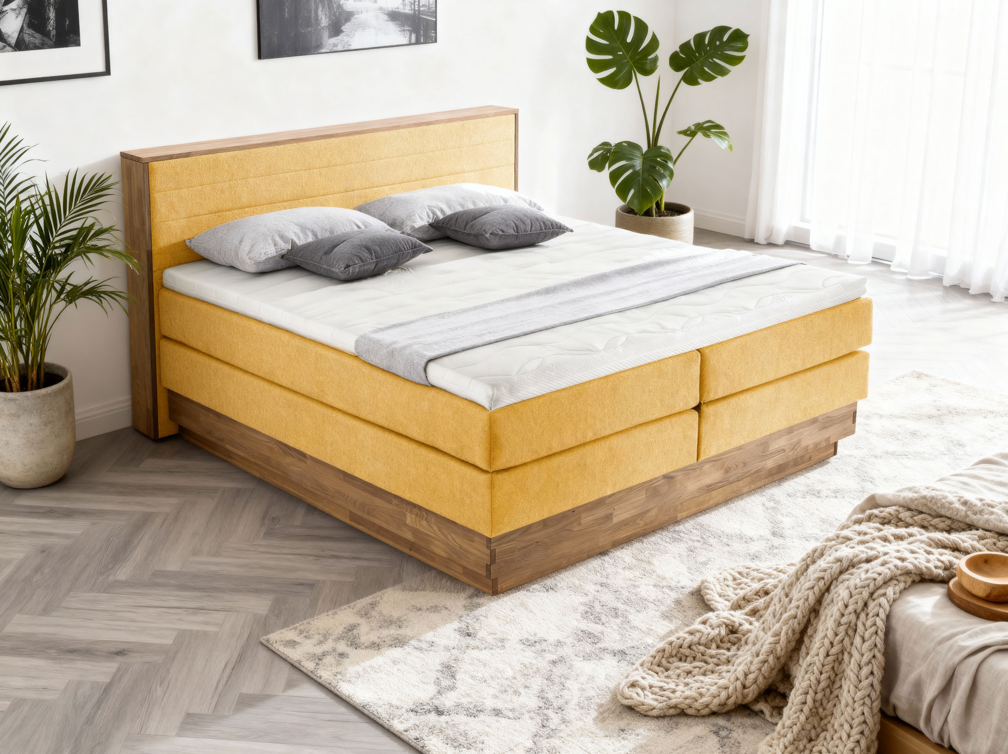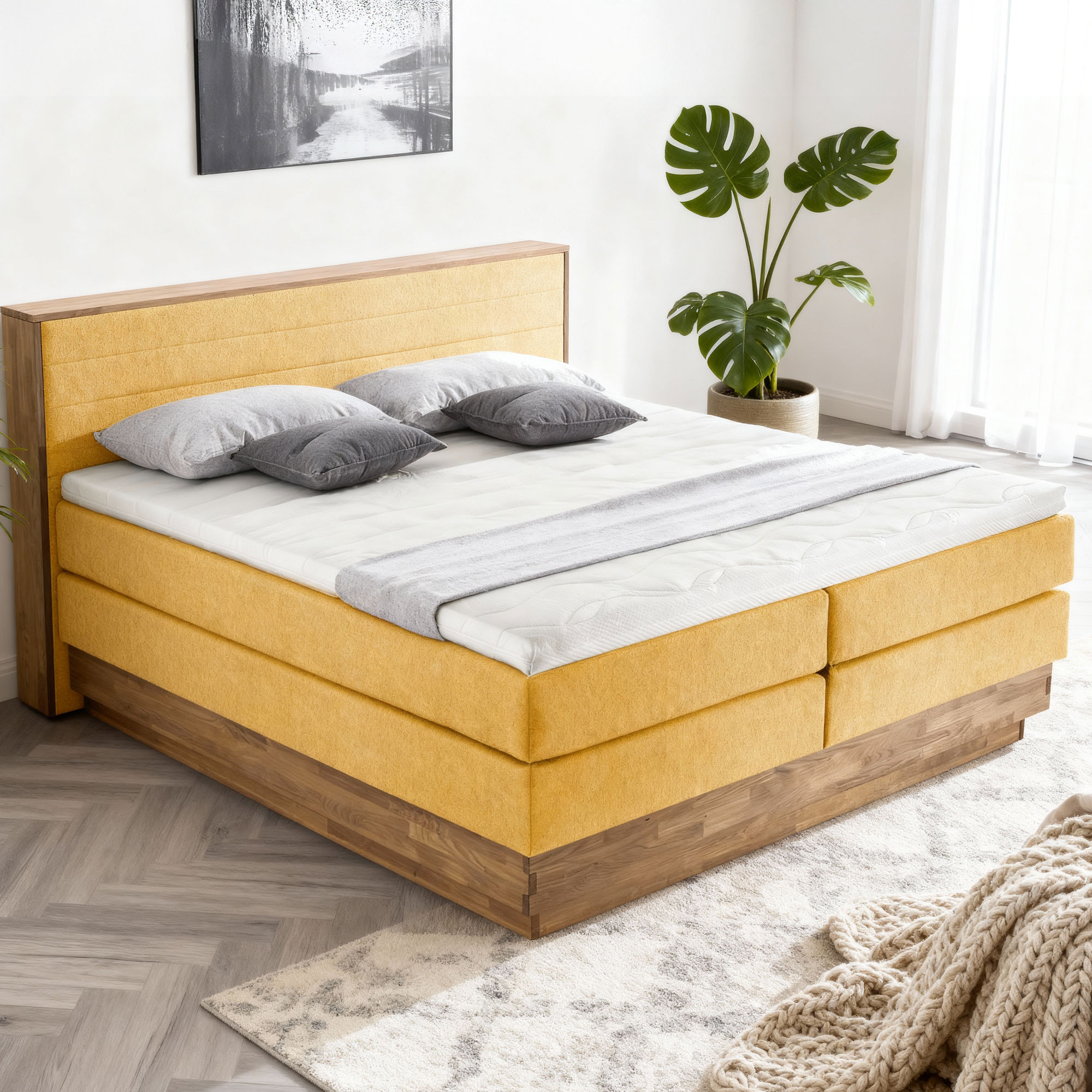 A Moneta boxspring ágy ideális választás olyan otthonok számára, amelyek minőségi és stílusos bútort keresnek. Ez az elegáns és modern kialakítású ágy ötvözi az olajozott, tömör tölgyfát, amely nemcsak hosszú élettartamot biztosít, hanem különösen otthonos és természetes megjelenést kölcsönöz hálószobájának. A fejtámla, amely a tömör fa keretbe illesztve található, masszív szerkezetet ad, amely rendkívül tartós és stabil, így hosszú távú használatot garantál esztétika és funkcionalitás elvesztése nélkül.