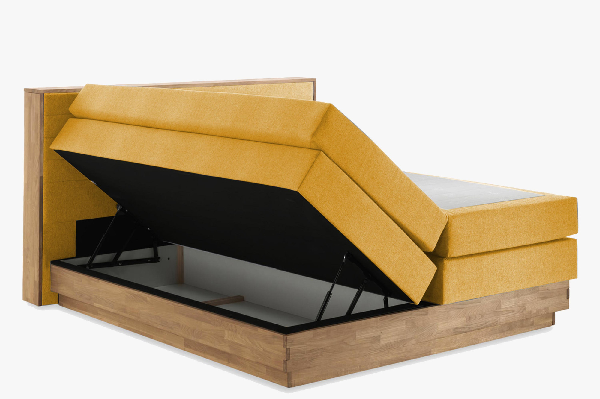 Tölgyfa boxspring ágy ágyneműtartóval, 180x200 cm, bonell és