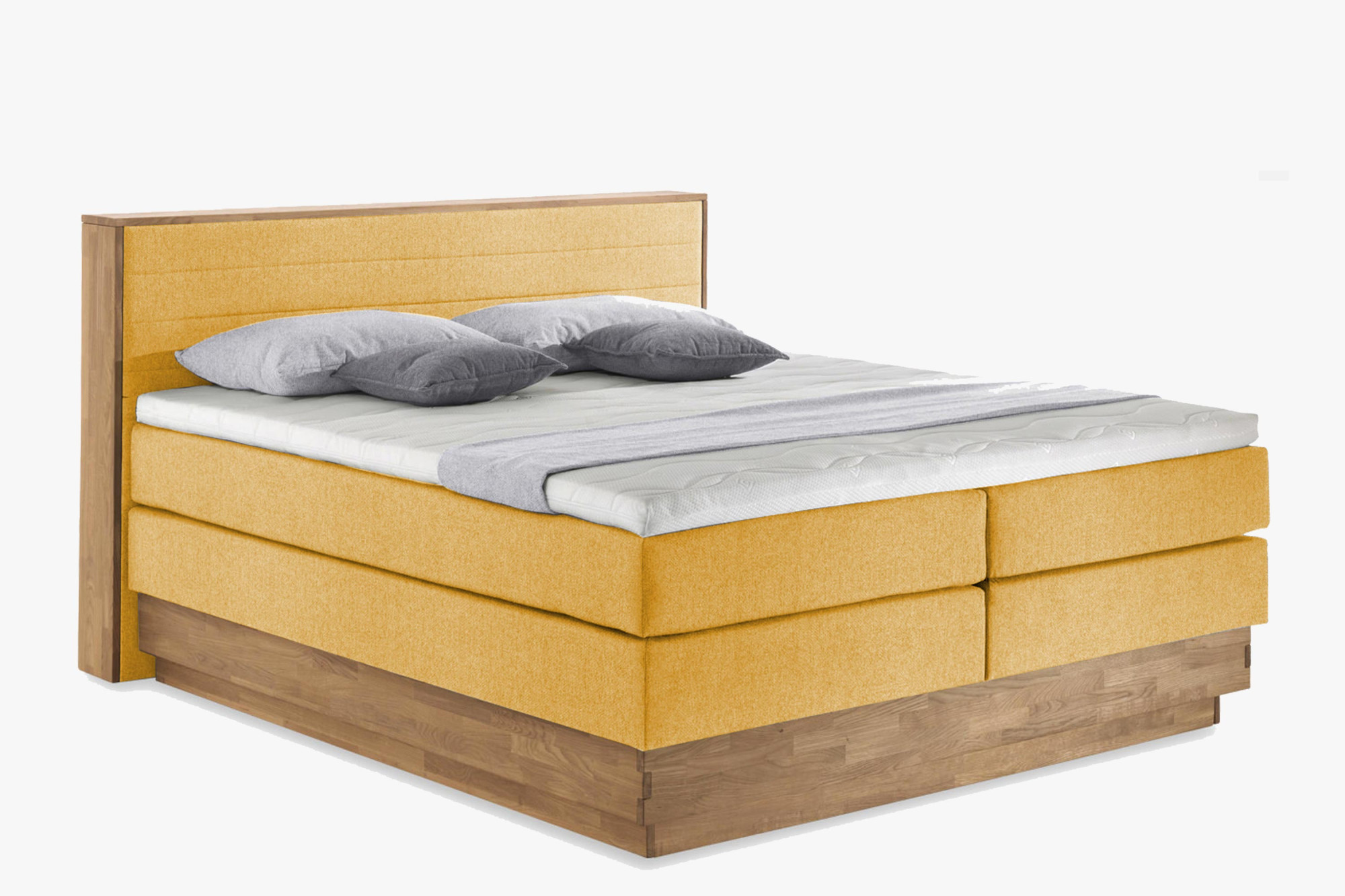 Boxspring ágy tárolóval, olajozott tömör tölgyfa keret, választható