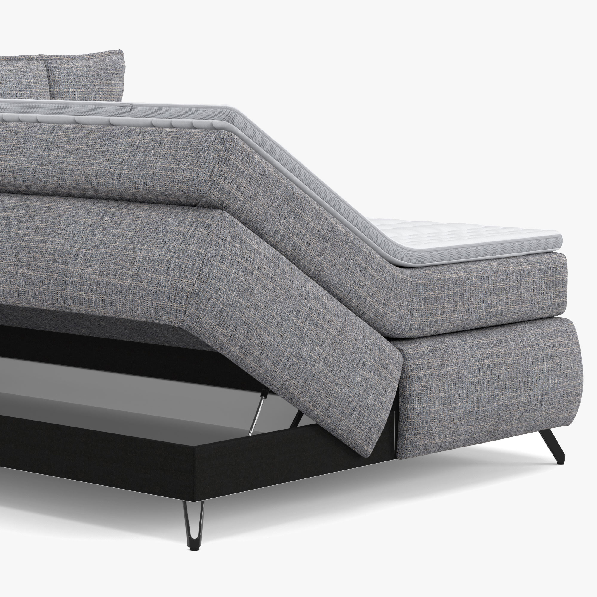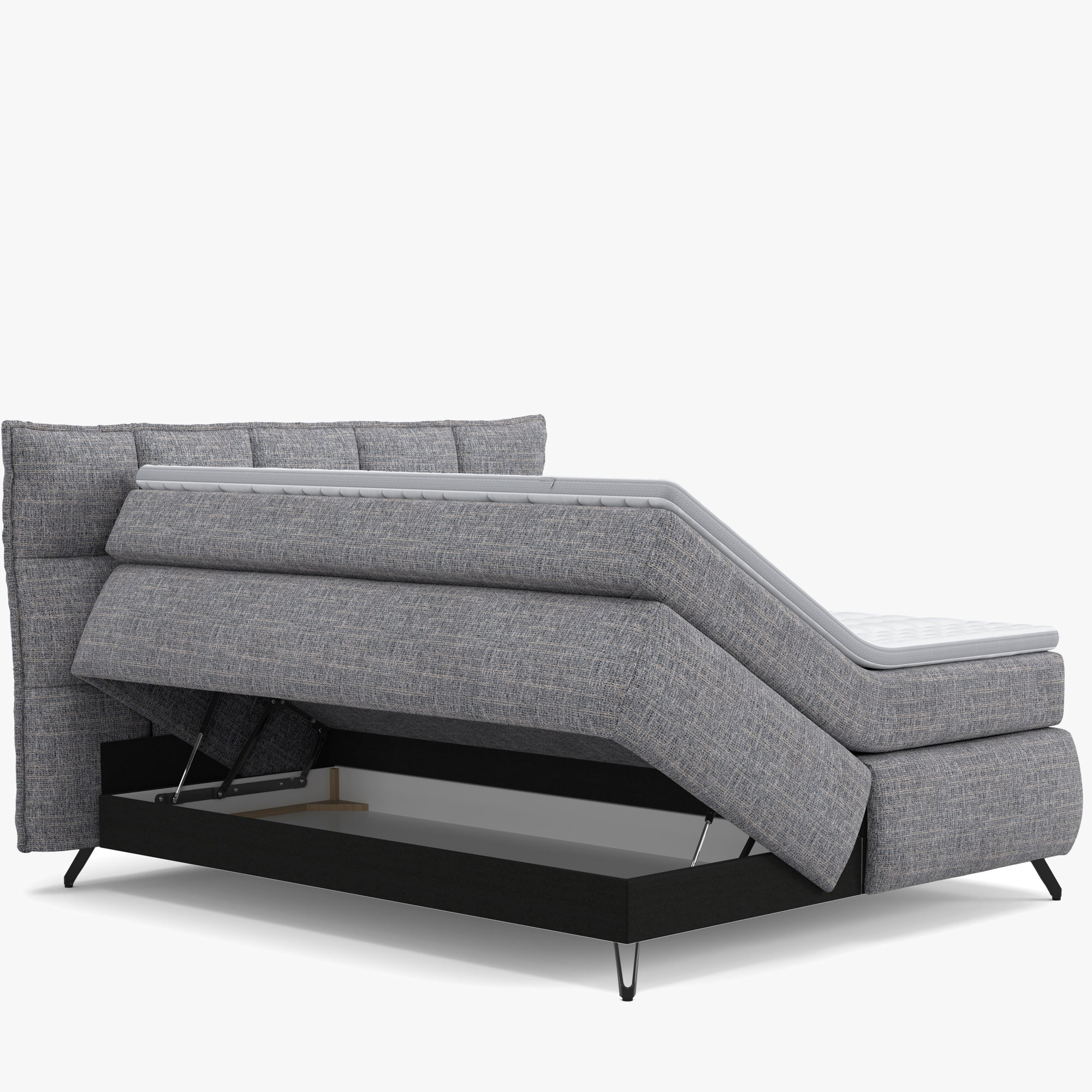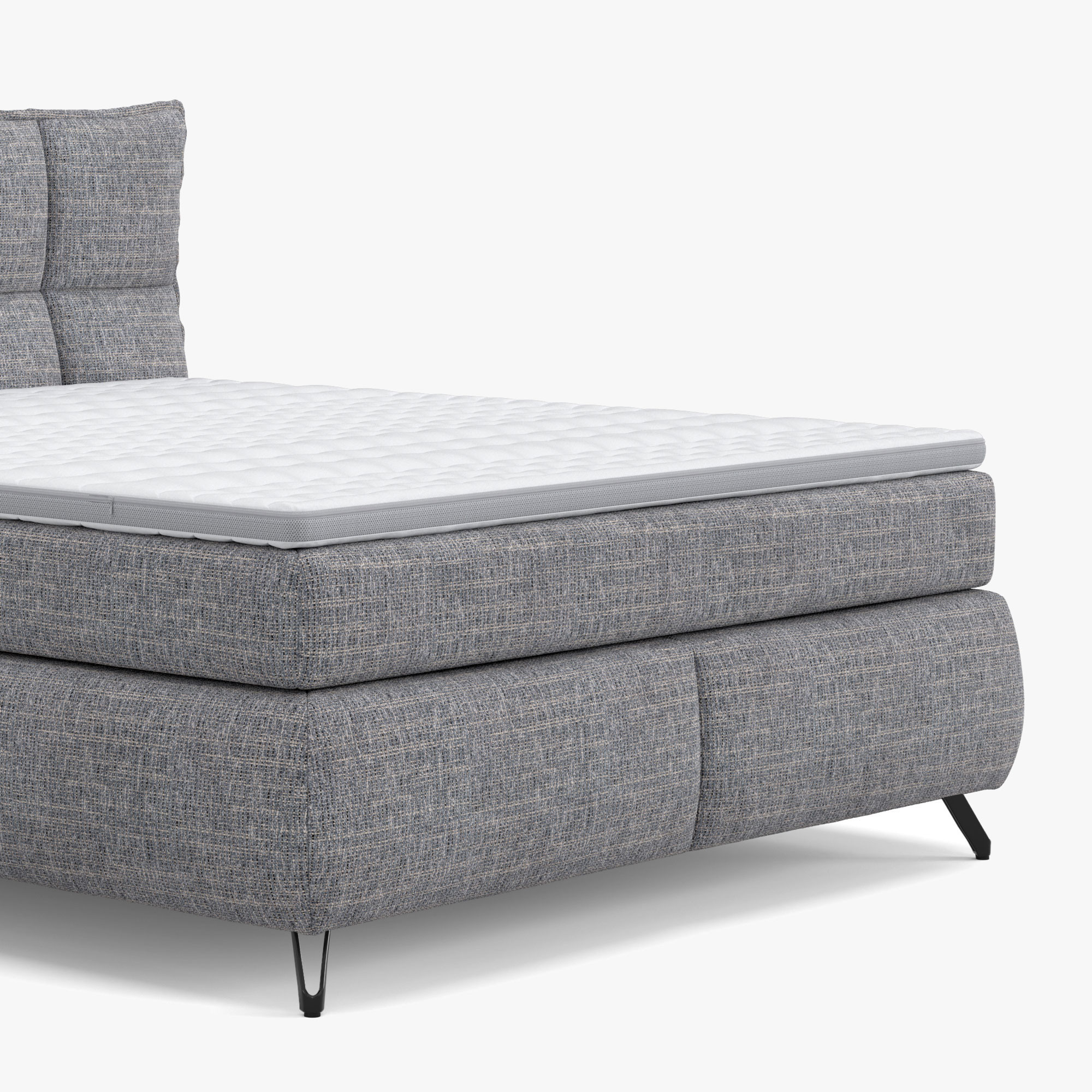 Boxspring ágy szürke, enyhe kékes árnyalattal 180 cm tárolóhellyel Treviso