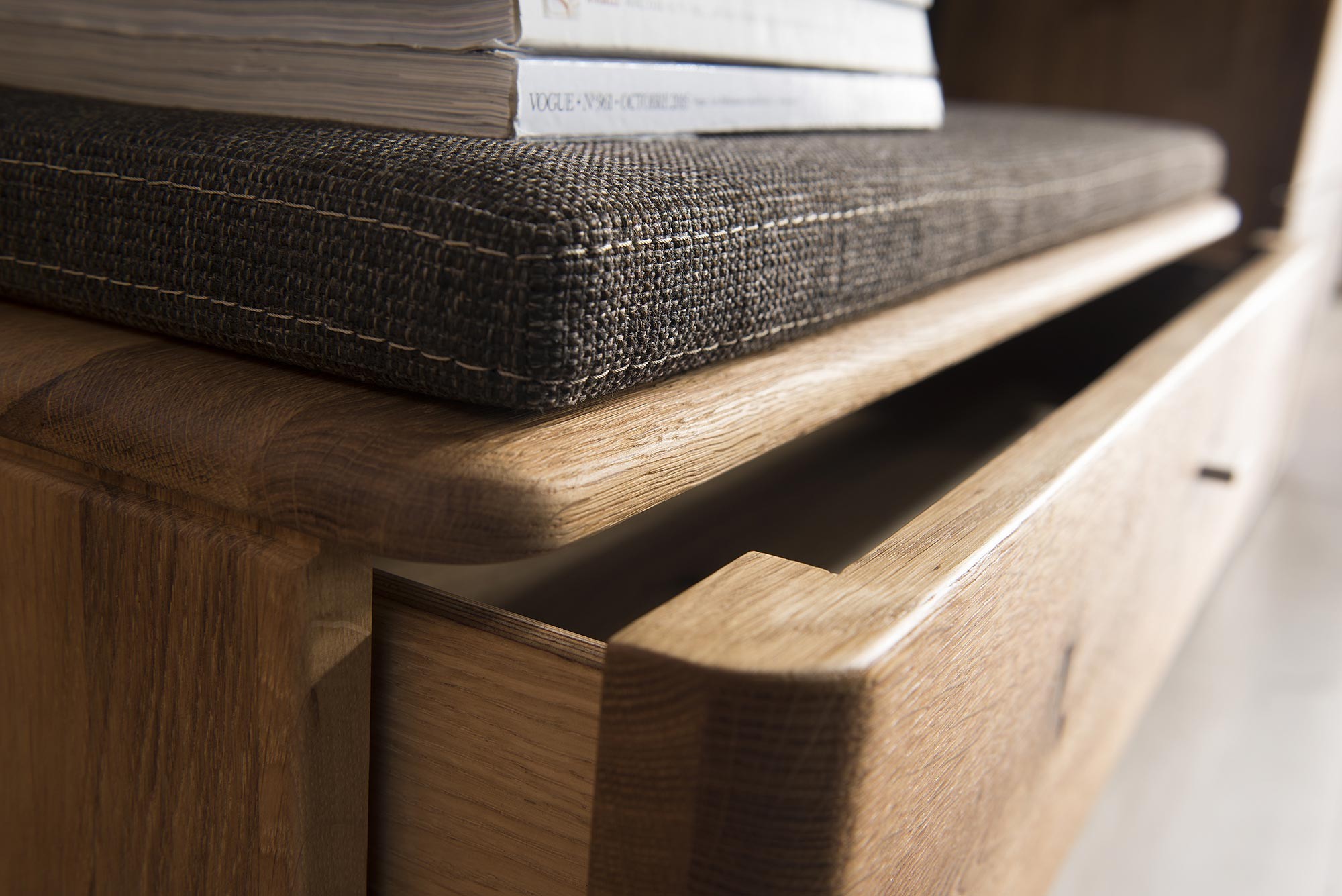 Előszobai és folyosói pad a Texas kollekcióból. A 61-es típus exkluzív tömör tölgyfából készül. Összeállíthatja saját összeállítását az igényeinek megfelelően az Texas kollekció összes darabjából. A pad bal oldalán, a felső részben található egy fiók. A vasalat soft-close záródású. Tartozékként kényelmes párna is jár hozzá. A bútor minőségi, német Livos márkájú olajjal van kezelve , amely környezetbarát.