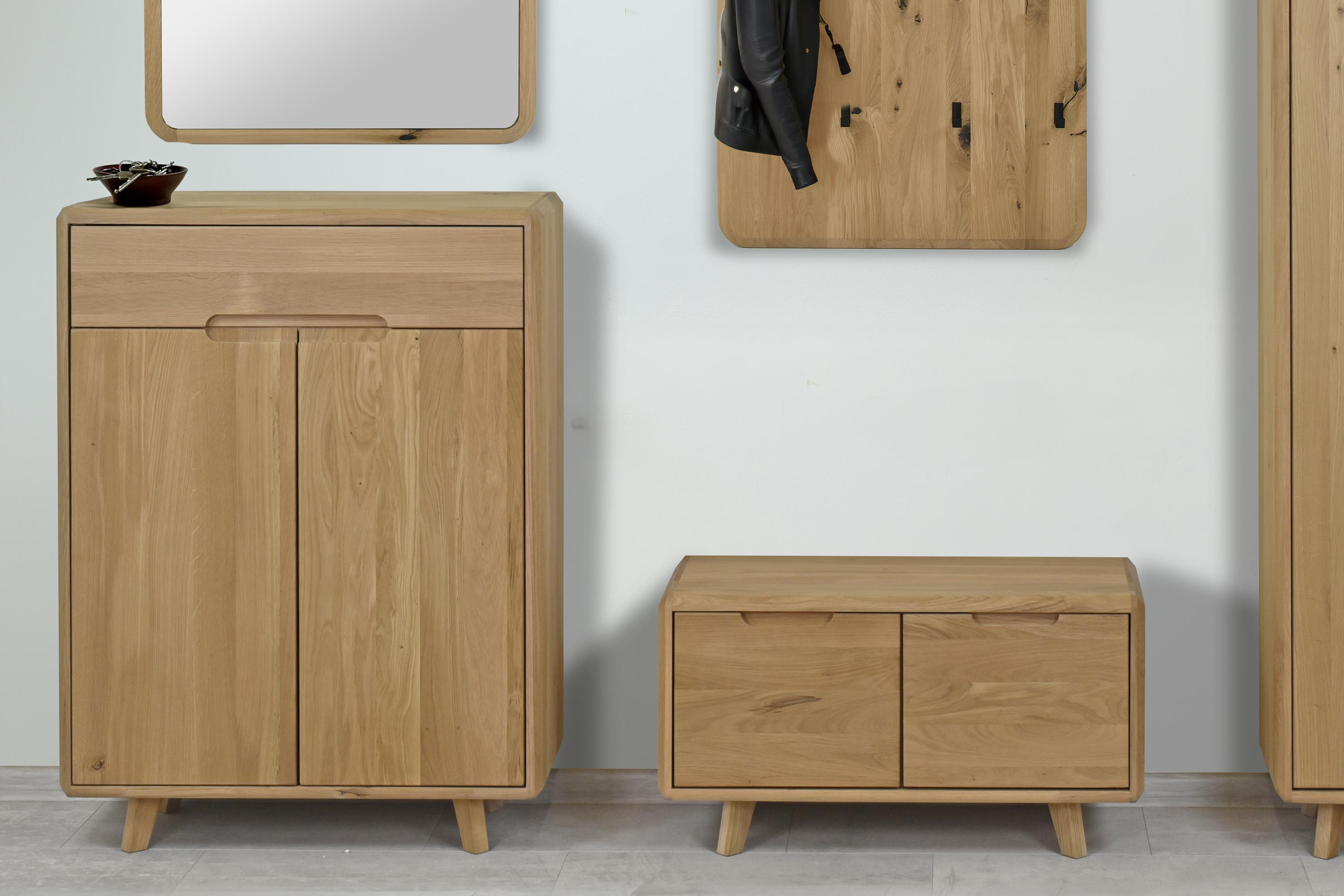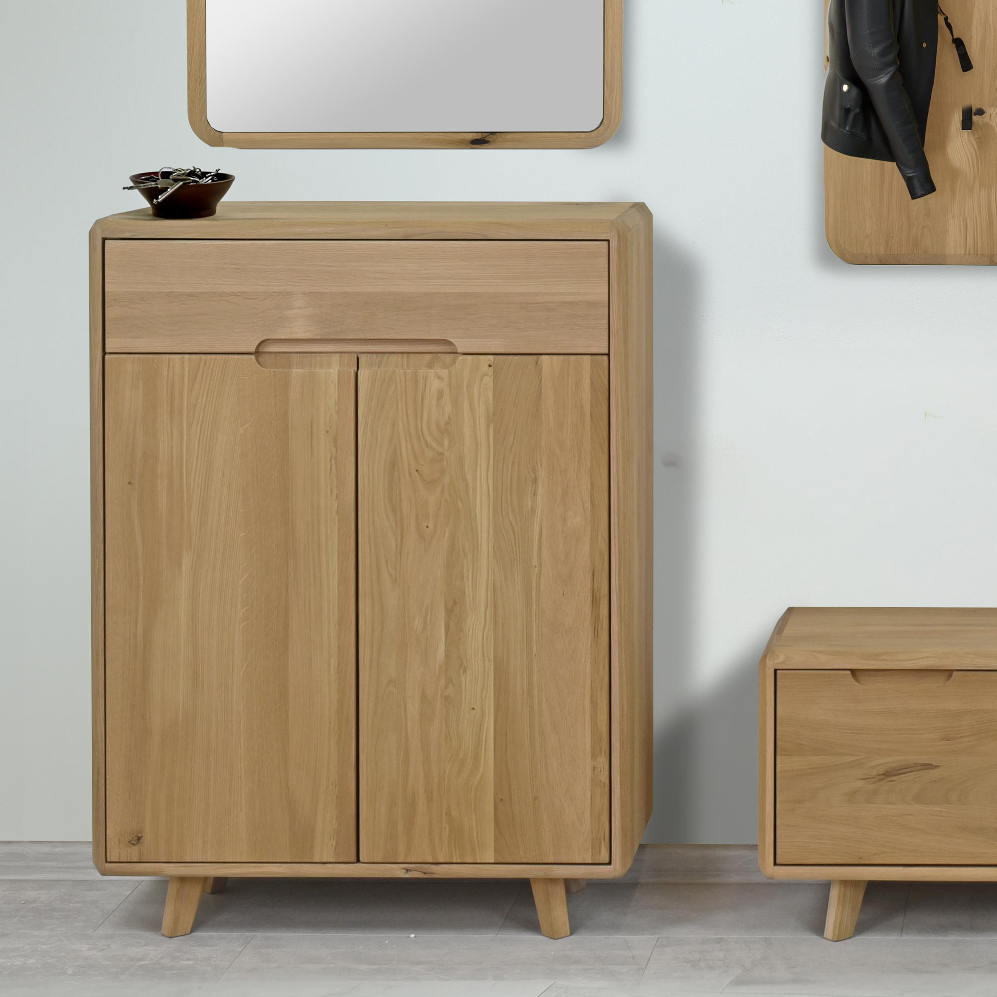 Masszív tölgy cipős komód, fehér tölgy, skandináv dizájn