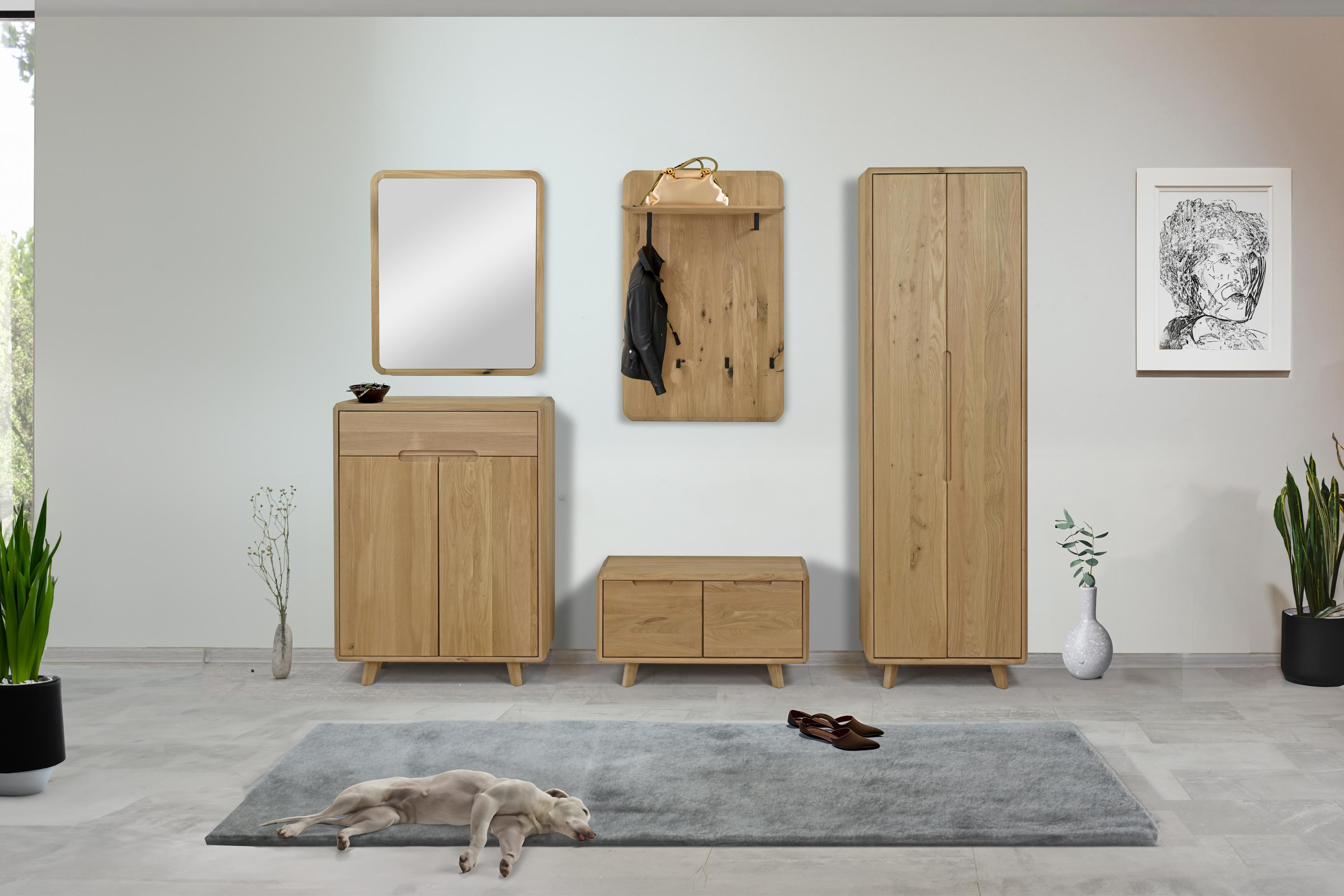 Tömör fehér tölgy cipőkomód, skandináv dizájn, olajviasz felület