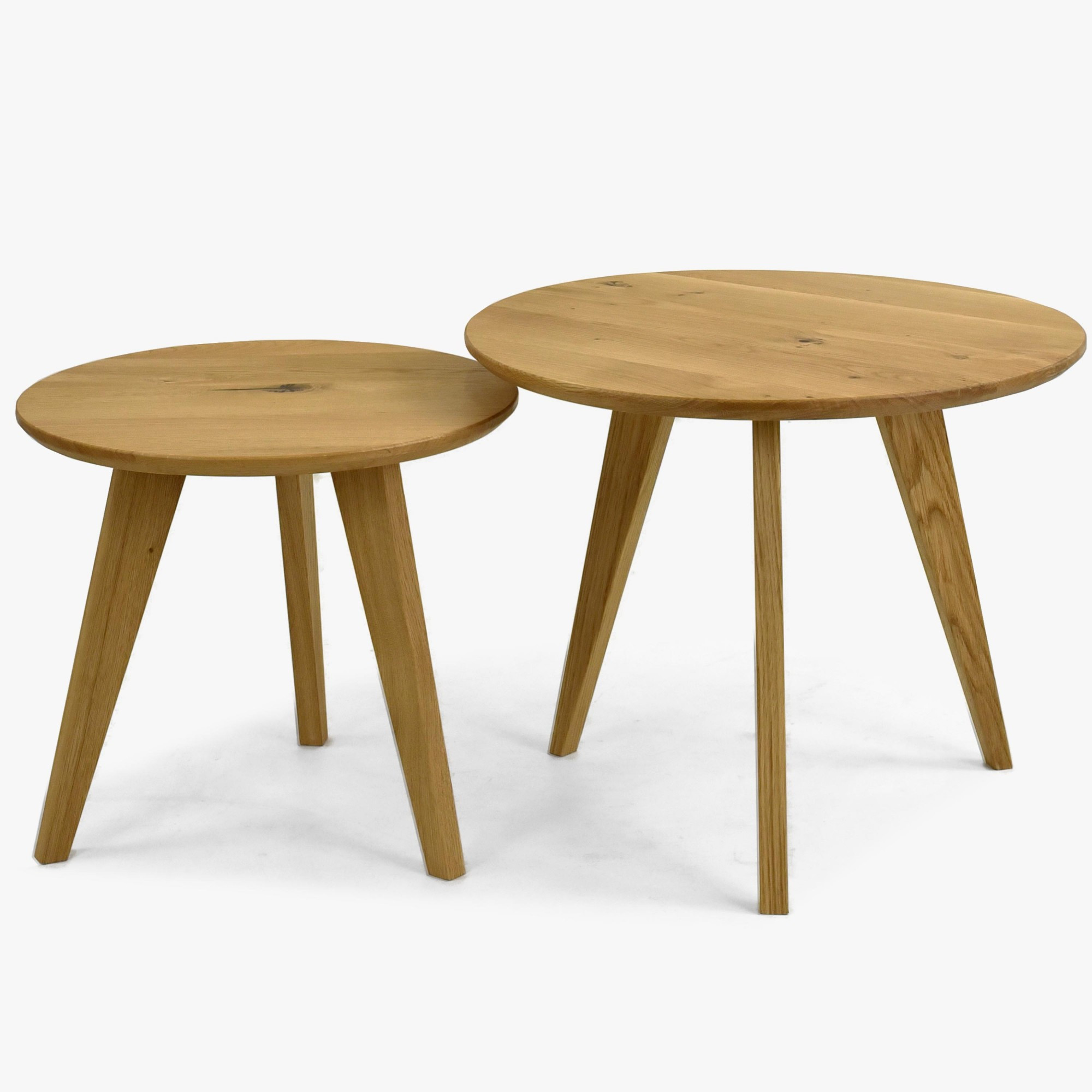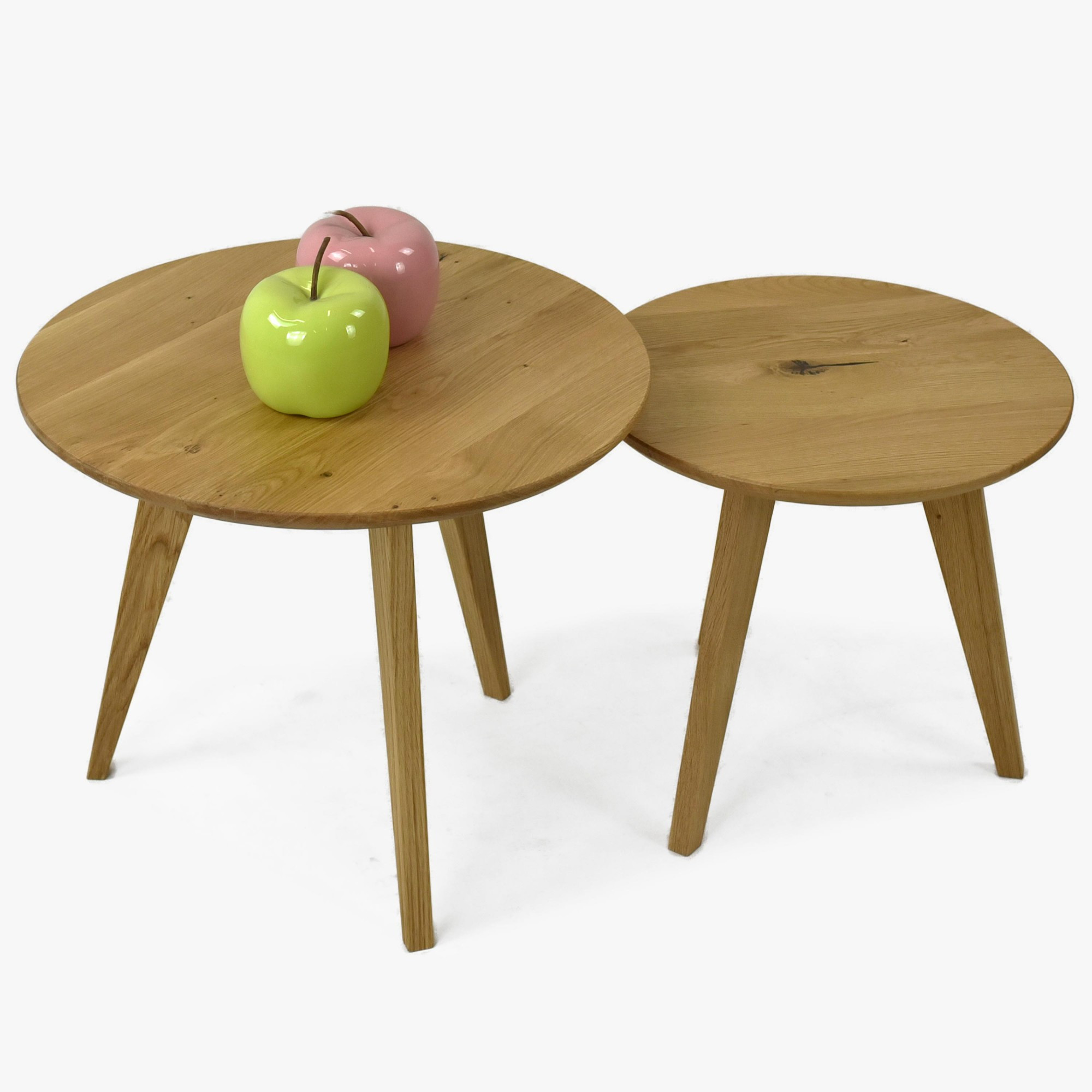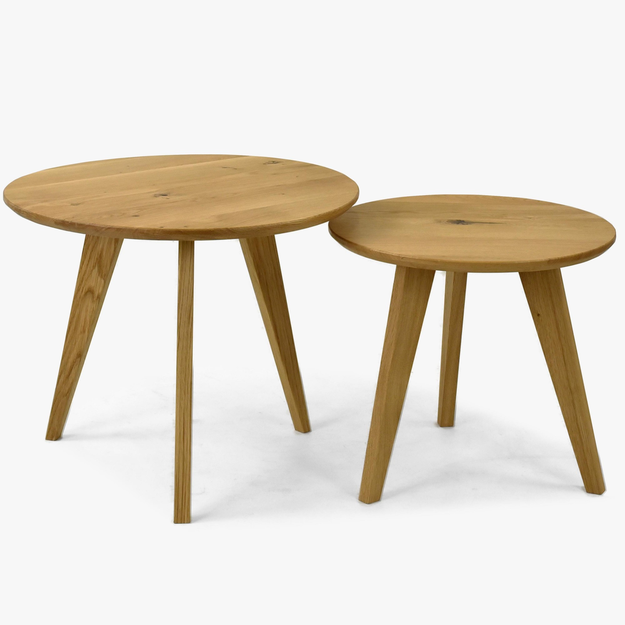 Kerek tömör tölgy dohányzóasztal szett, 2 db, skandináv dizájn