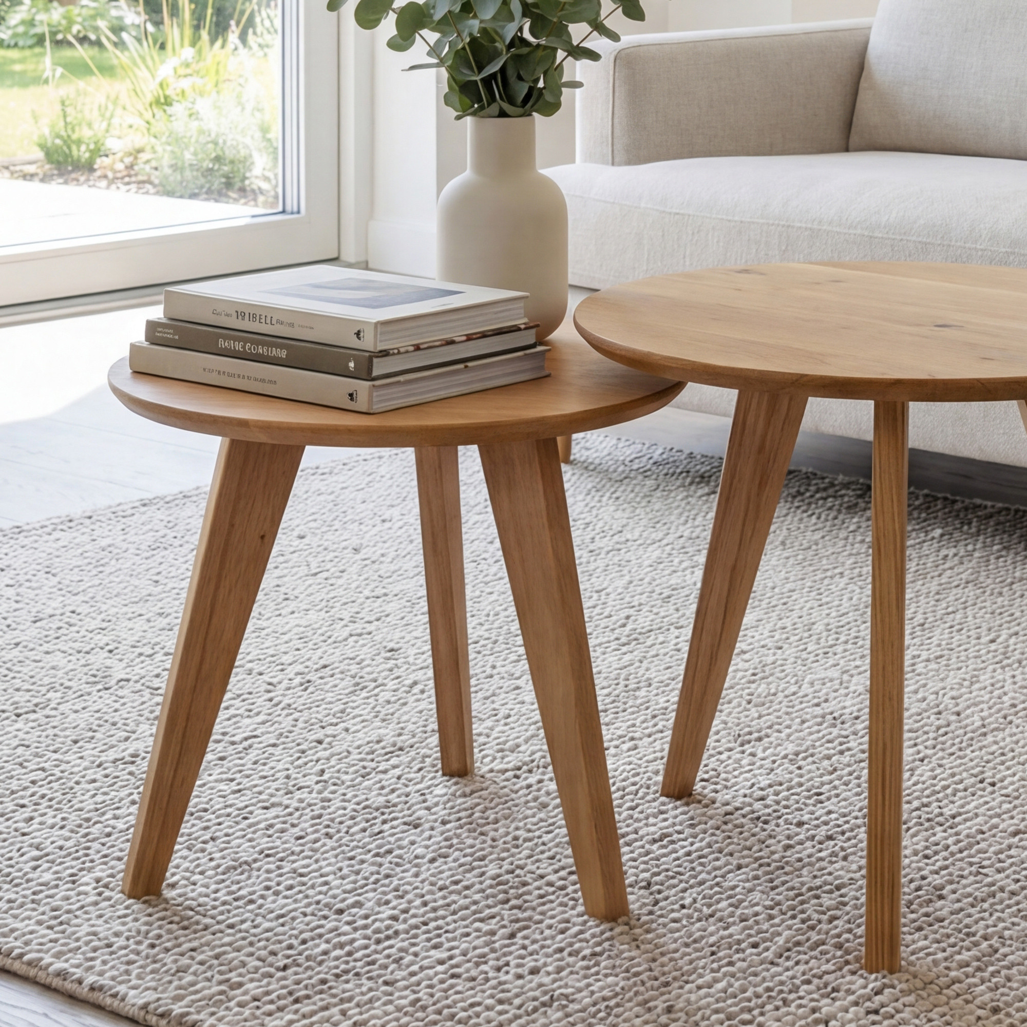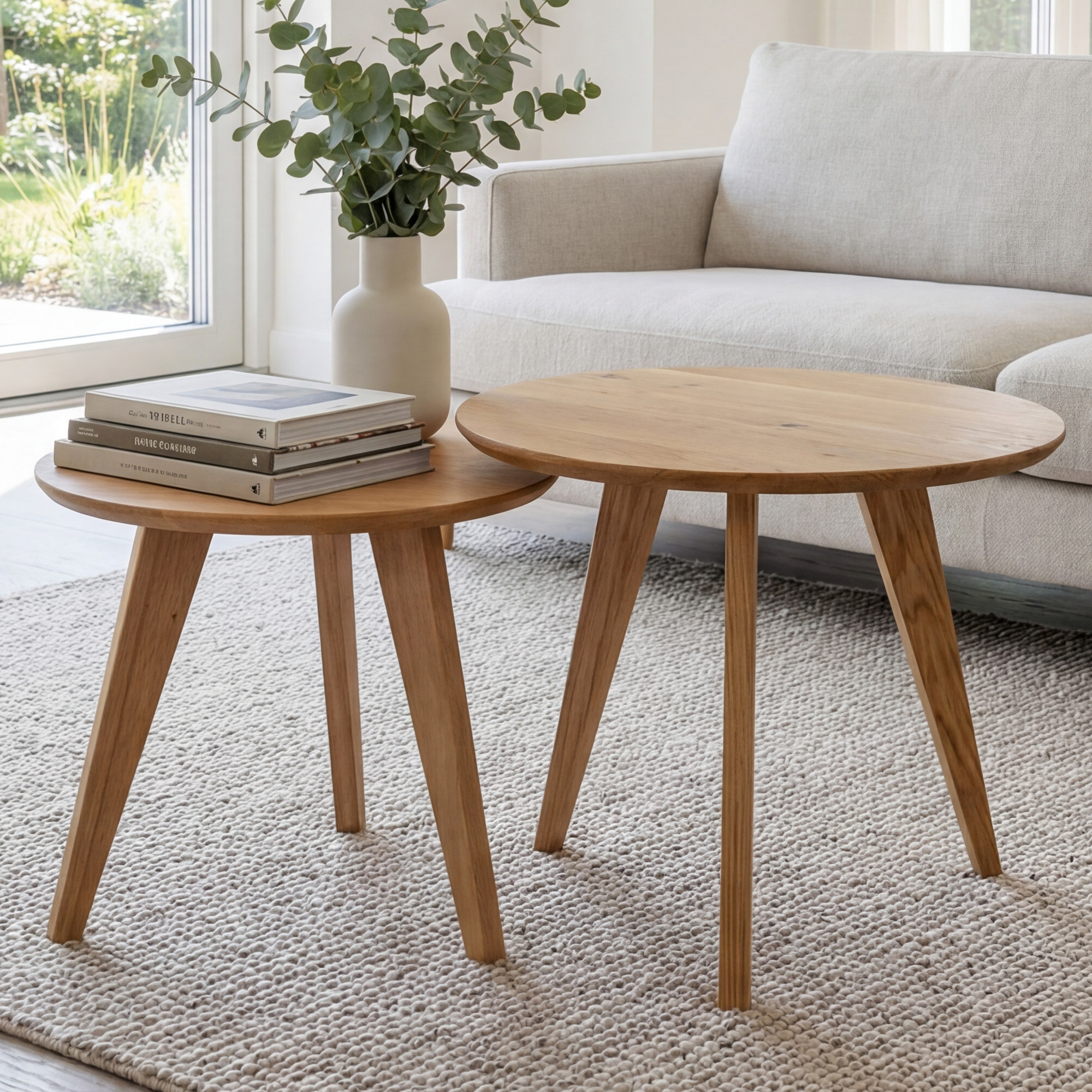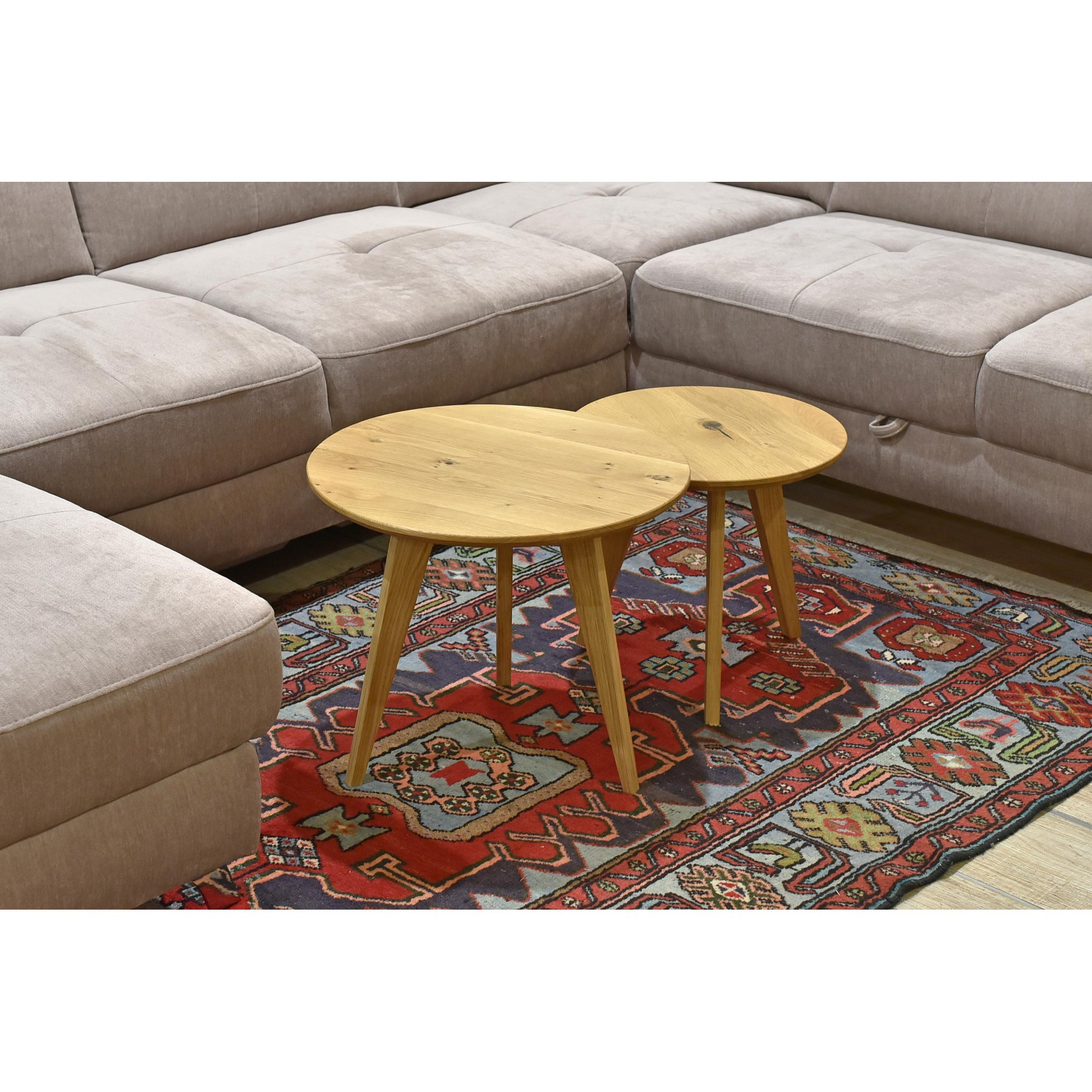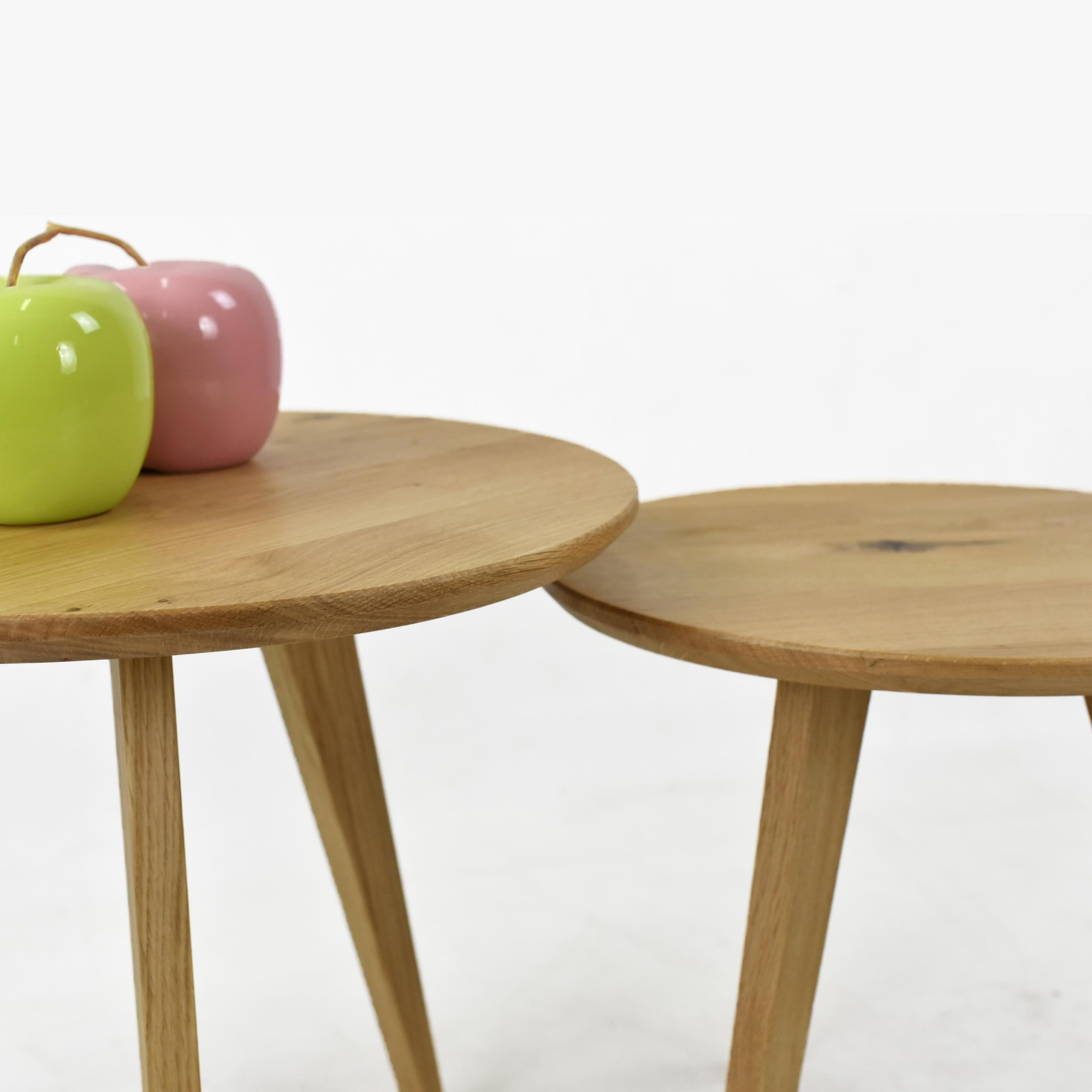 Kerek tömör tölgy dohányzóasztal szett, 2 db, skandináv dizájn