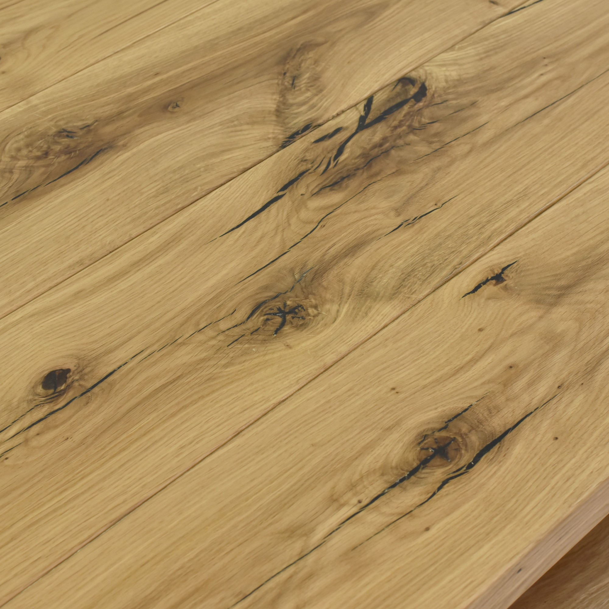 Autentikus dohányzóasztal a masszív elegancia és a funkcionalitás kombinációját képviseli. Készült valódi tölgyfából, az asztal megeleveníti minden teret természetes szépségével és egyedi mintázatával, amelyben megjelennek a jellegzetes csomók és a fa erezete. A felső lap impozáns, 4 cm vastag és a 2 cm vastag polc kiemeli ennek a bútordarabnak a minőségét és tartósságát. A gyártáshoz használt fa FSC tanúsítvánnyal rendelkezik, ami kiemeli annak fenntartható eredetét.