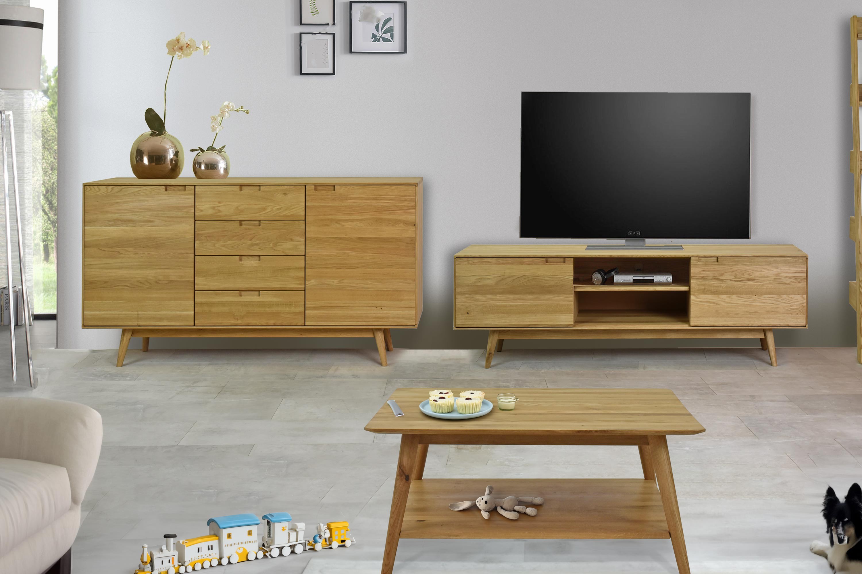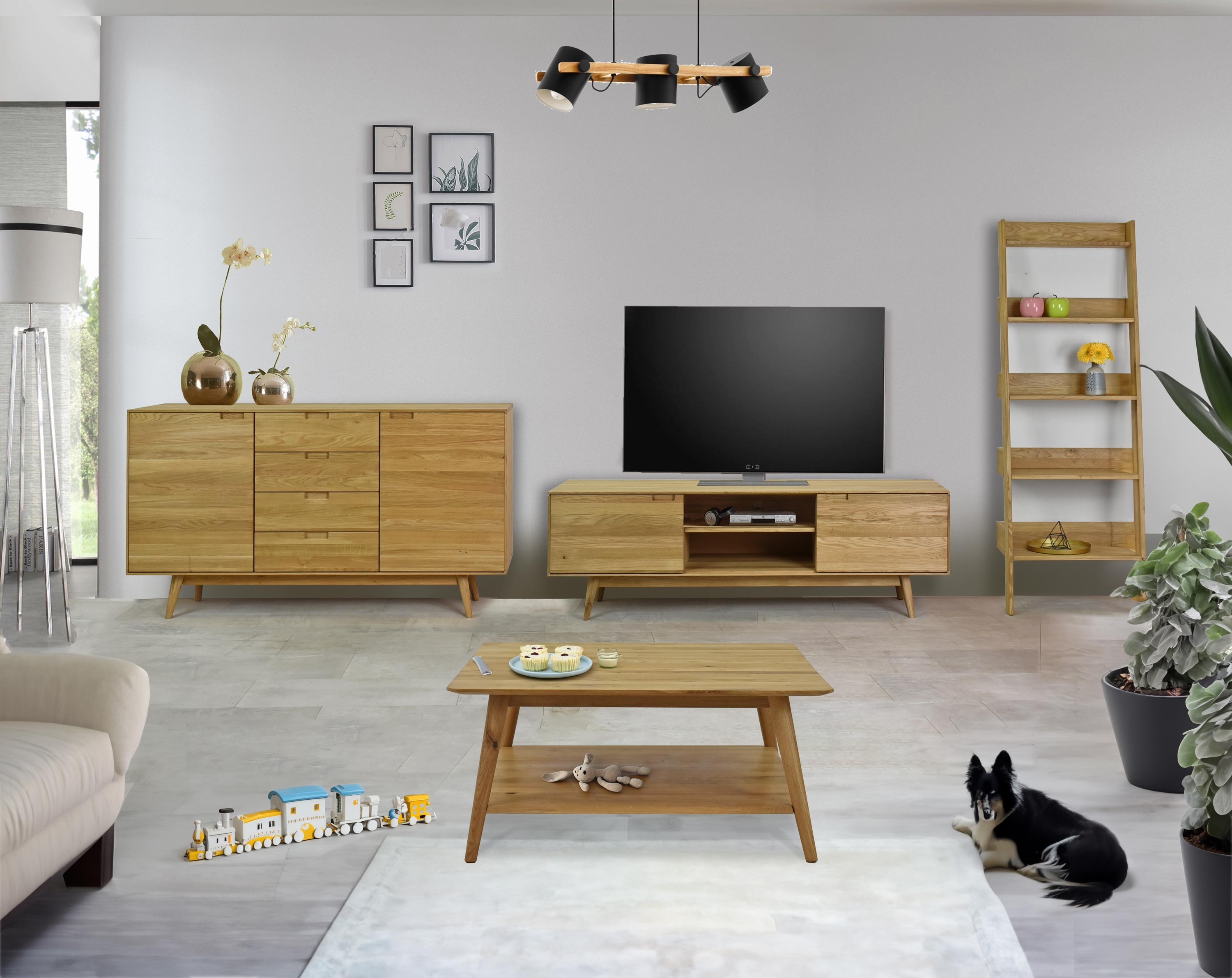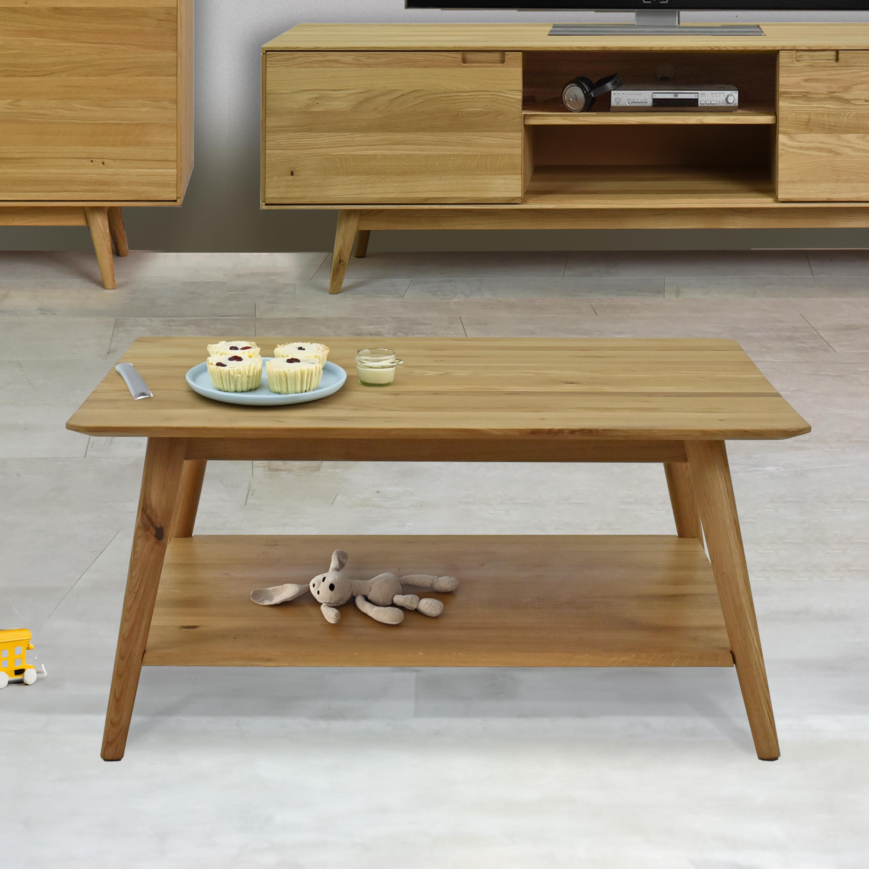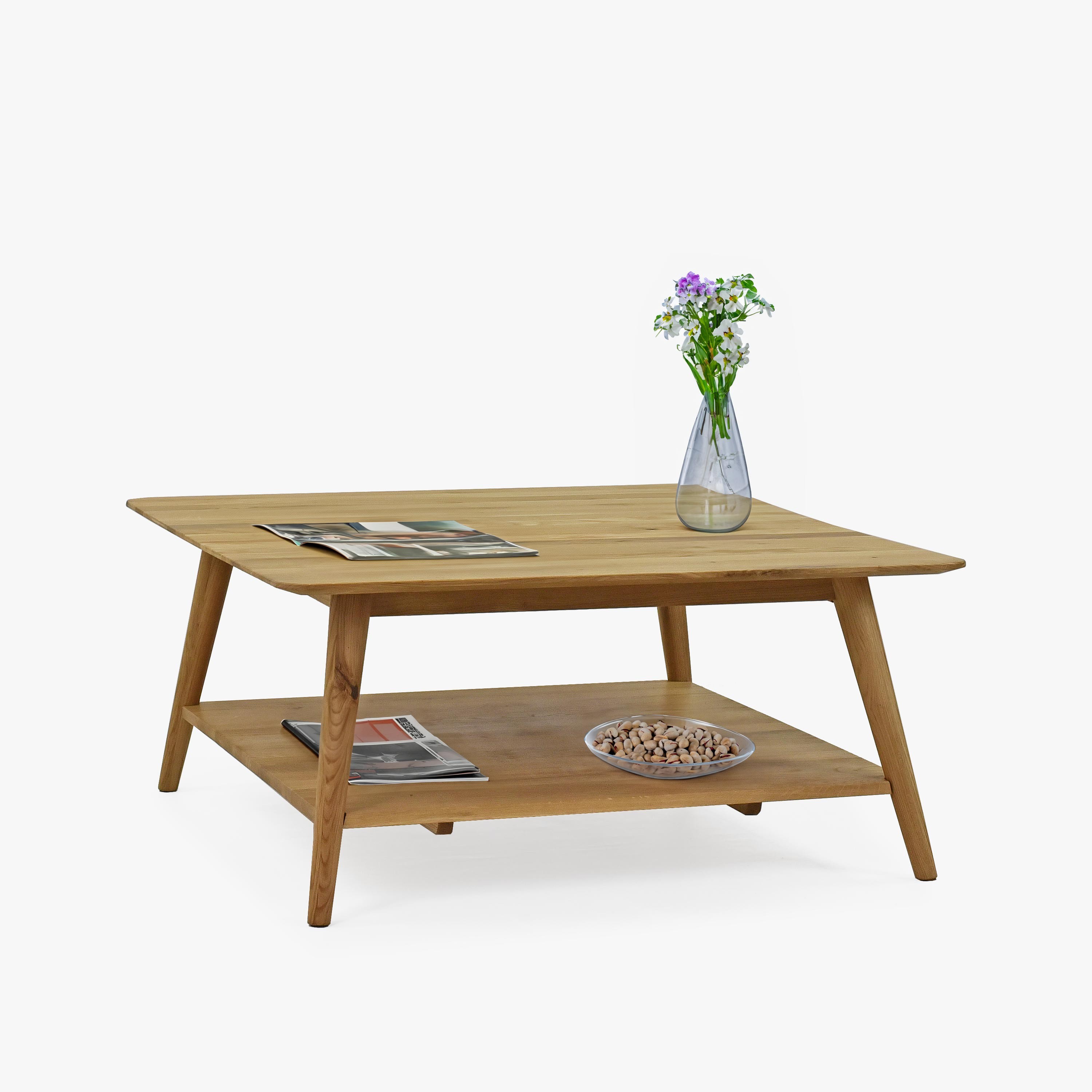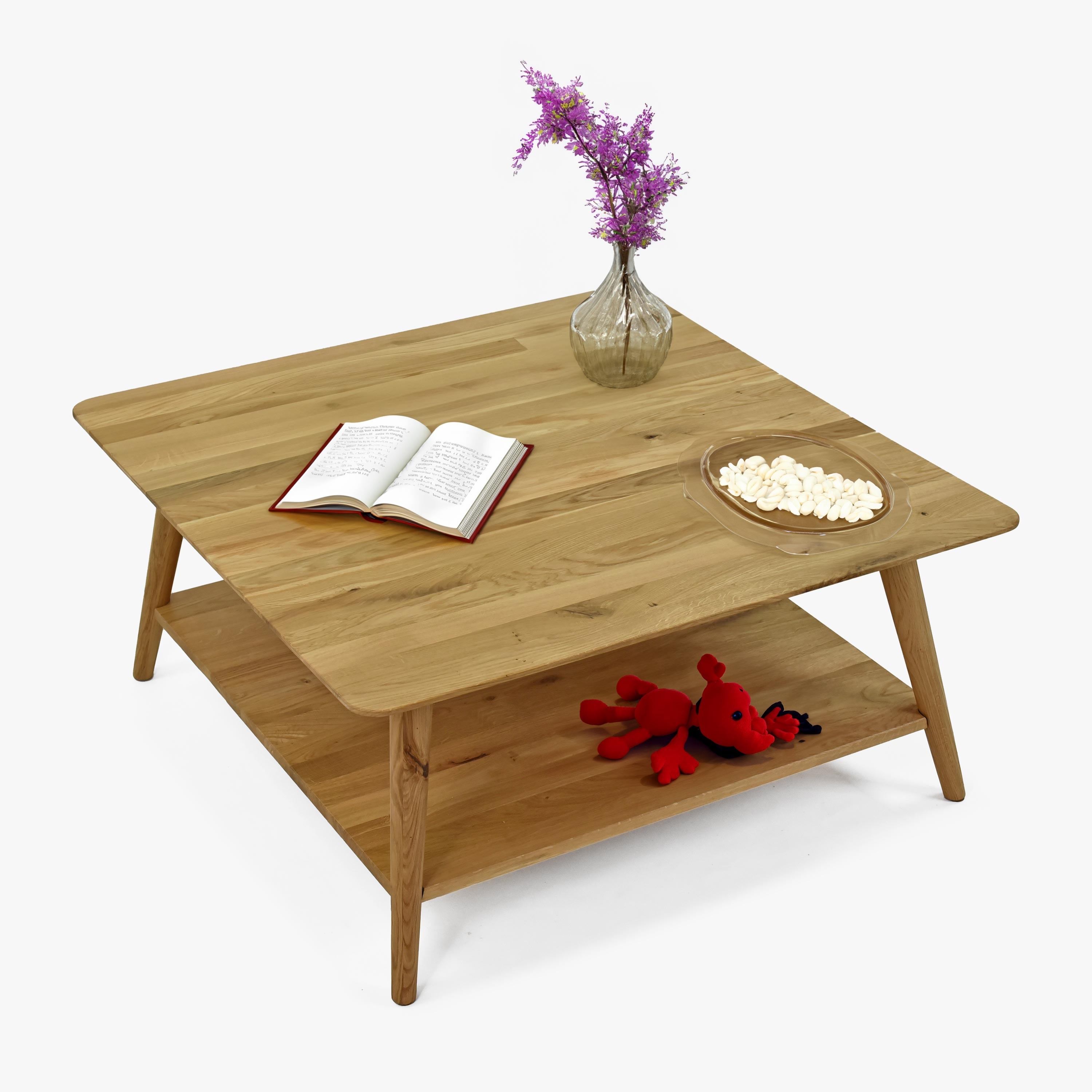 Tölgyfa dohányzóasztal polccal skandináv stílusban -masszív tölgy Scandi kollekció