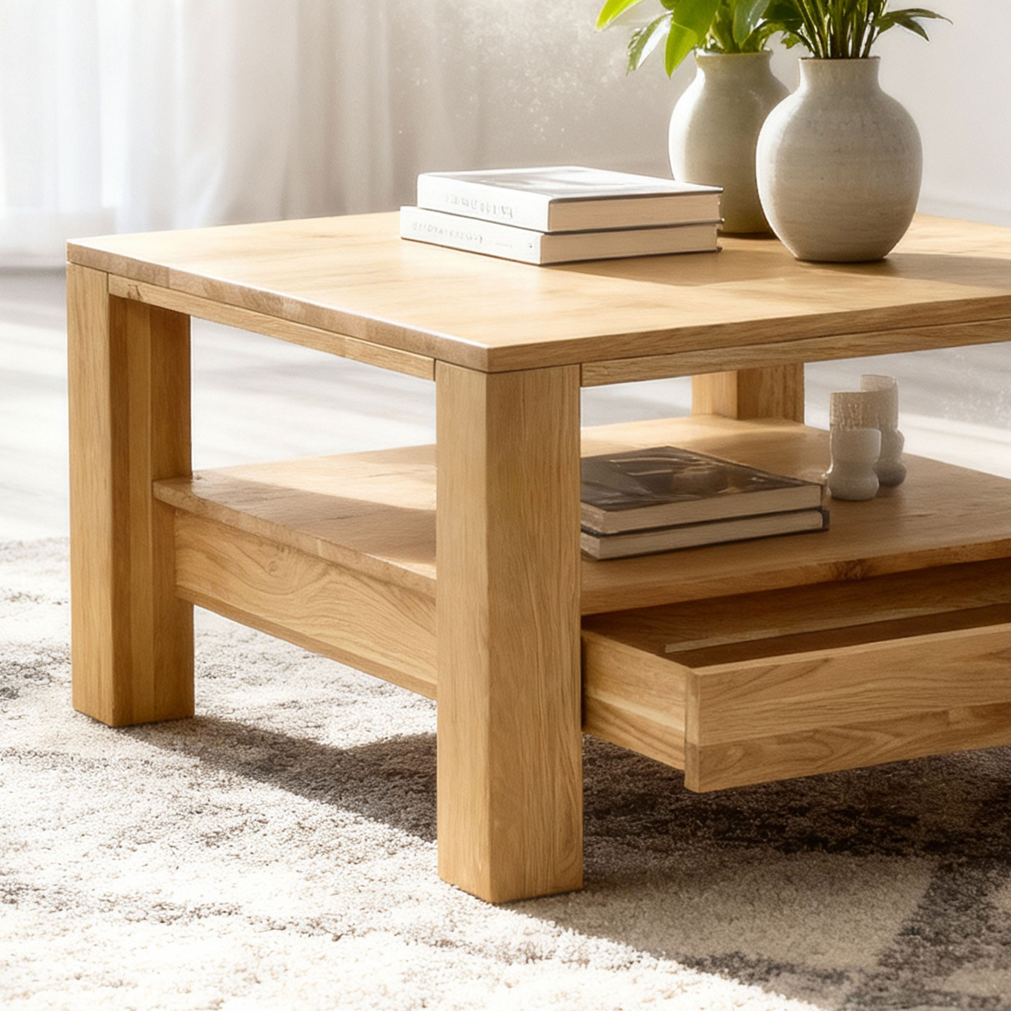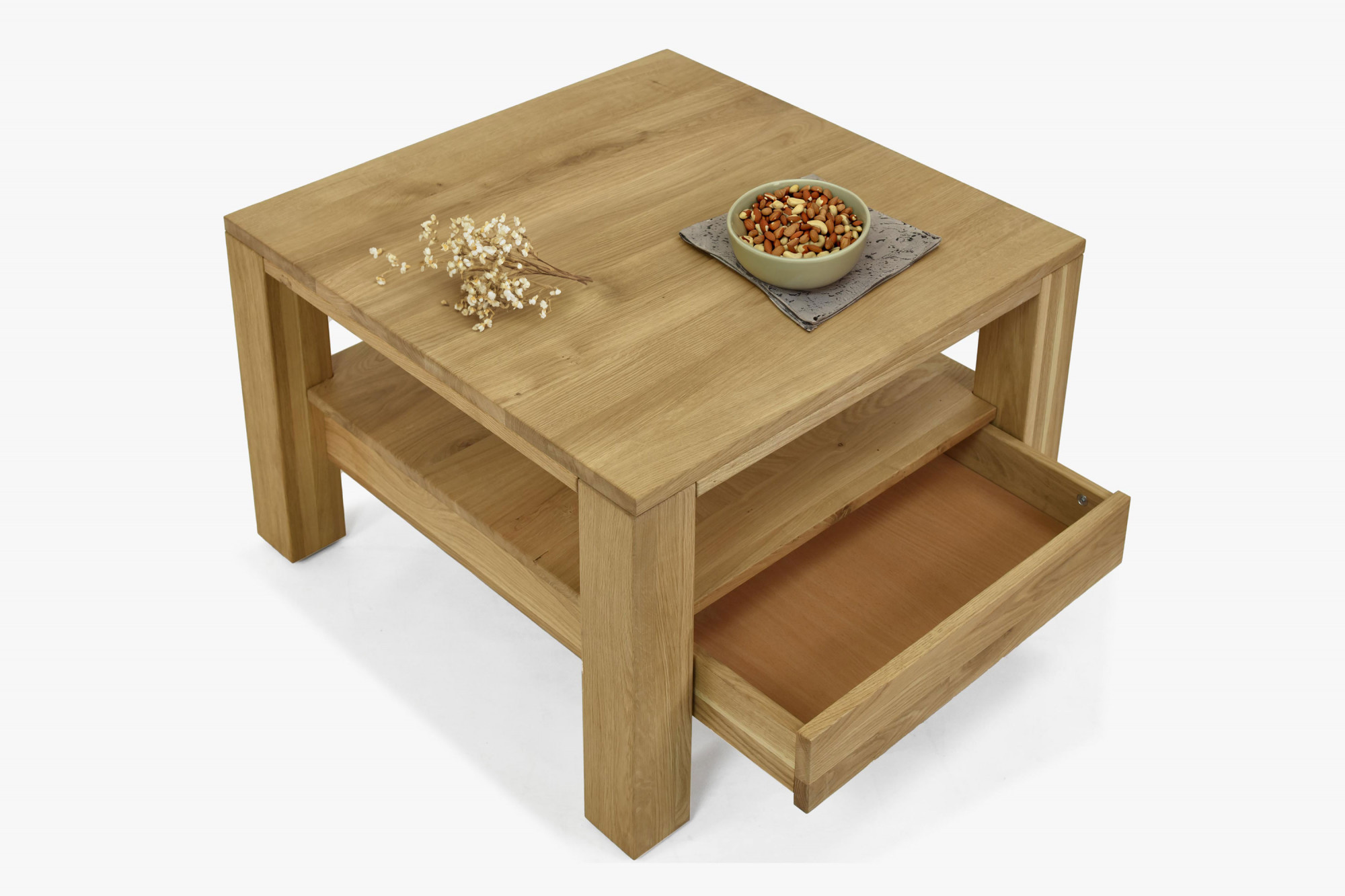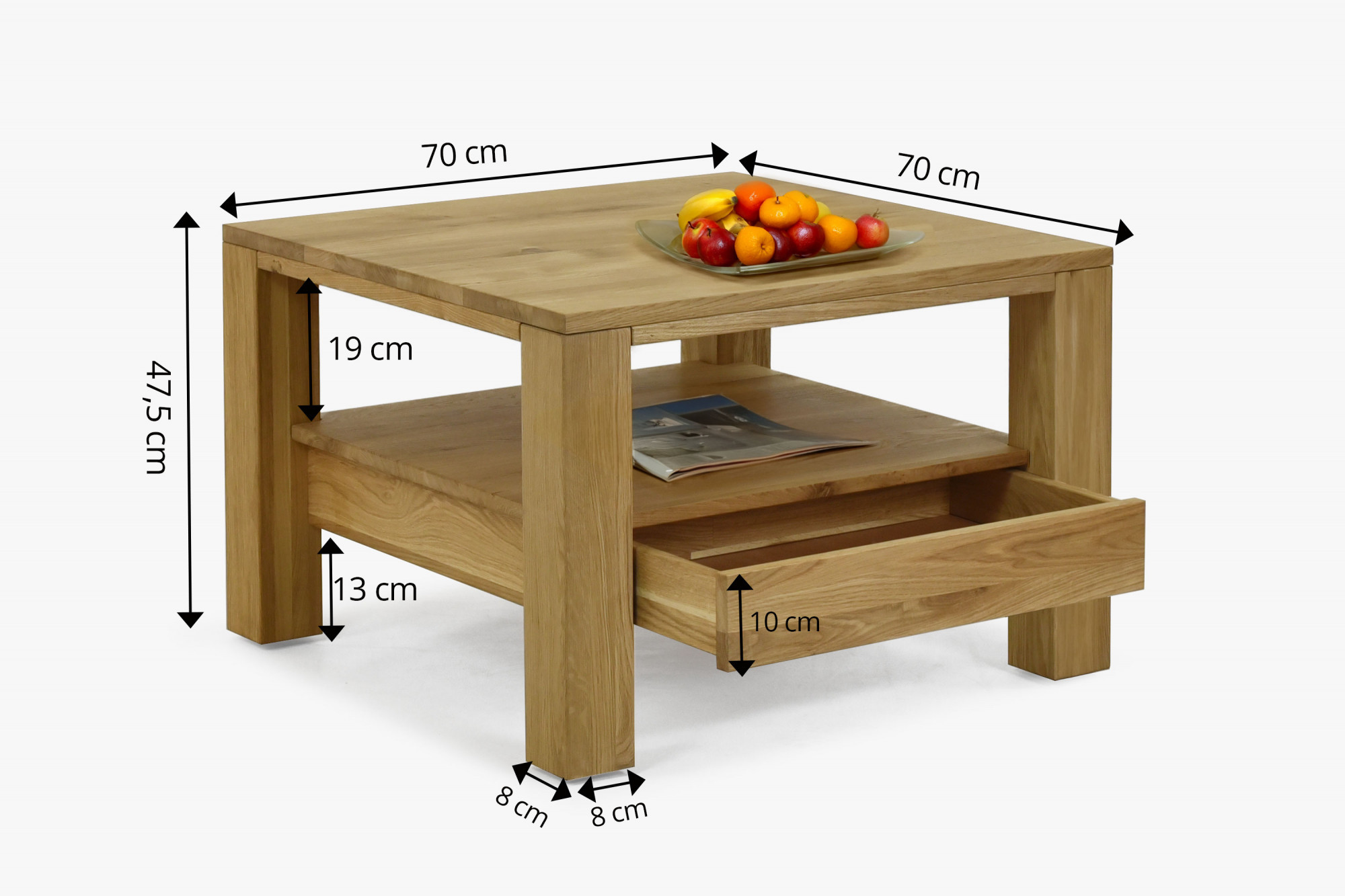Tölgyfa dohányzóasztal polccal Panama 70 x 70 cm