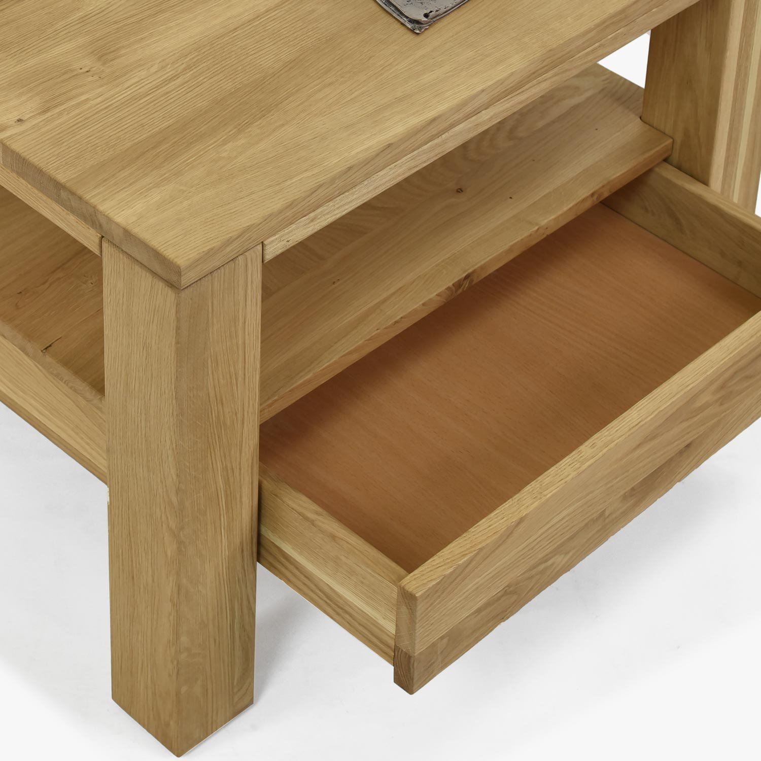 Tölgyfa dohányzóasztal polccal, natúr színű, 70x70 cm