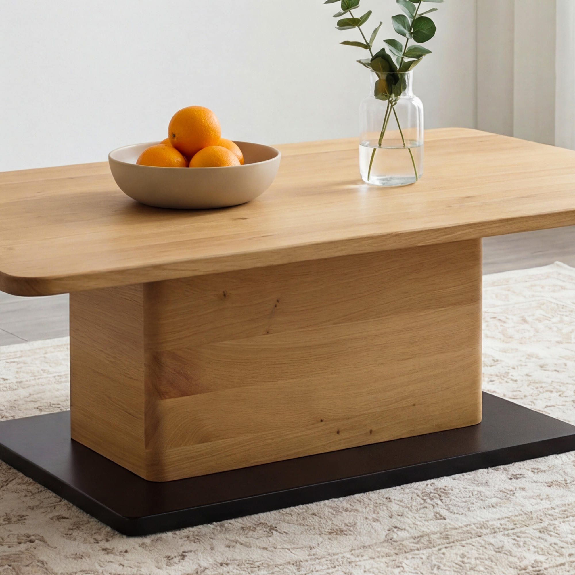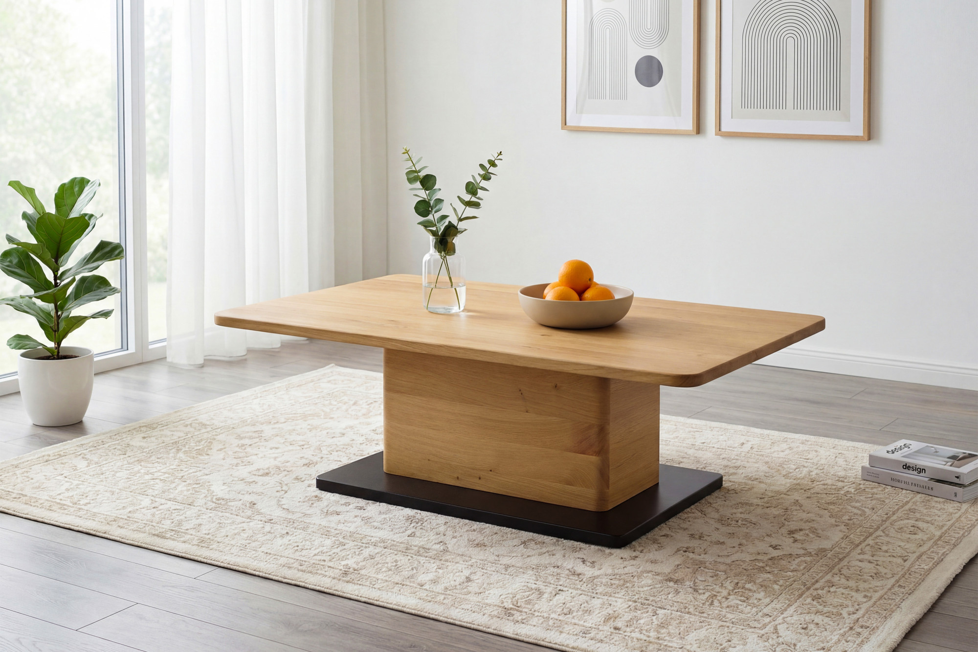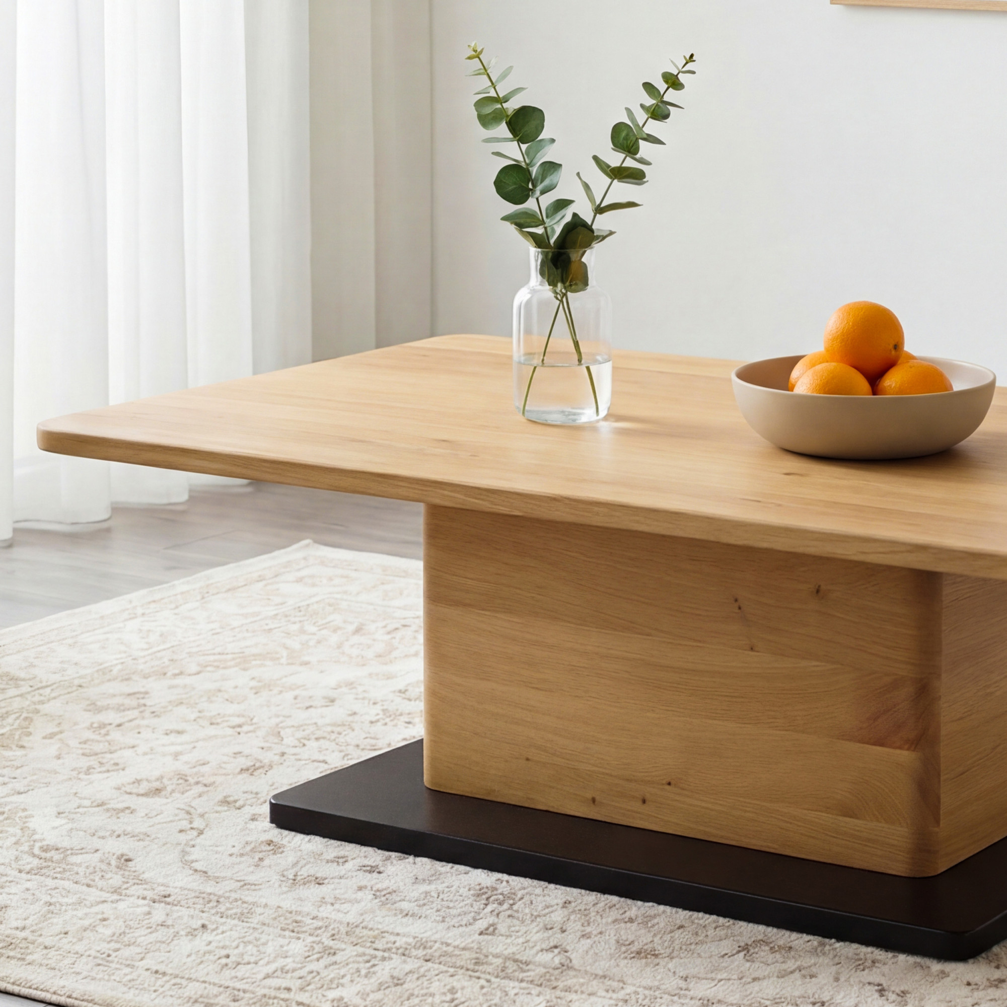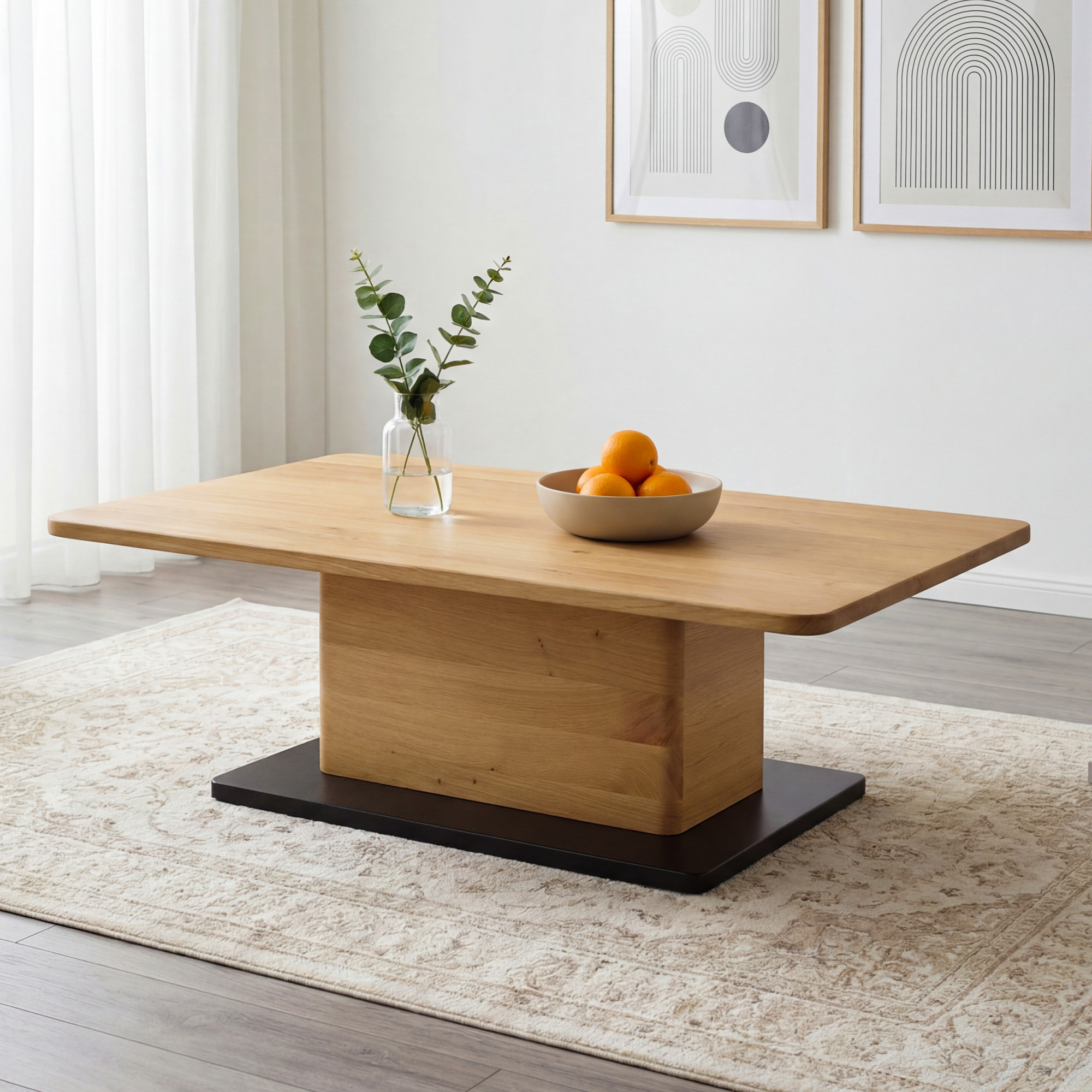 Az asztal egy központi lábbal rendelkezik, ami nemcsak modern és légies megjelenést ad neki, hanem megfelelő stabilitást is biztosít. Ennek a kialakításnak köszönhetően az asztal könnyednek hat anélkül, hogy veszítene szilárdságából és funkcionalitásából. A felső lap és a láb lekerekített élei finom és elegáns megjelenést adnak az asztalnak, amely mindennapi használat során is biztonságos. A természetes tölgy és a tiszta vonalak kombinációja időtálló bútordarabbá teszi ezt a dohányzóasztalt, amely modern és hagyományos enteriőrökben egyaránt jól mutat. A FSC tanúsítvány garantálja, hogy a gyártásnál felhasznált fa felelősen kezelt erdőkből származik, ami az elkötelezettségünk jele a fenntarthatóság iránt.