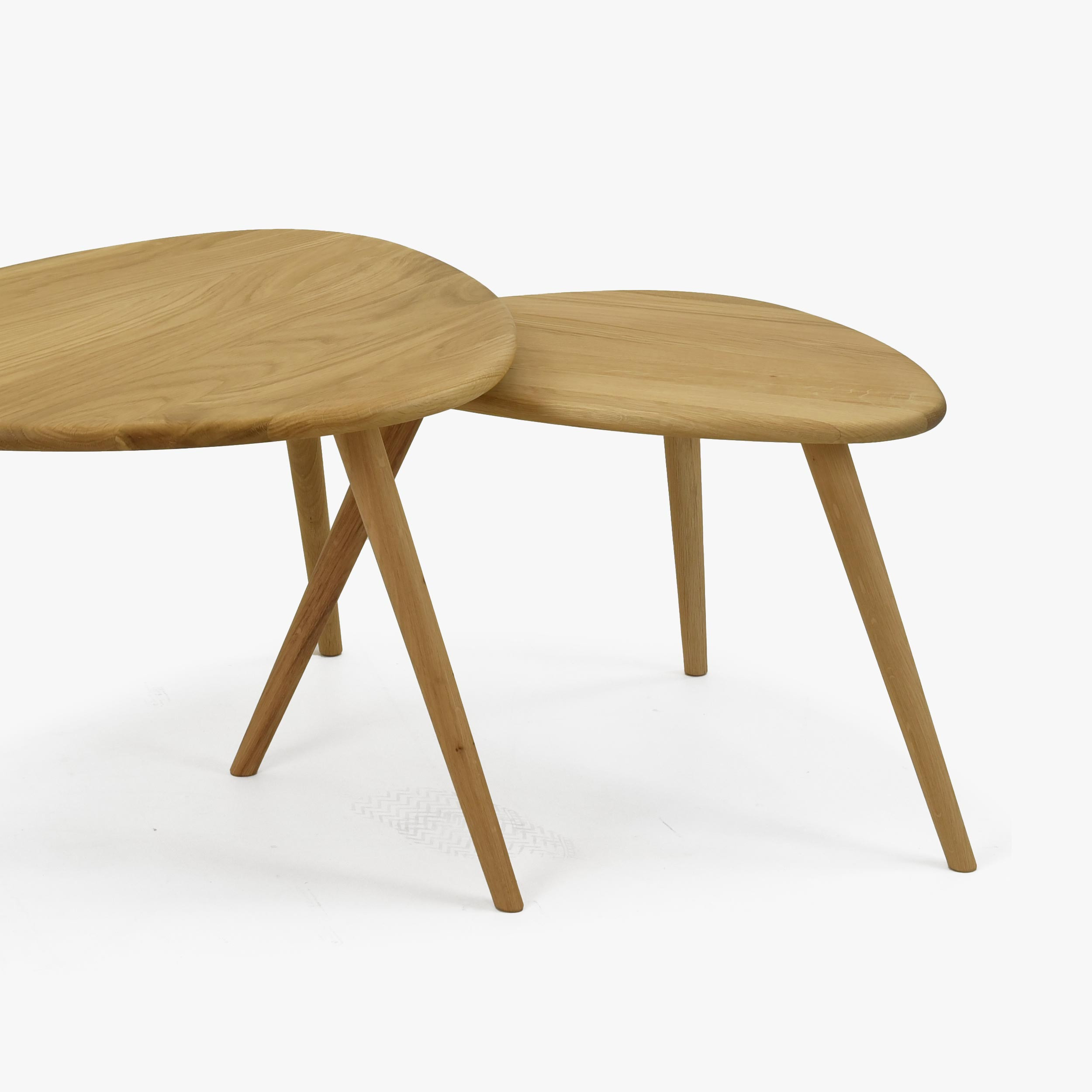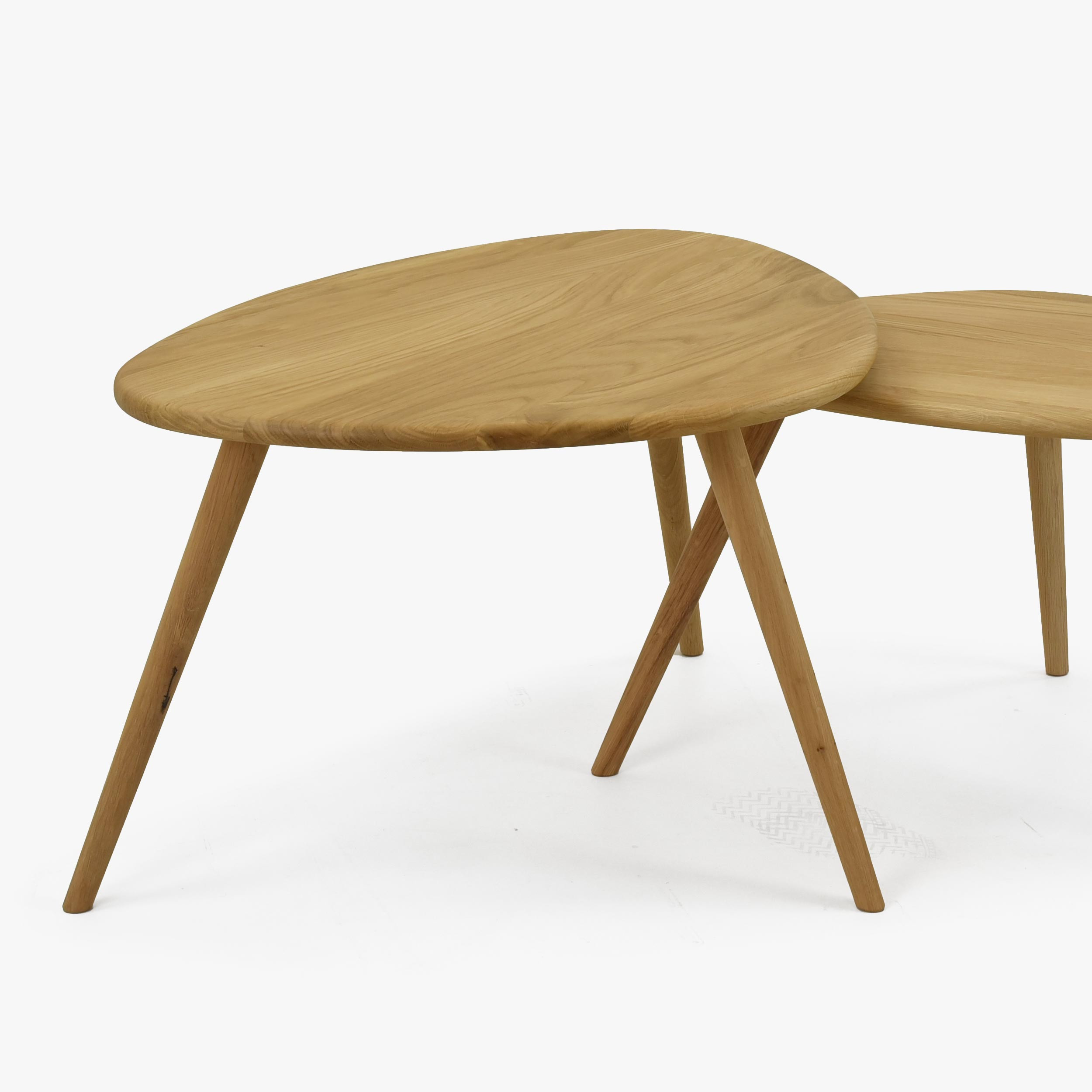 Vigo típusú dohányzóasztal szett kiváló minőségű tömör tölgyfából készült, ami szilárdságot, tartósságot és természetes szépséget kölcsönöz neki, és tökéletesen illeszkedik bármely enteriőrbe. A szett két asztalt tartalmaz különböző méretekben és magasságokban – a kisebb asztal 36 cm magas és 38–52 cm méretű, a nagyobb asztal 40 cm magas és 50–66 cm méretű. Szabálytalan formájuk miatt stílusosak és egyediek, és a natúr tölgy színük szépen illik bármilyen bútorhoz a nappaliban, hálószobában vagy dolgozószobában.