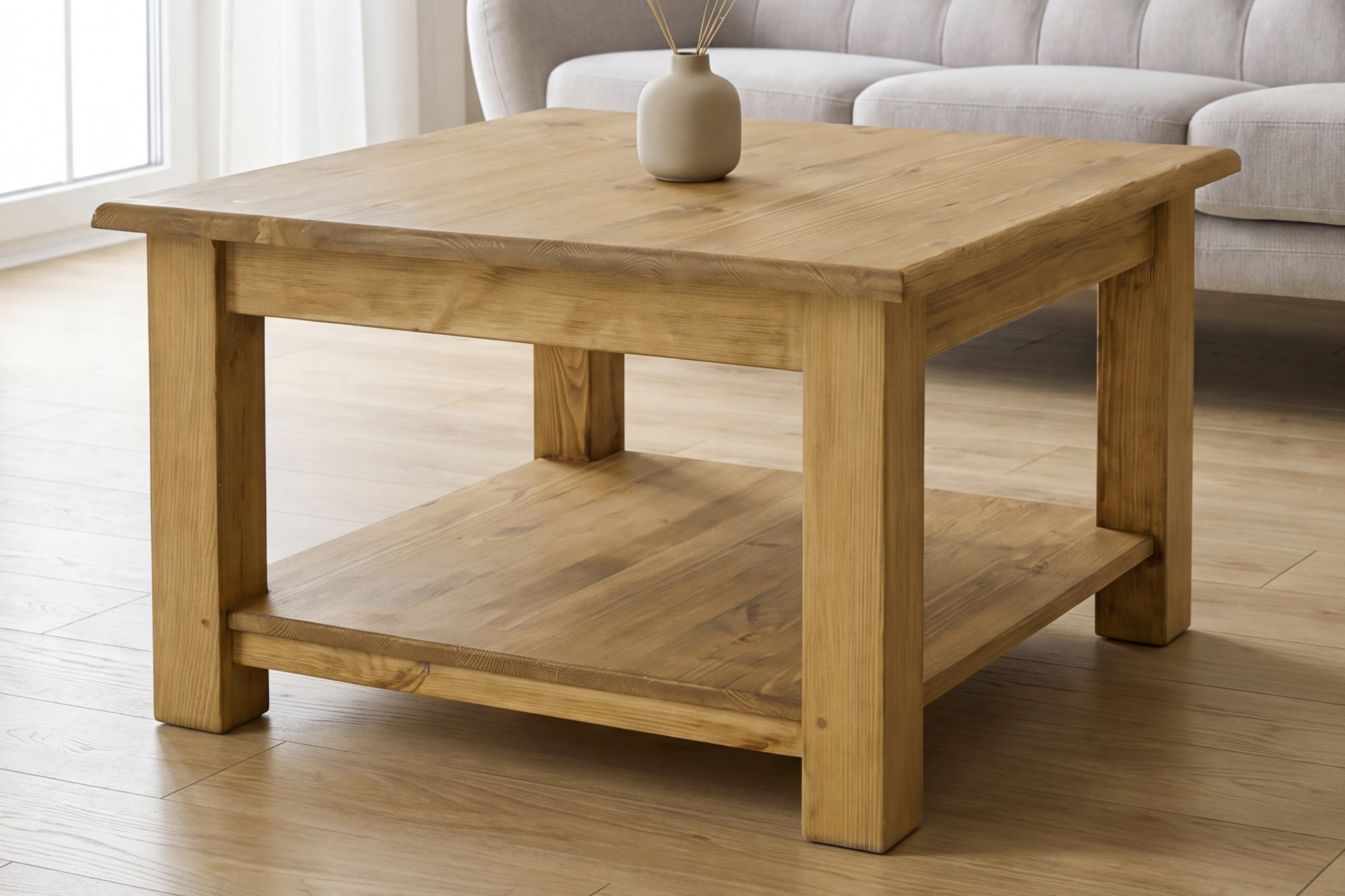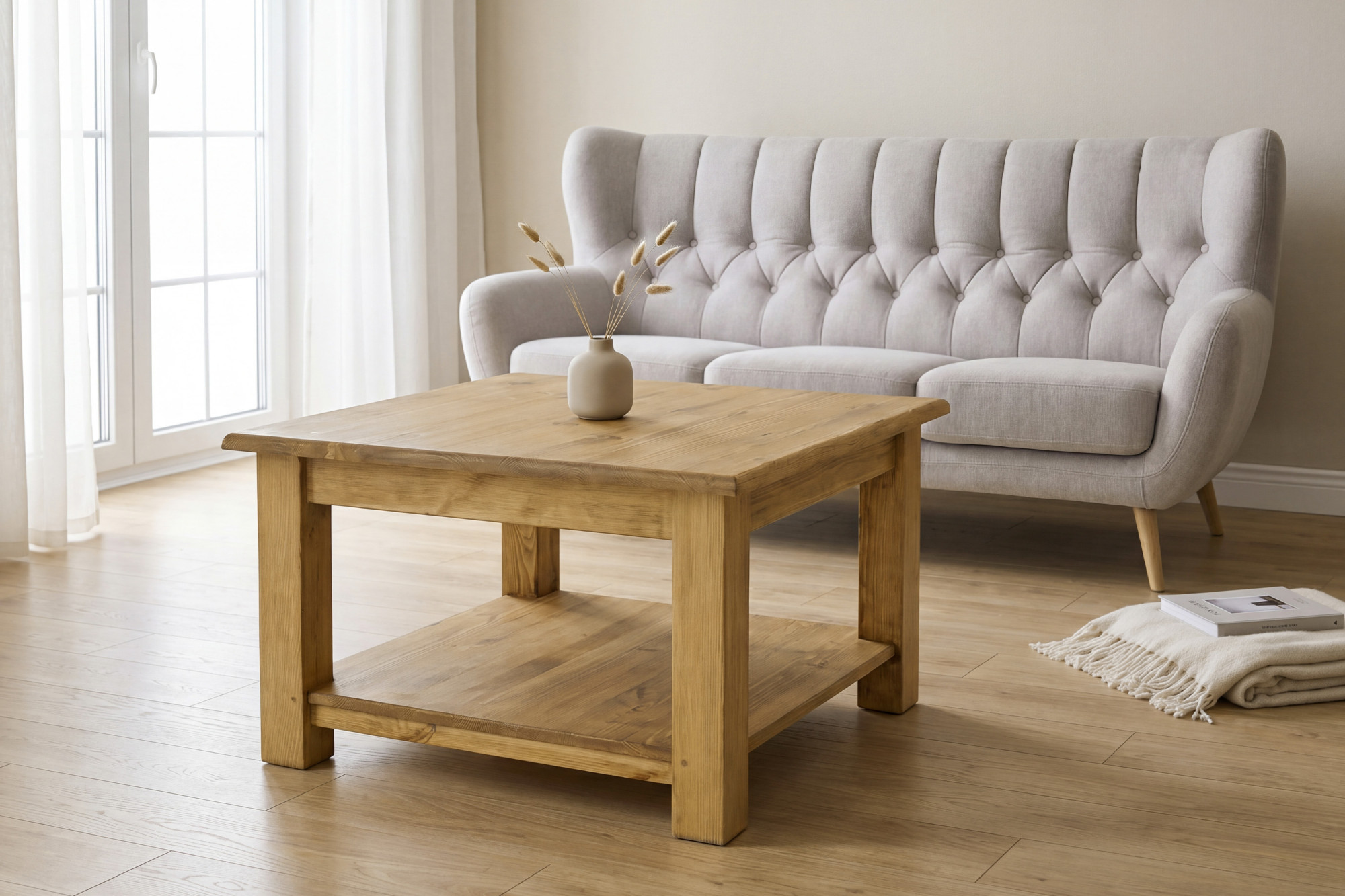 Rusztikus, francia stílusú kávézóasztal – Venkov sorozat tömör fenyőből