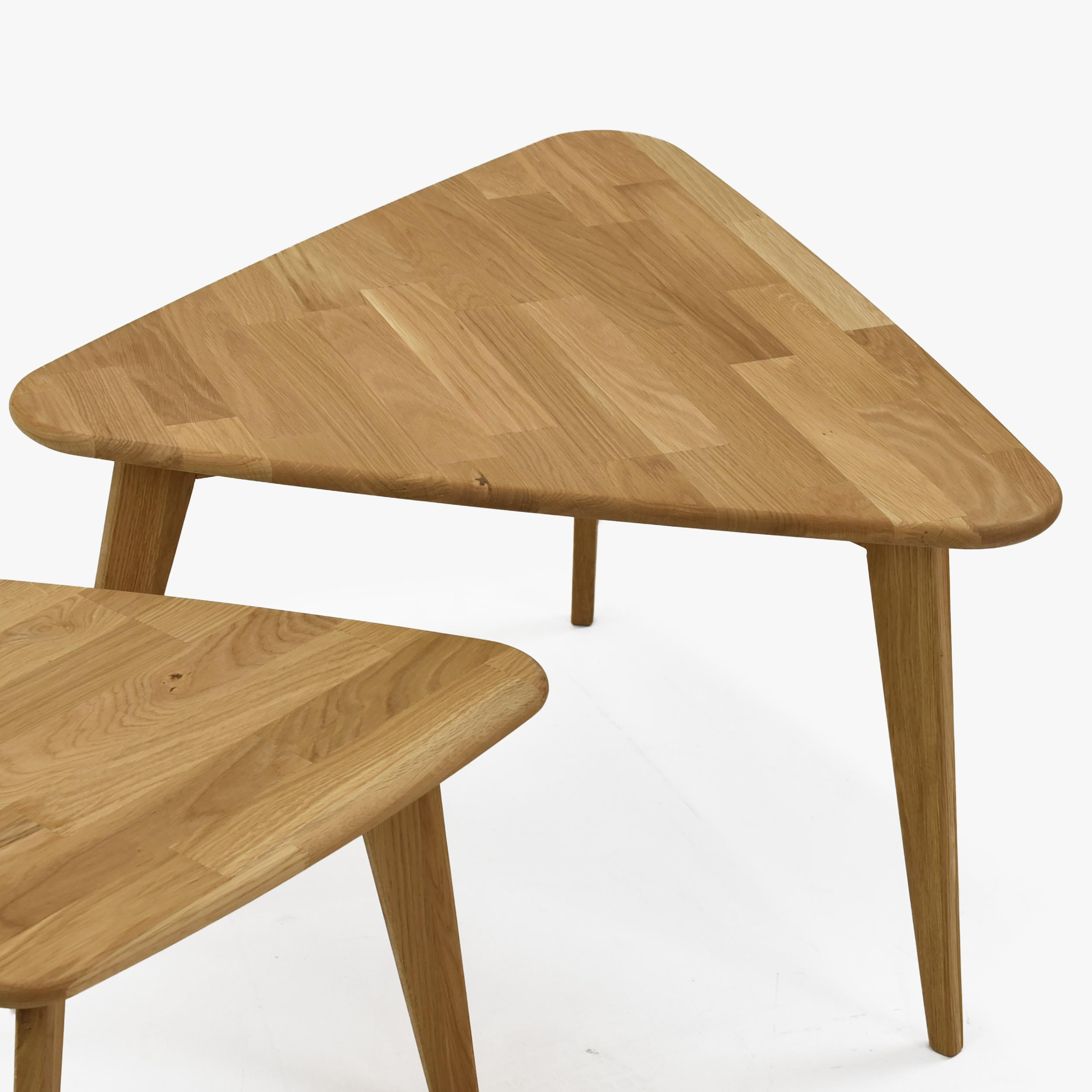Két darab natúr tölgyfa asztalka szett parketta mintás felülettel