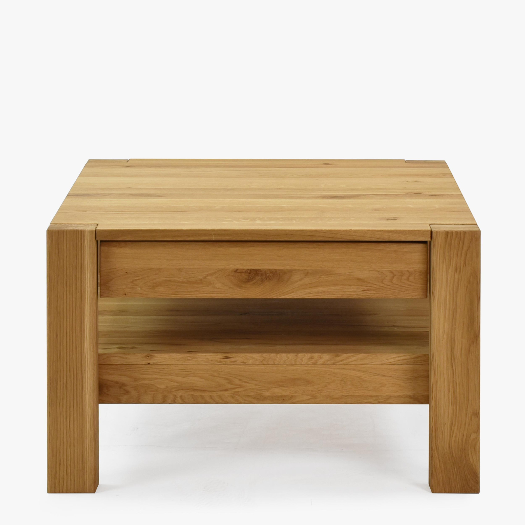 Tömör tölgyfa dohányzóasztal polccal, 70x70 cm, olajozott felület