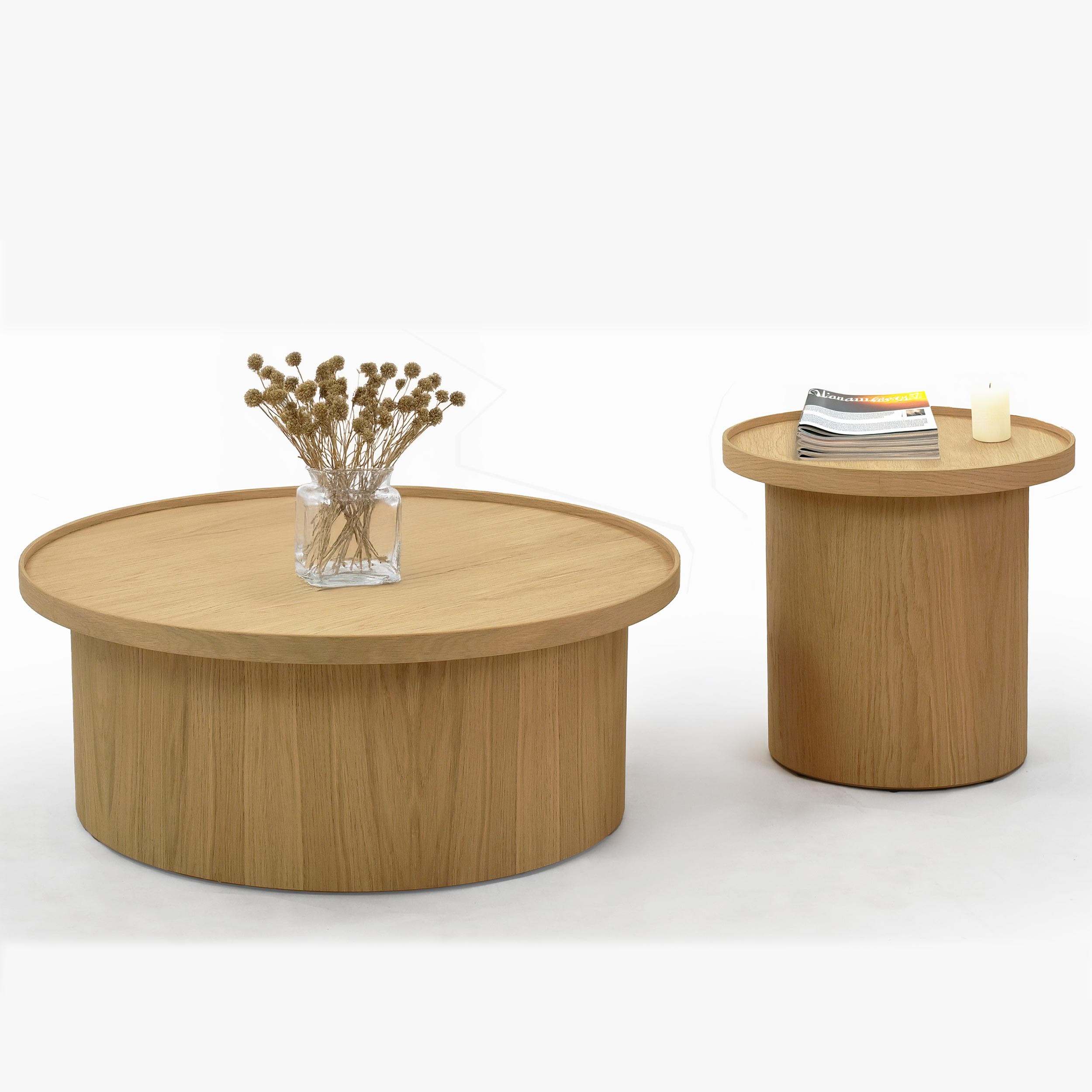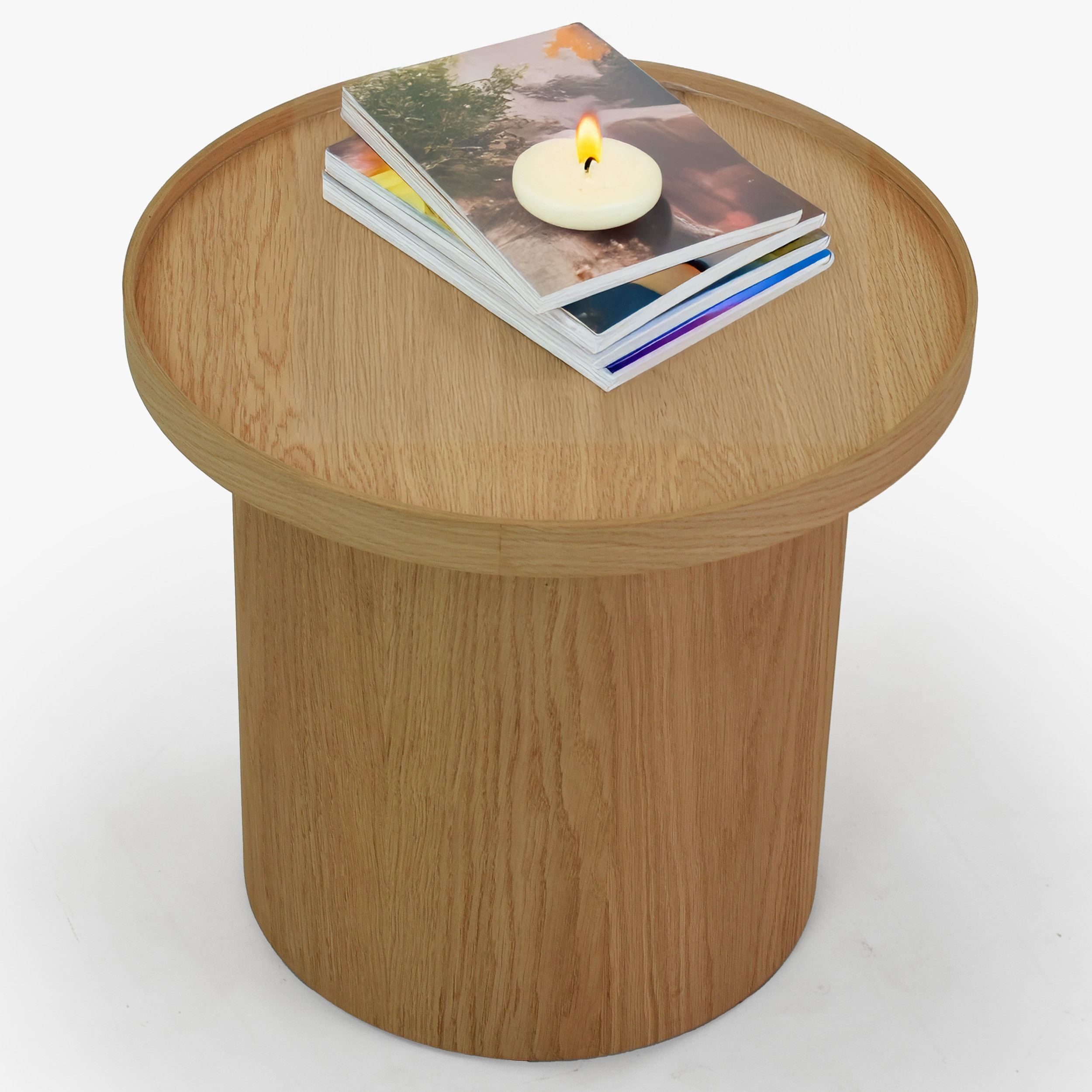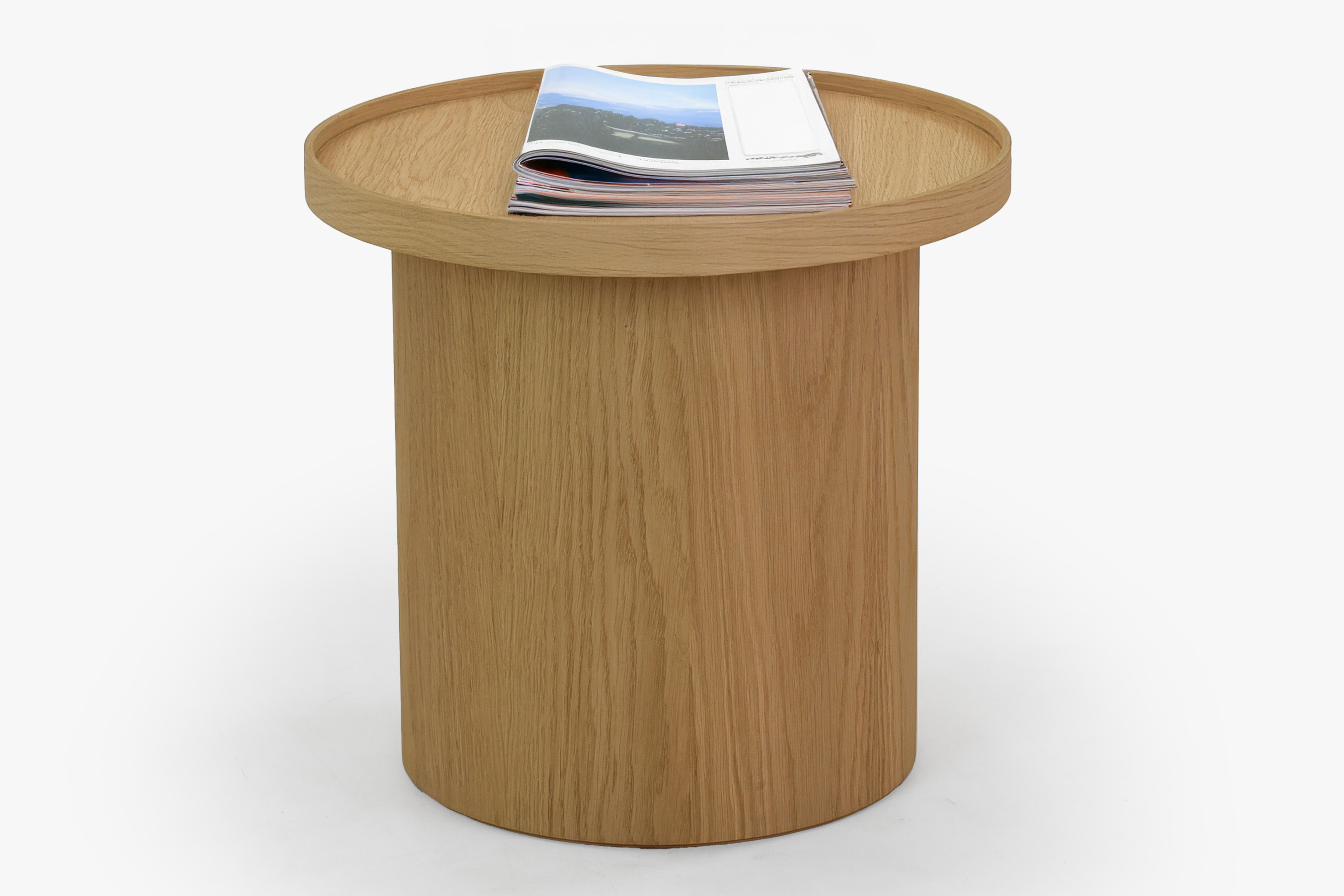 Fehér tölgy dohányzóasztal, Ø 45 cm, henger formájú