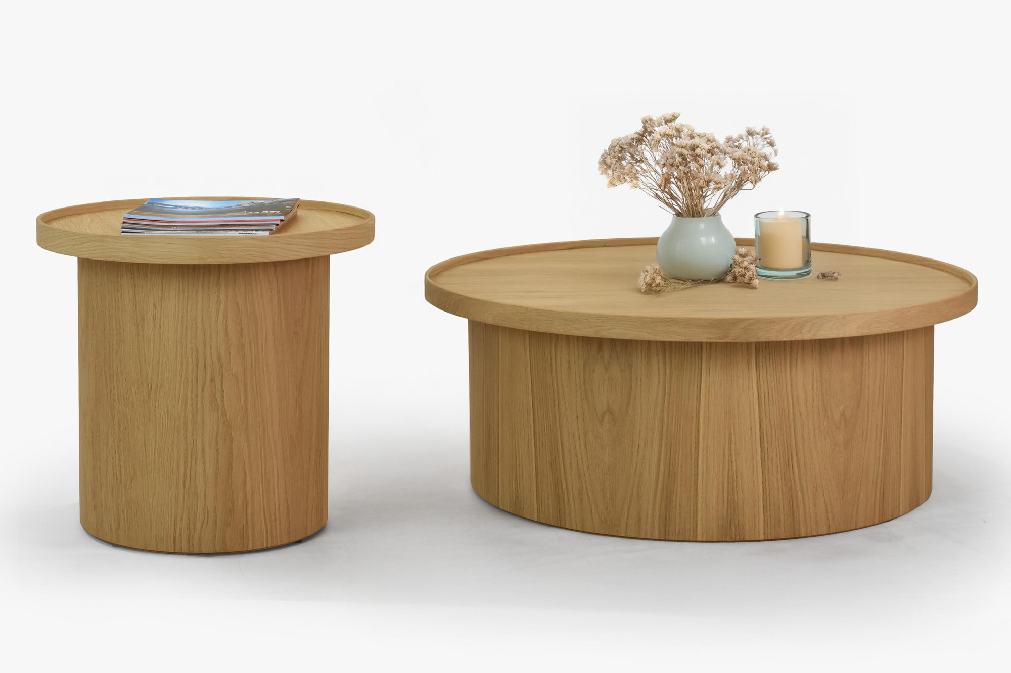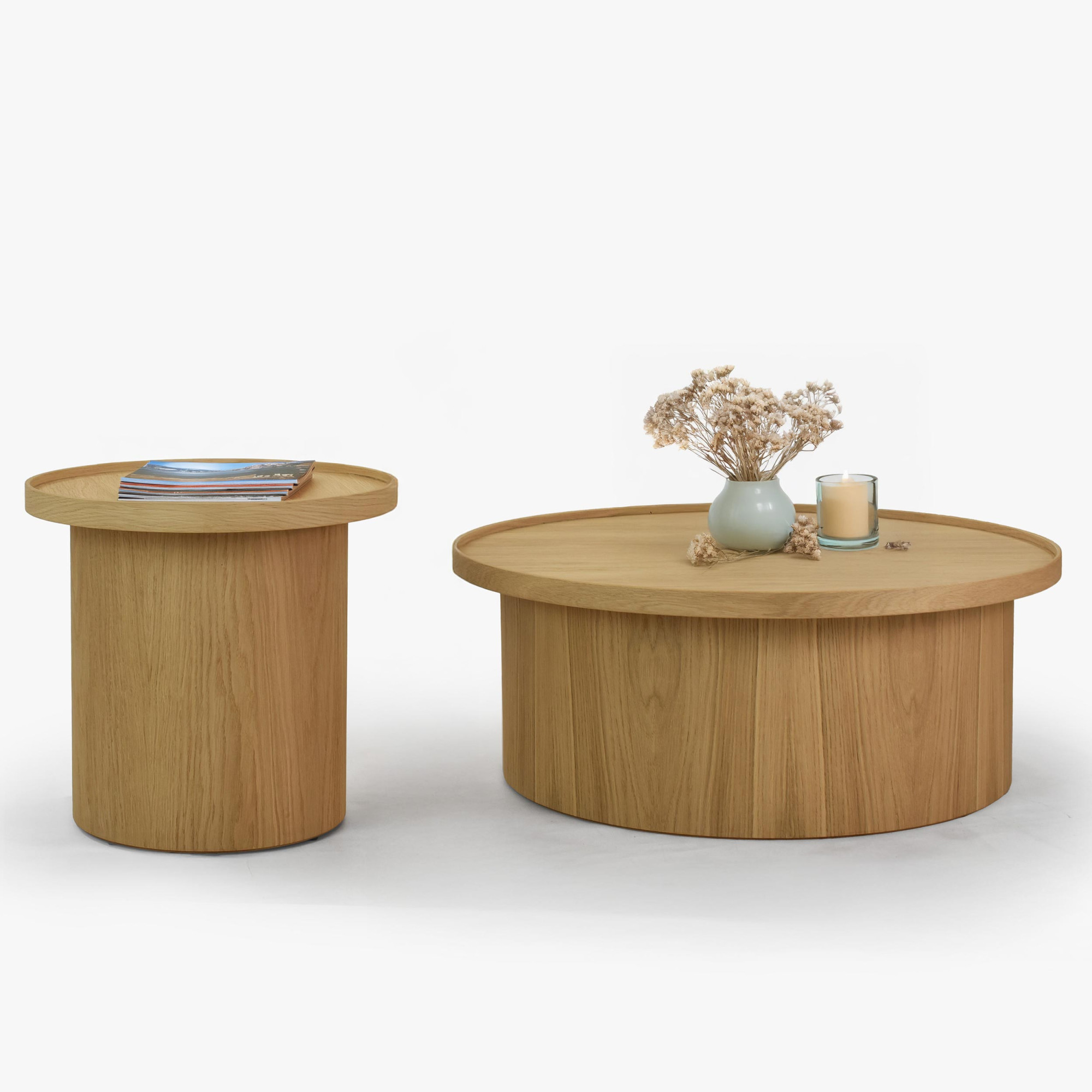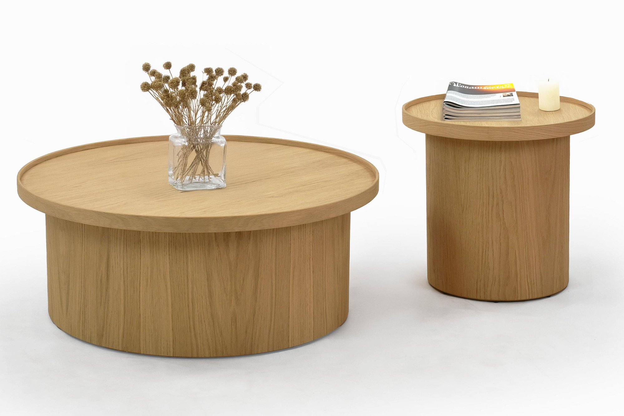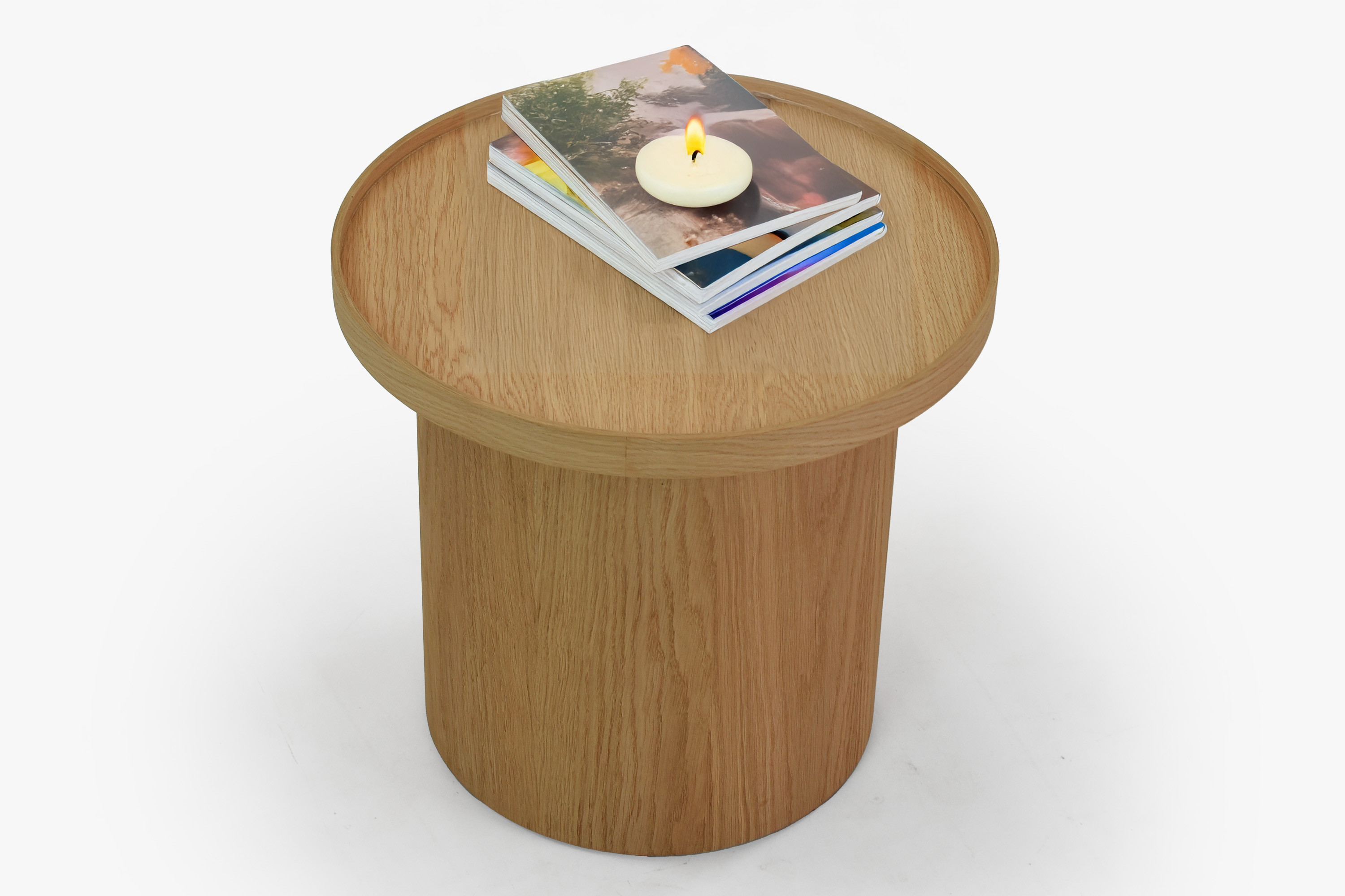 Fehér tölgy dohányzóasztal, Ø 45 cm, henger formájú