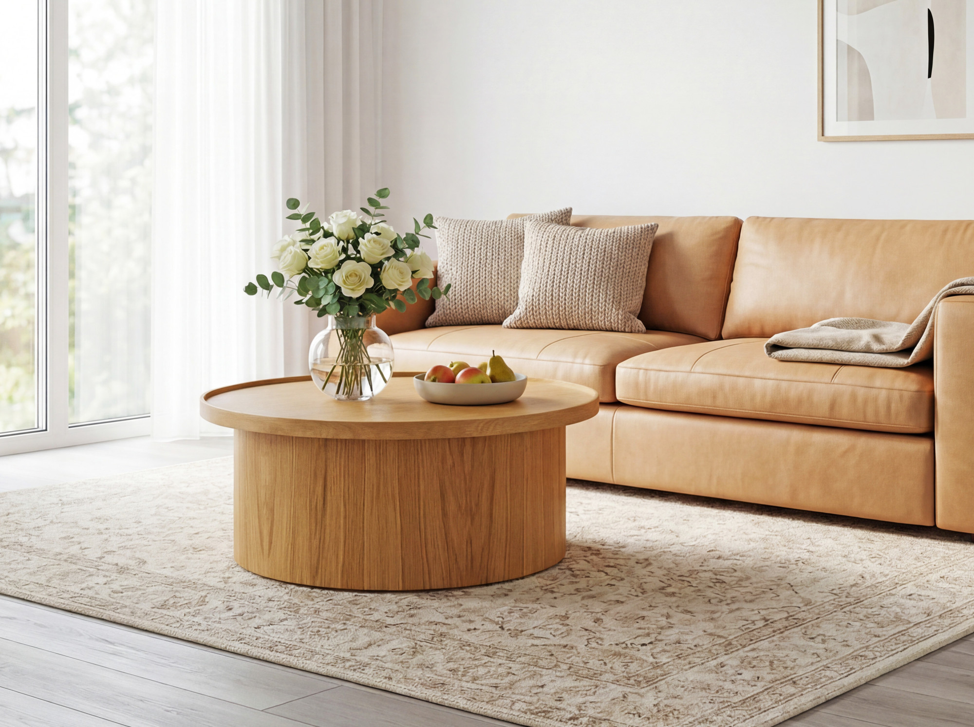 Az asztal nemcsak szép, hanem praktikus is – méretei ideálisak kisebb és tágas nappalikhoz egyaránt. Teljesen összeszerelt állapotban szállítjuk, azonnal használatra kész. Az univerzális natúr színnek köszönhetően könnyen kombinálható további tölgybútorokkal vagy más természetes anyagokkal. A kínálatban megtalálható egy kisebb, 45 cm átmérőjű változat is, amely külön megvásárolható vagy kiegészítőként. Natúr tölgy dohányzóasztal „dub natural” megfelel a szigorú környezetvédelmi követelményeknek – a felhasznált furnér FSC tanúsítványú, ami a felelős faeredetet garantálja.