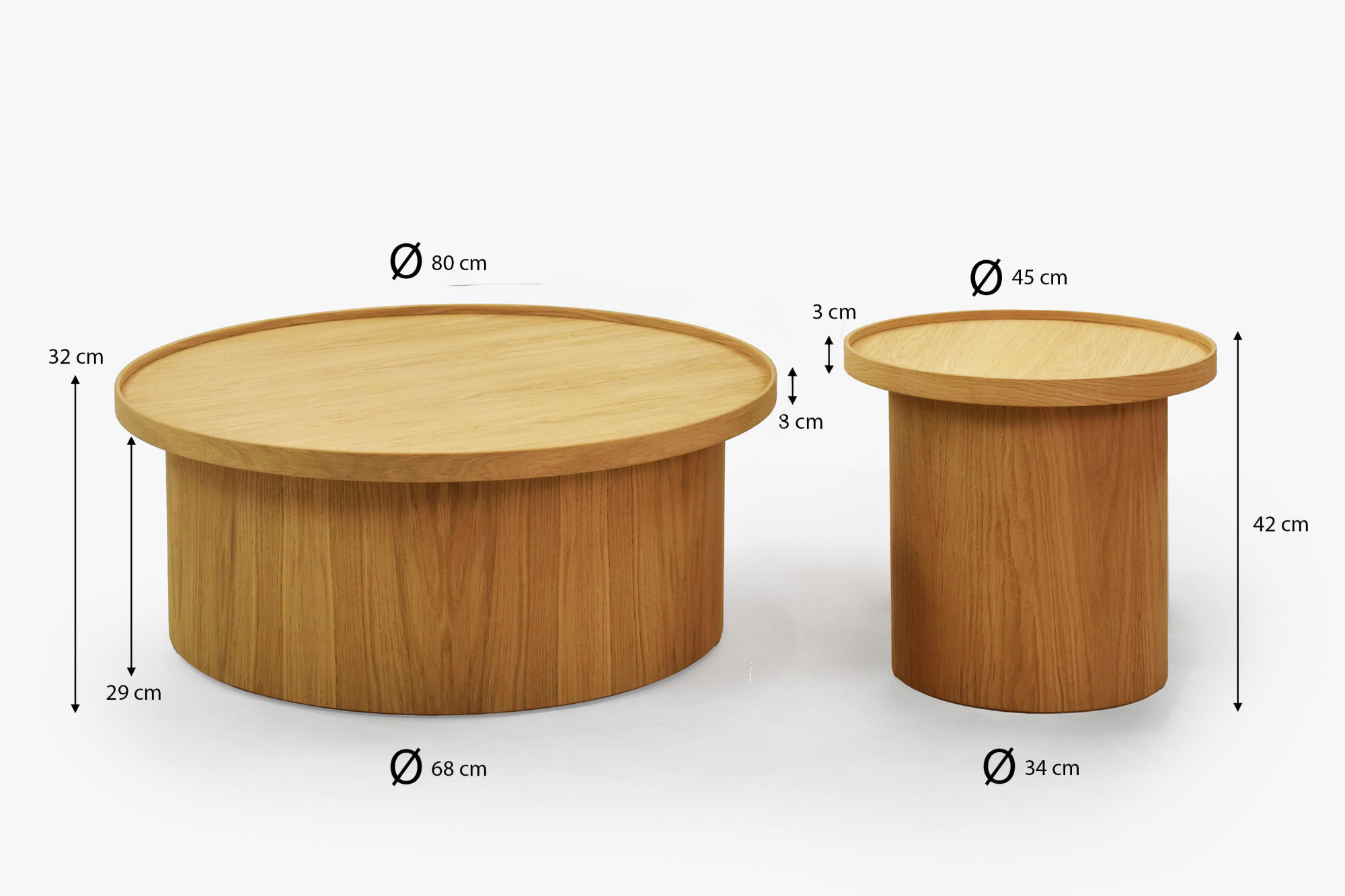Tölgy dohányzóasztal dub natural, Ø 45 cm, hengeres forma