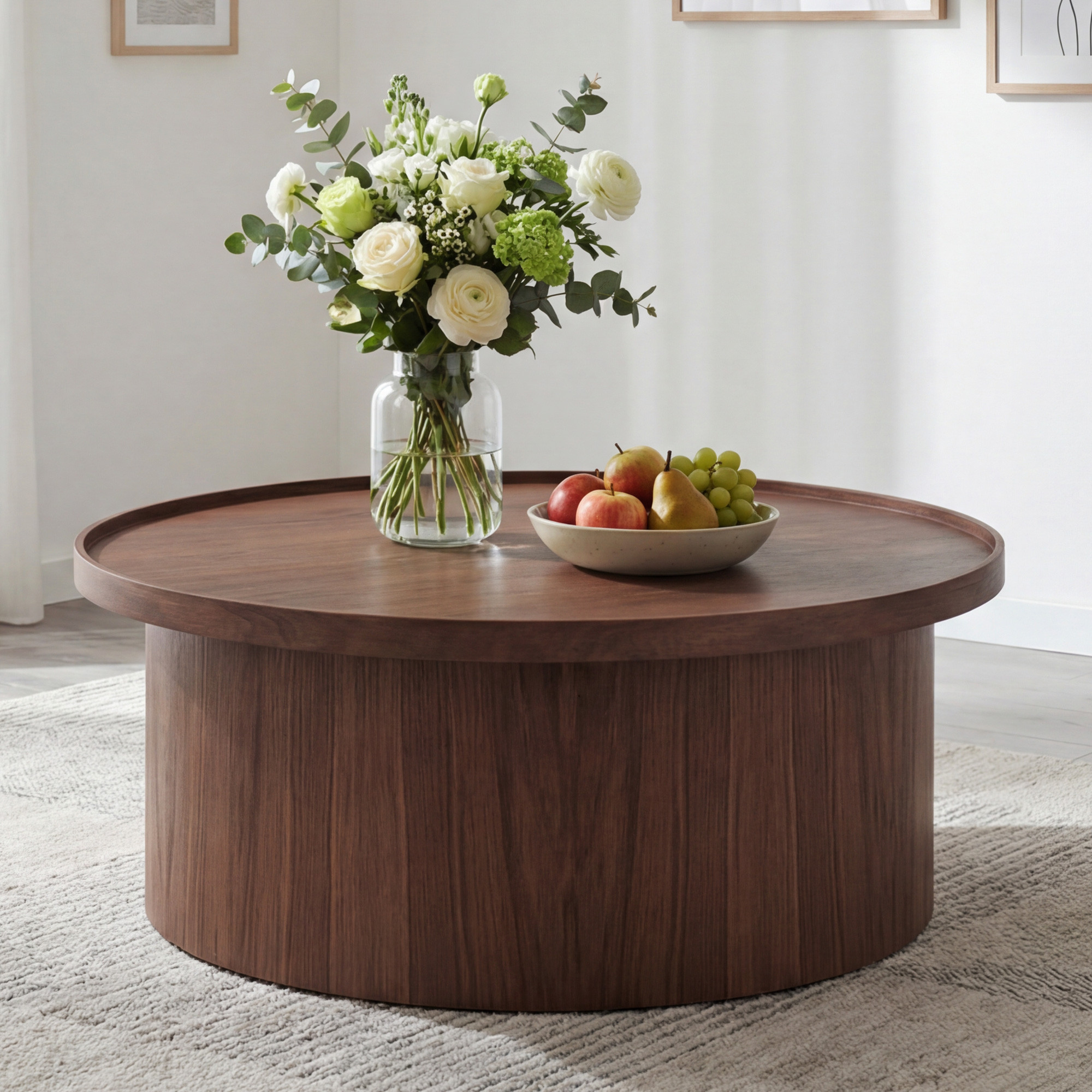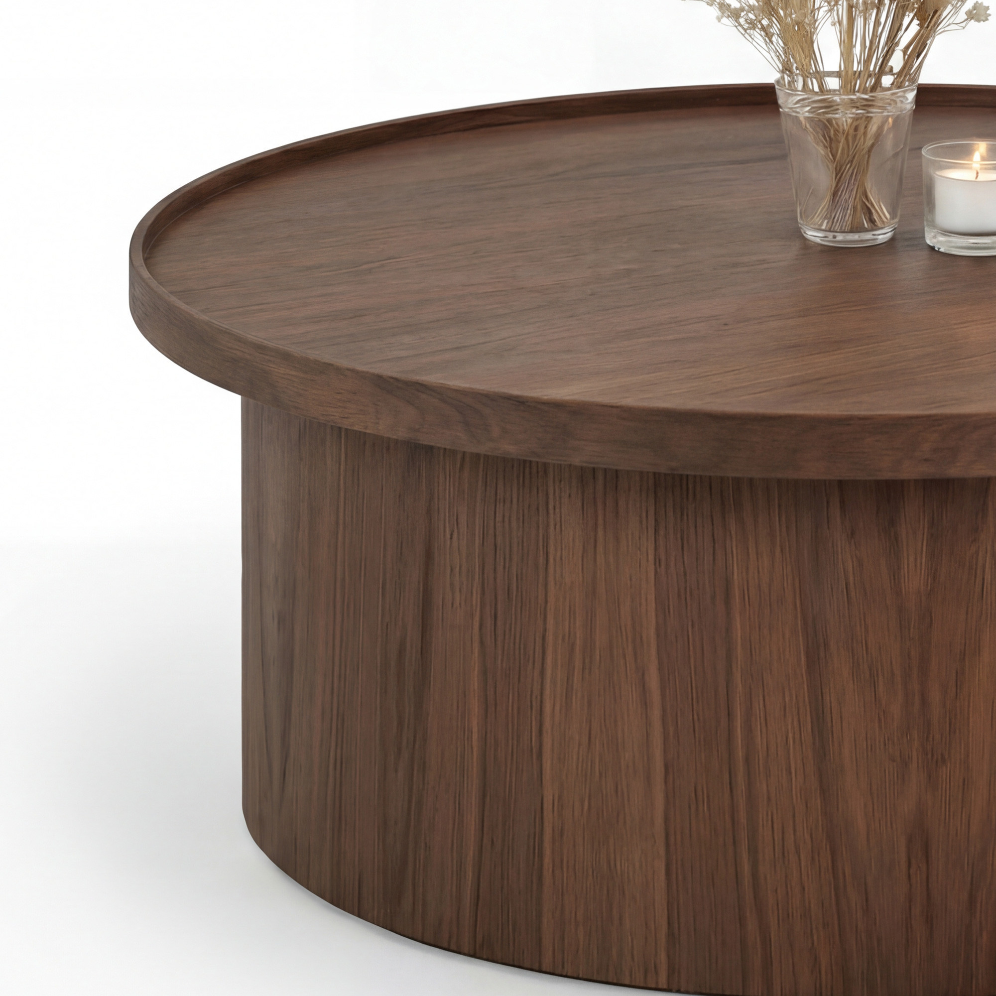 Dió színű tölgyfa dohányzóasztal, Ø 80 cm, henger alakú