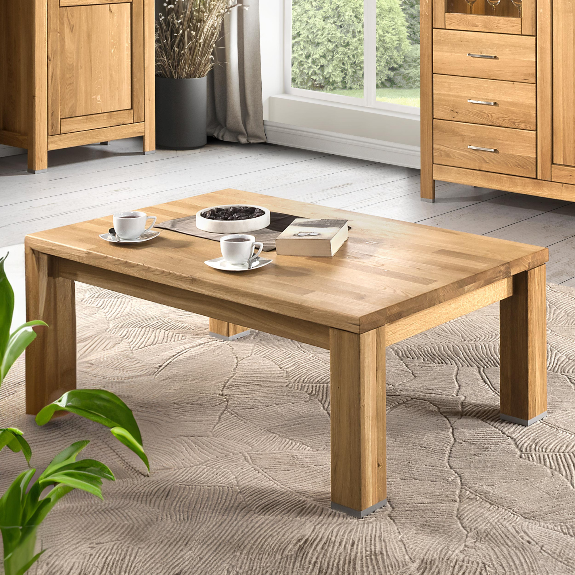 A válogatott tölgy tömörfa miatt a dohányzóasztal kiváló szilárdsággal rendelkezik, gyönyörű erezettel bír, és hosszú élettartammal lep meg. Ezt tovább növeli a felületkezelés egy elismert természetes olajjal, amely nagyobb ellenállást kölcsönöz a bútornak a mindennapi karcolásokkal és kopásokkal szemben.