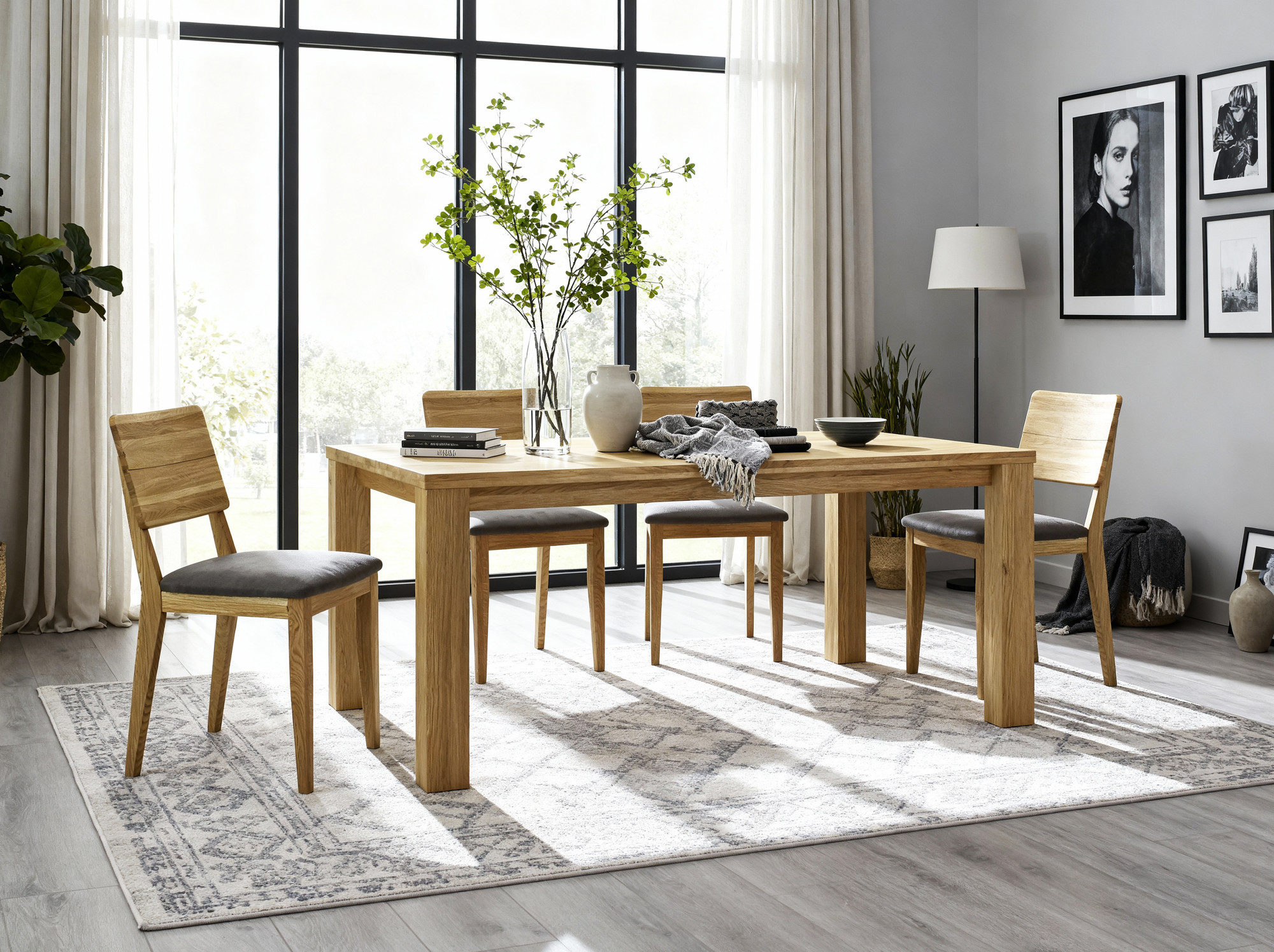 Kérdés: Össze lehet-e kombinálni ezt a szettet más tölgy bútorokkal? Válasz: Igen, a tölgy natural univerzális felületkezelésnek köszönhetően az asztalunk és a székek tökéletesen illeszkednek bármilyen tölgyfa bútorhoz. Széles választékban kínálunk kiegészítő termékeket azonos anyagból.
