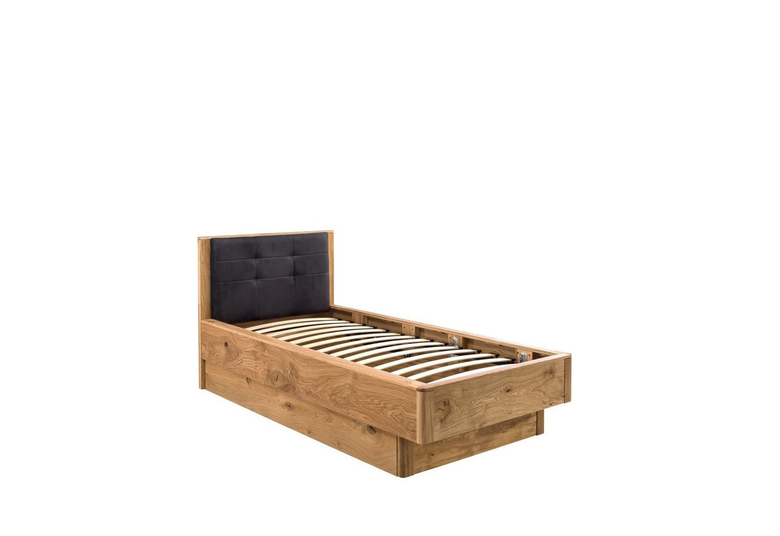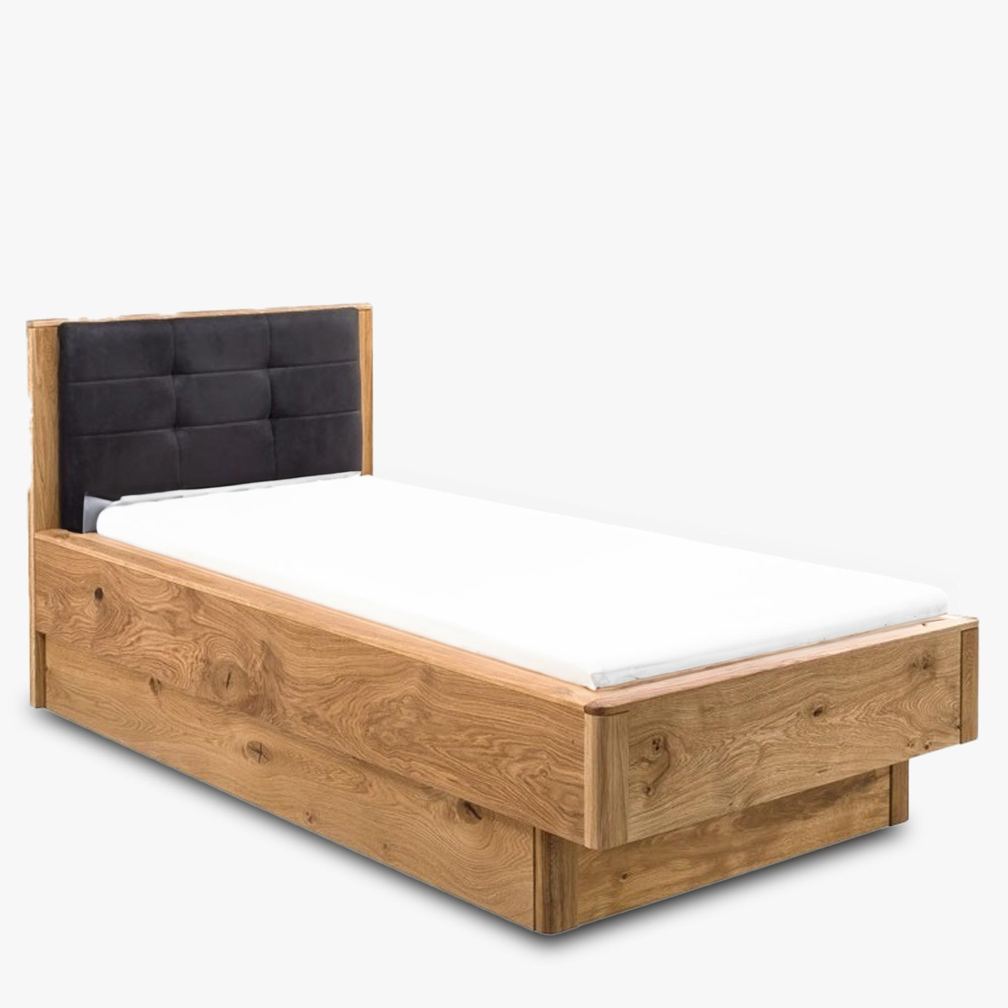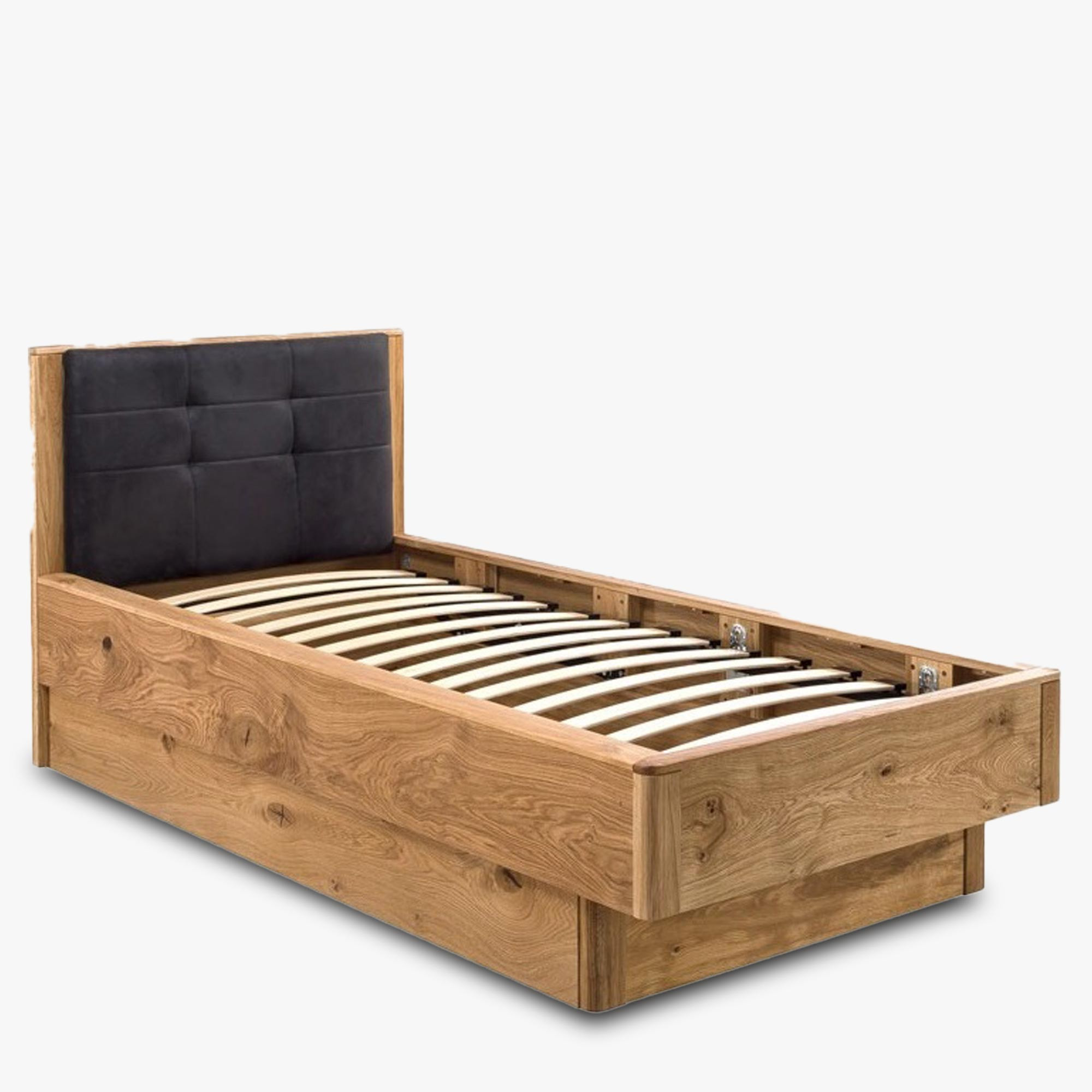 Tömör tölgyfa egyszemélyes ágy tárolóval, modern design, természetes