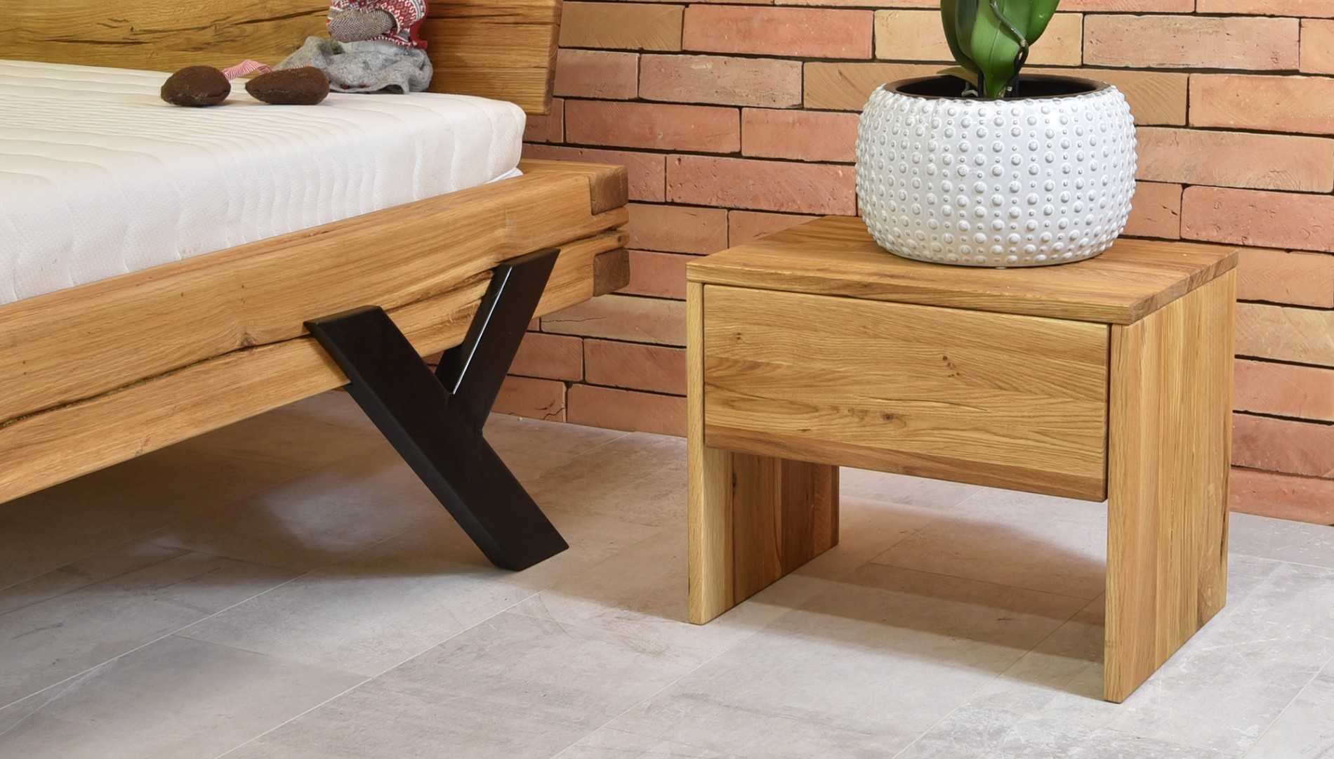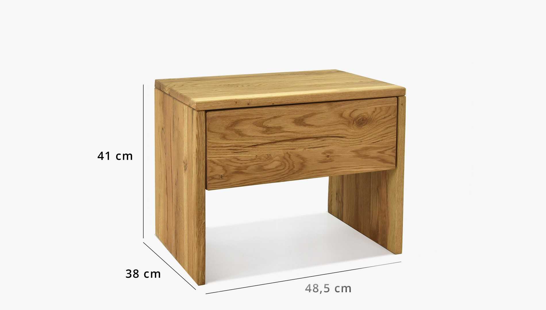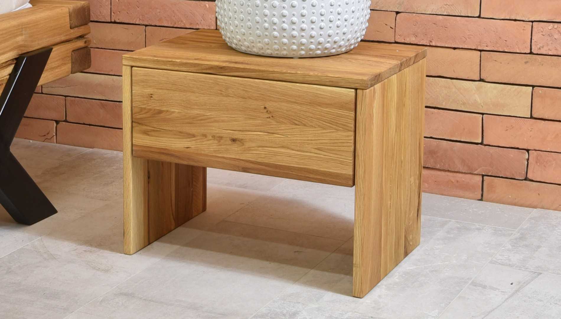 Tömör tölgyfa éjjeliszekrény 1 fiókkal, természetes olajszínű