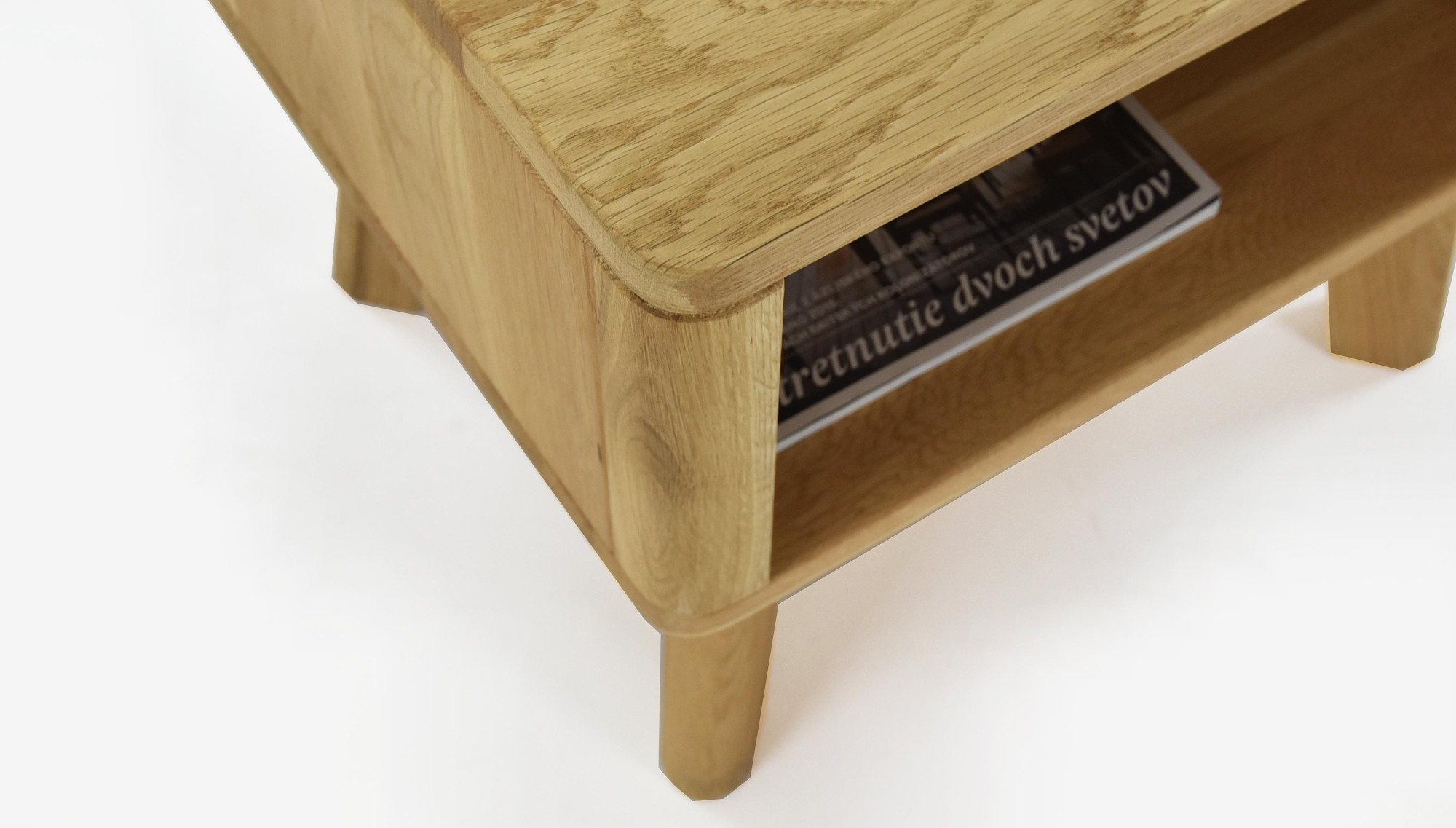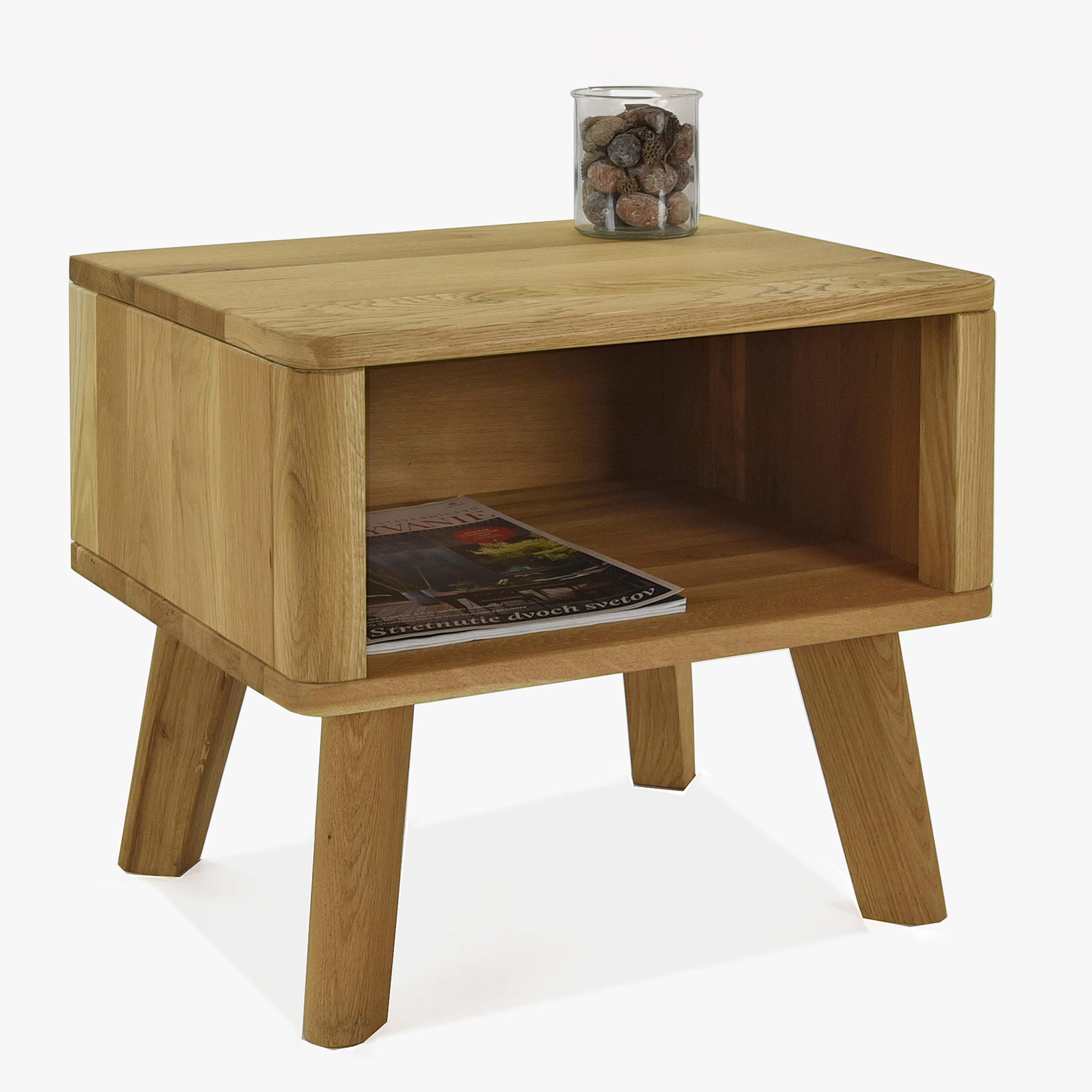 Tömör tölgyfa éjjeliszekrény Marina, természetes olajozott, nyitott