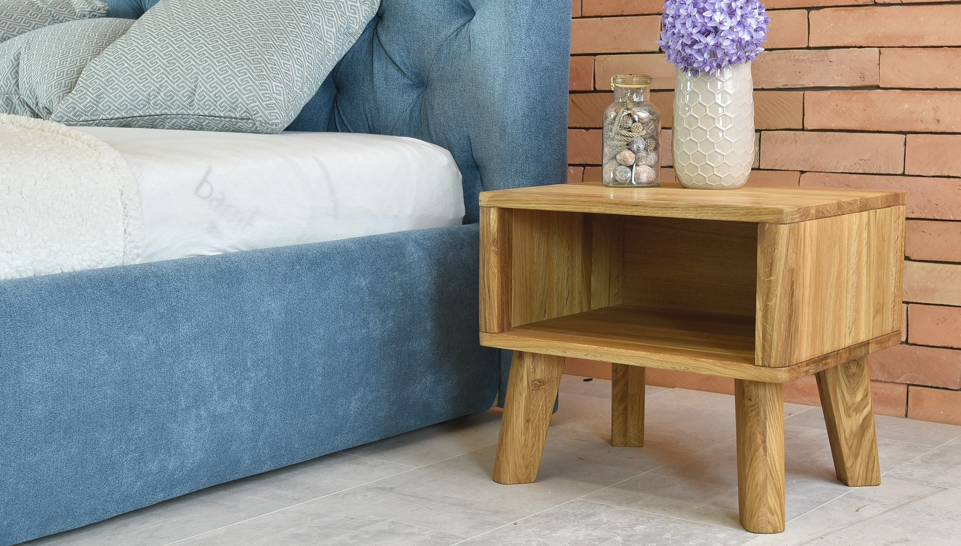Marina éjjeliszekrény tömör tölgyből természetes olajozott kivitelben tökéletes kiegészítője hálószobájának. 100% tömör tölgyfából készült, ez a praktikus éjjeliszekrény már teljesen összeszerelve érkezik és azonnal használatra kész. Időtálló dizájnjának és finoman lekerekített éleinek köszönhetően tökéletesen illik a tölgyágyakhoz és harmonikus egységet alkot. A nyitott polc univerzális tárolóhelyet kínál – könyveknek, magazinoknak, lámpának, ébresztőórának vagy kedvenc dekorációinak. Tömör tölgyfa természetes olajjal kezelve egyedi textúrát és jellegzetes megjelenést ad minden darabnak, melytől hálószobája otthonos pihenőhellyé válik.