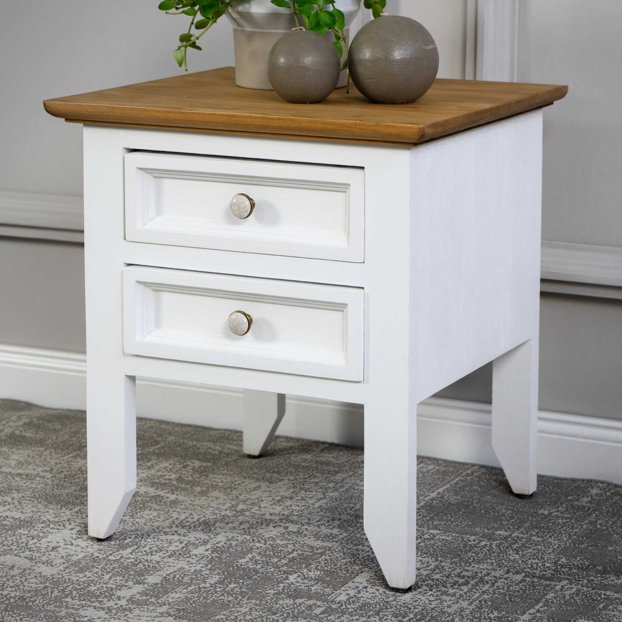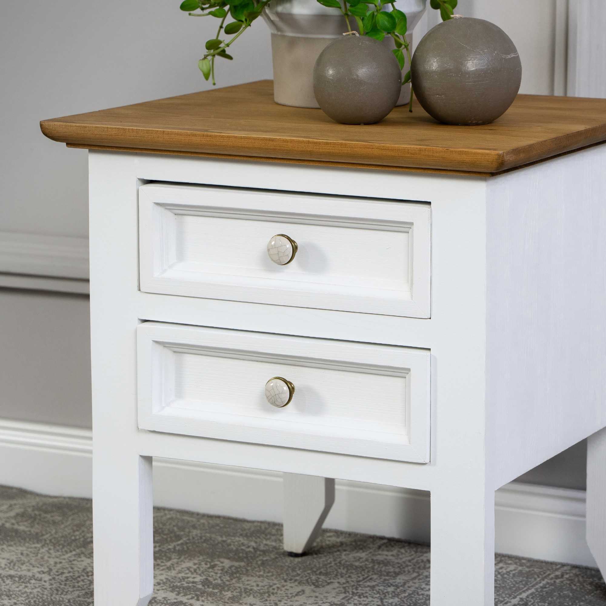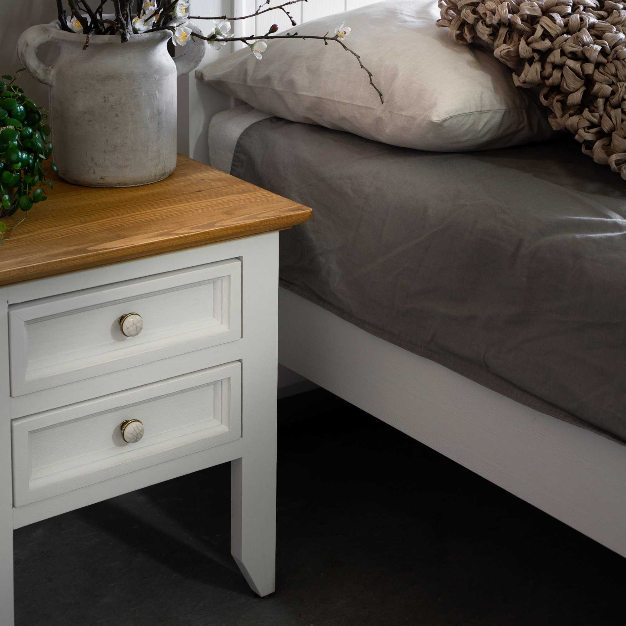 Természetes éjjeliszekrény provence stílusban, fehér‑barna színkombinációban. Az éjjeliszekrény tiszta fenyőfából készült. Az éjjeliszekrény a LILLE kollekció ágyához ideális kiegészítő. Élvezze a kellemes érzést elalváskor és ébredéskor, akár a francia vidéken. Merítsen pozitív és nyugodt energiát a vidéki élet hangulatából. Az éjjeliszekrény 2 fiókkal rendelkezik, összeszerelve szállítjuk. Bővítse belső terét ezzel a vonzó darabbal, és nap mint nap élvezze a természetes bútorok erejét. A természetes termékek környezetbarát jellege és a csodás dizájn harmóniája azok a tulajdonságok, amelyeket a LILLE éjjeliszekrény készítésekor egyesítettünk.