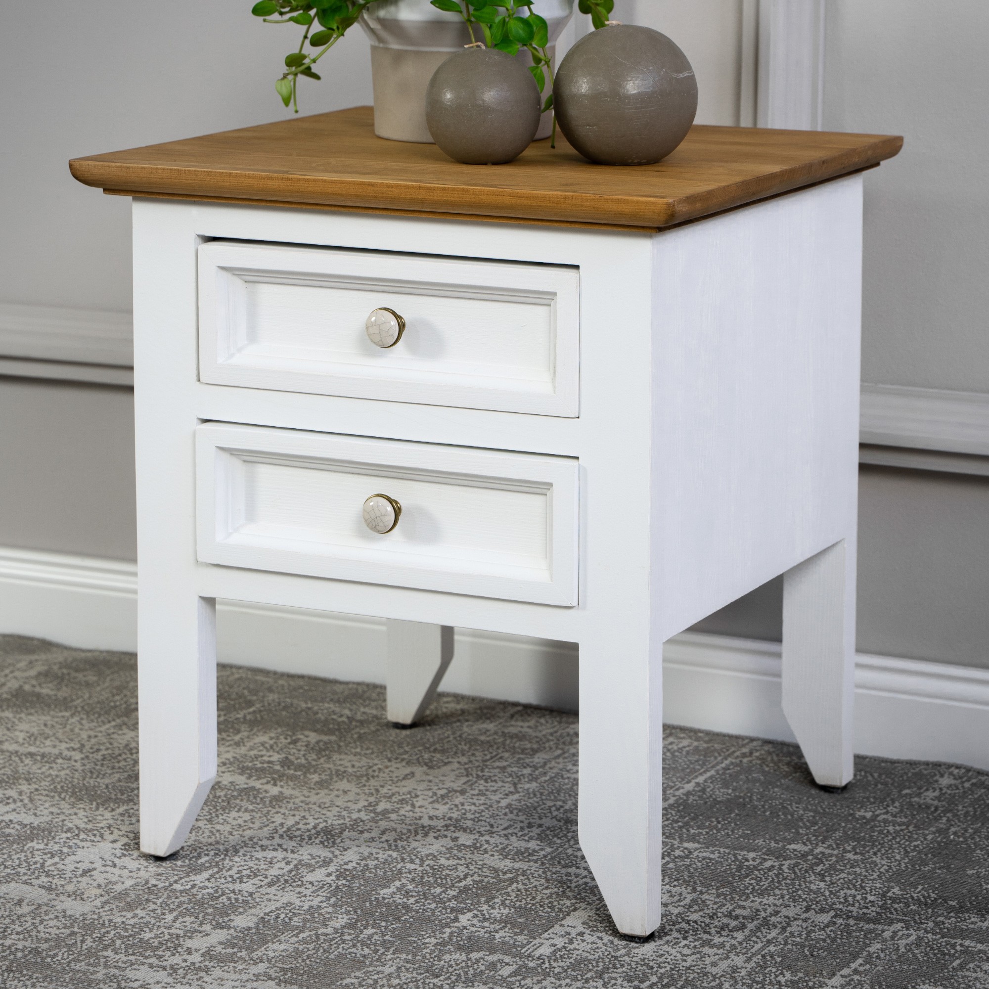 Provence-i fehér-barna fenyőfa éjjeliszekrény 2 fiókkal, Lille típus