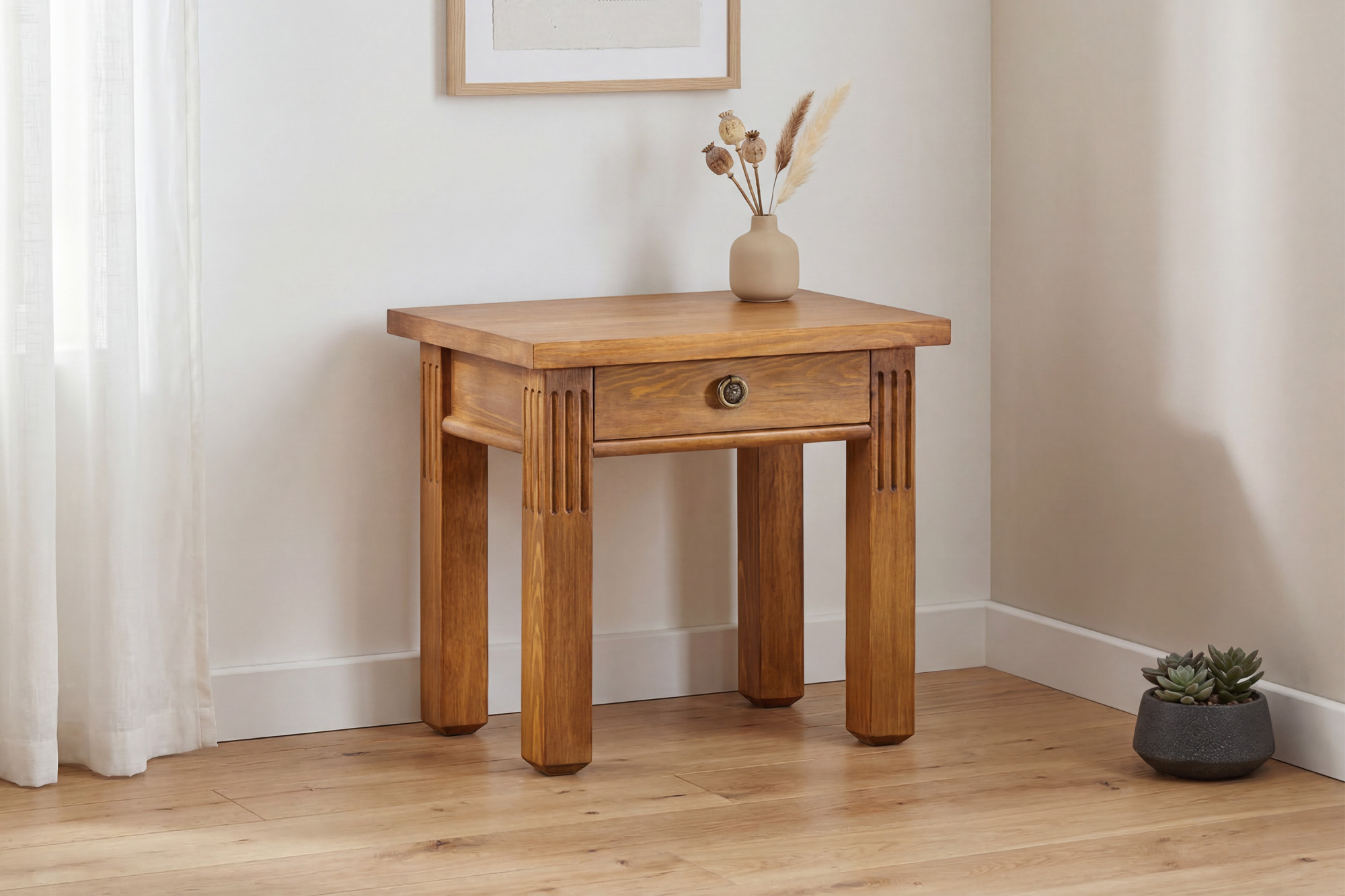 A Prestige éjjeliszekrény ötvözi a tömör fát, a precíz kidolgozást és az időtlen designt. Ha olyan bútort keres, amely nemcsak szép, hanem tartós és funkcionális is, ez a modell nem fog csalódást okozni. A minőségi fenyőfa, a lakkozott felület és az elegáns antik sárgaréz részletek egy olyan bútordarabot eredményeznek, amely hosszú évekig szolgálja tulajdonosát. A szekrény ráadásul könnyen kombinálható a Prestige sorozat többi termékével, így egységes stílusú enteriőrt alakíthat ki.