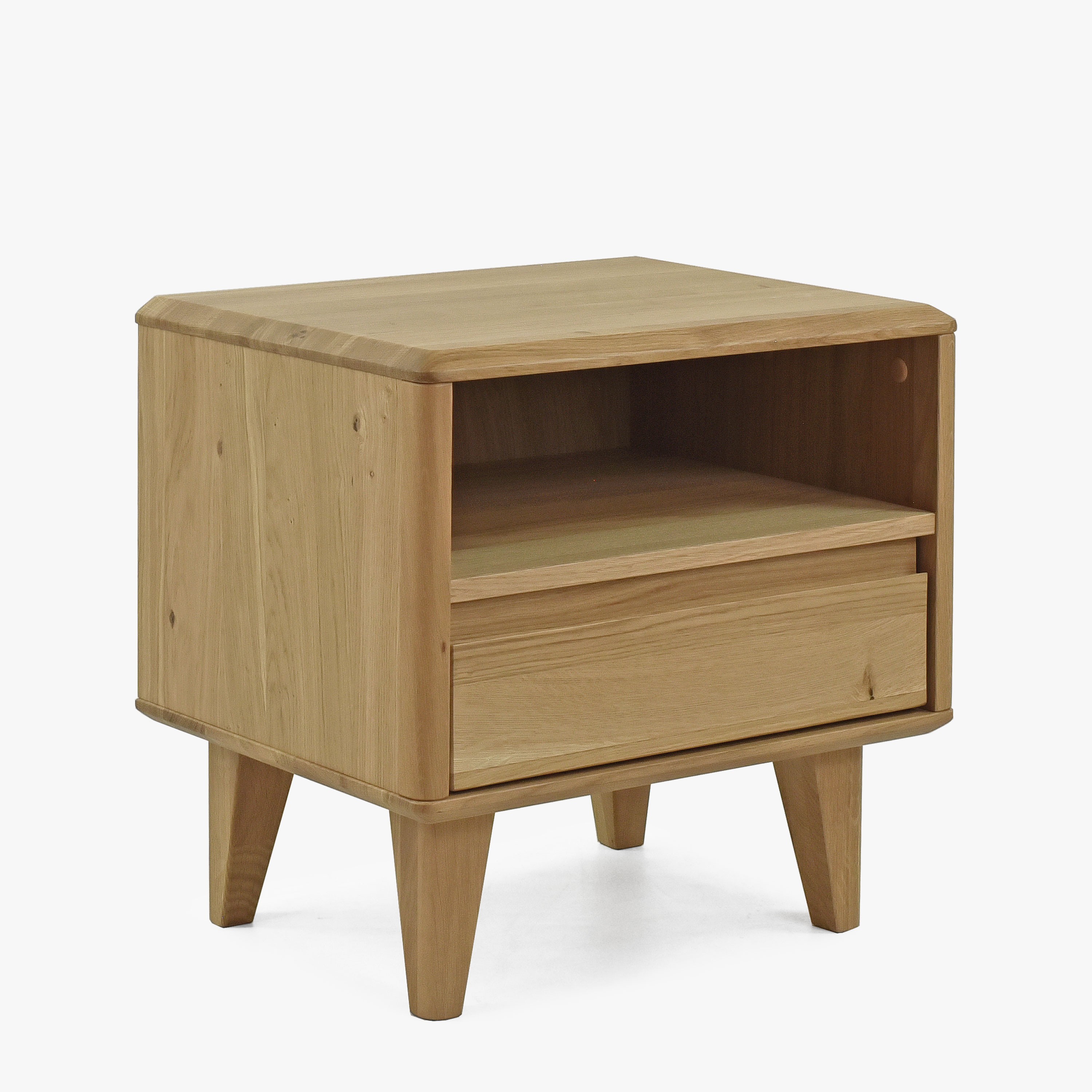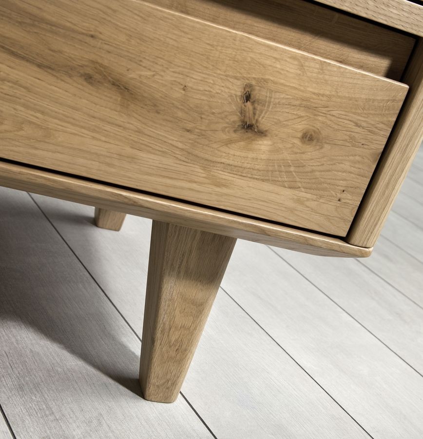 Elegáns éjjeliszekrény a kedvenc Love bútorsorozatunkból. Ez a hangulatos bútordarab tökéletes kiegészítő minden olyan enteriőrhöz, amelyet a skandináv dizájn ihletett, és amely az egyszerűségéről, funkcionalitásáról és szépségéről ismert. Az éjjeliszekrény gondosan tölgyfából készült, kiváló minőséget és hosszú élettartamot biztosítva. A kialakítását letört élek és modern tölgyfa lábak jellemzik, amelyek könnyedséget és eleganciát kölcsönöznek neki.