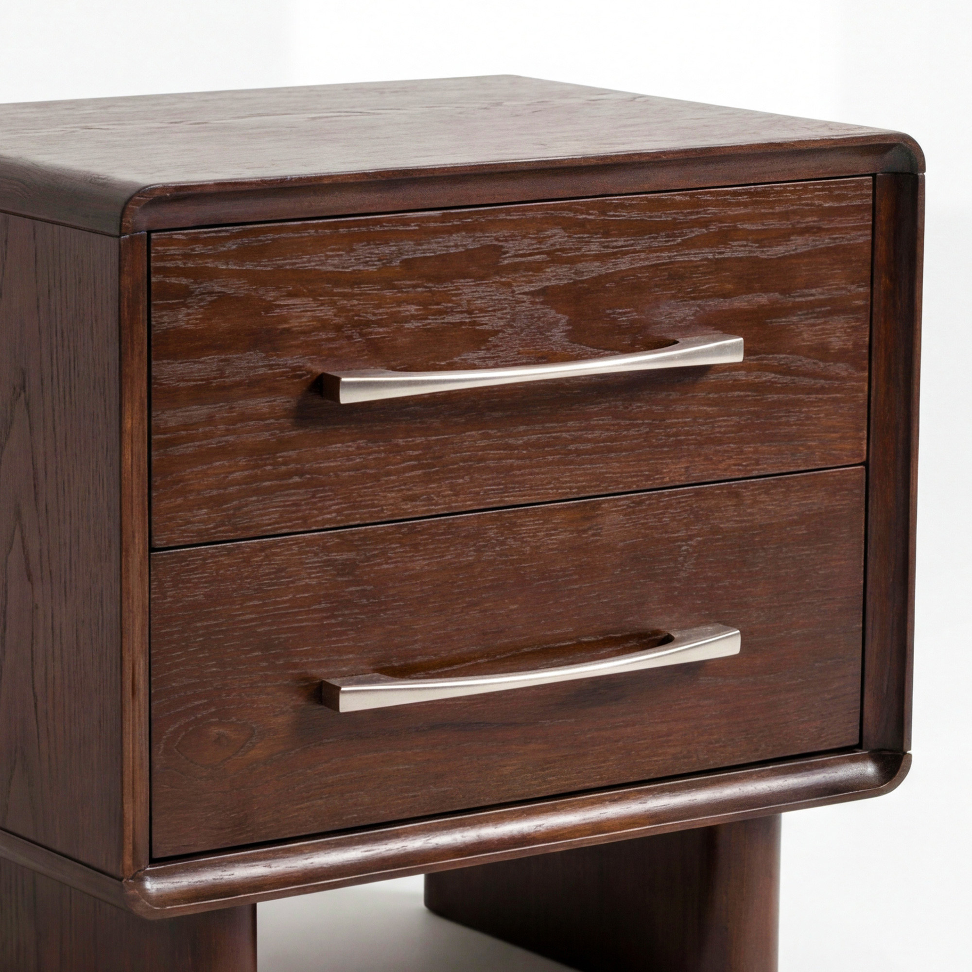 Tölgy éjjeliszekrény 2 fiókkal, dió színű, modern dizájn