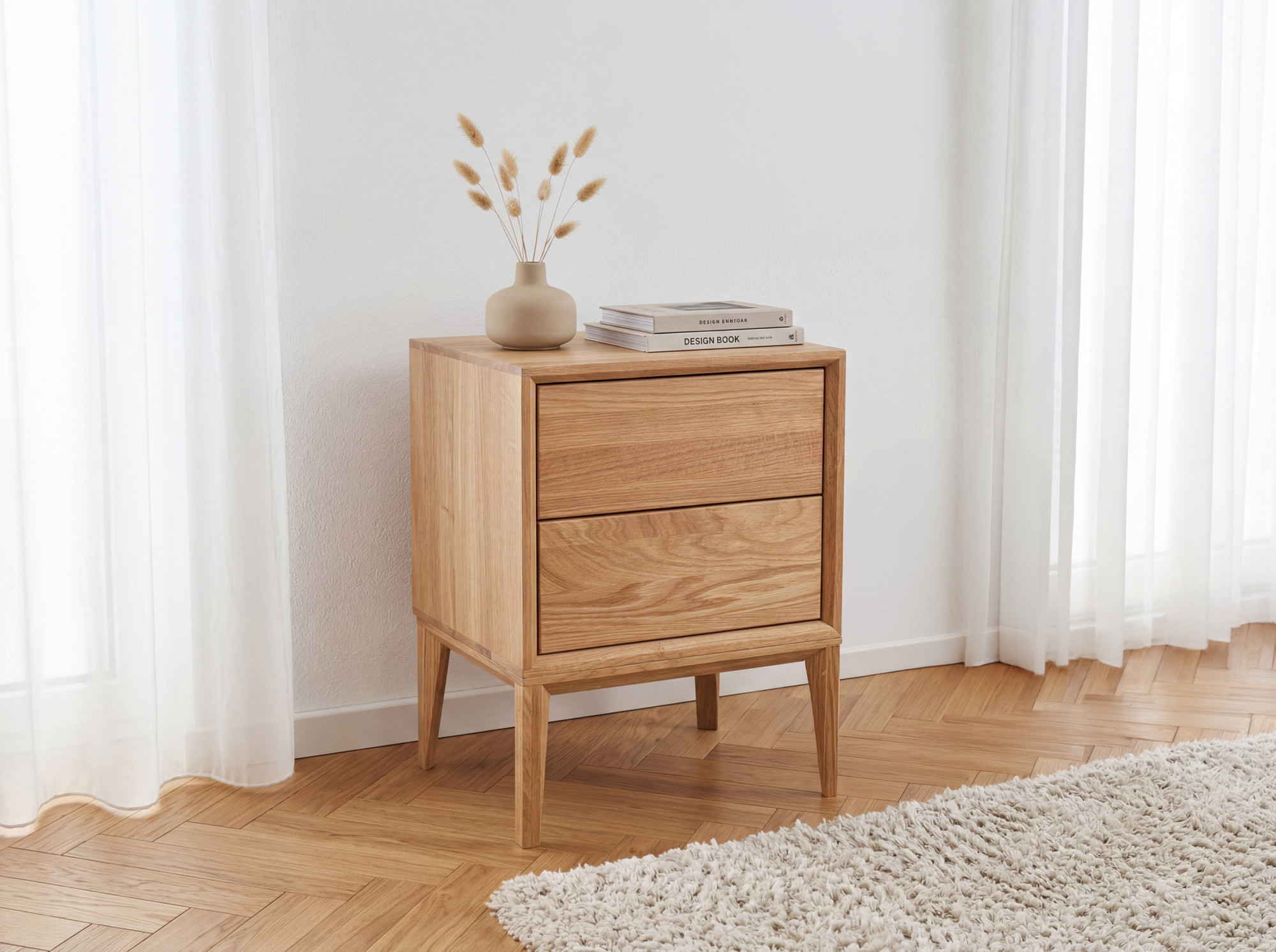 Oslo tölgy éjjeliszekrény 2 fiókkal – tömör tölgy természetes olajjal