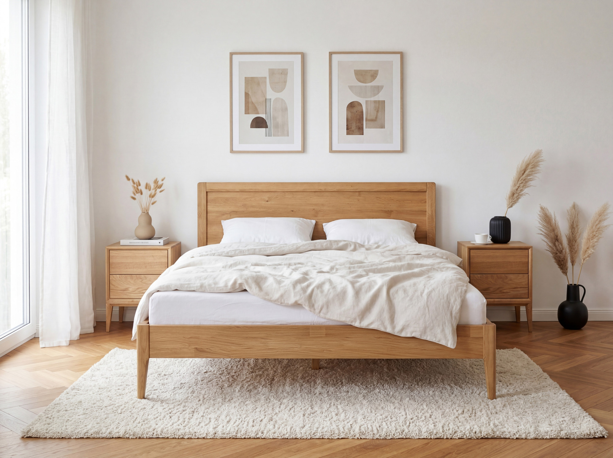 Az Oslo éjjeliszekrény, amely tömör tölgyfából készült, ideális választás azoknak, akik elegáns és funkcionális kiegészítőt keresnek hálószobájukba. Skandináv formatervezésének köszönhetően, finom vonalakkal és döntött lábakkal, a szekrény légies és modern hatást kelt. Két tágas fiók az innovatív érintéses nyitómechanizmussal (tip-on) kényelmes nyitást tesz lehetővé: elég enyhén megnyomni a fiókelőt – fogantyúk nélkül, ami a tiszta, minimalista megjelenést hangsúlyozza. A soft-close rendszer biztosítja a fiókok csendes és sima záródását ütközés nélkül.