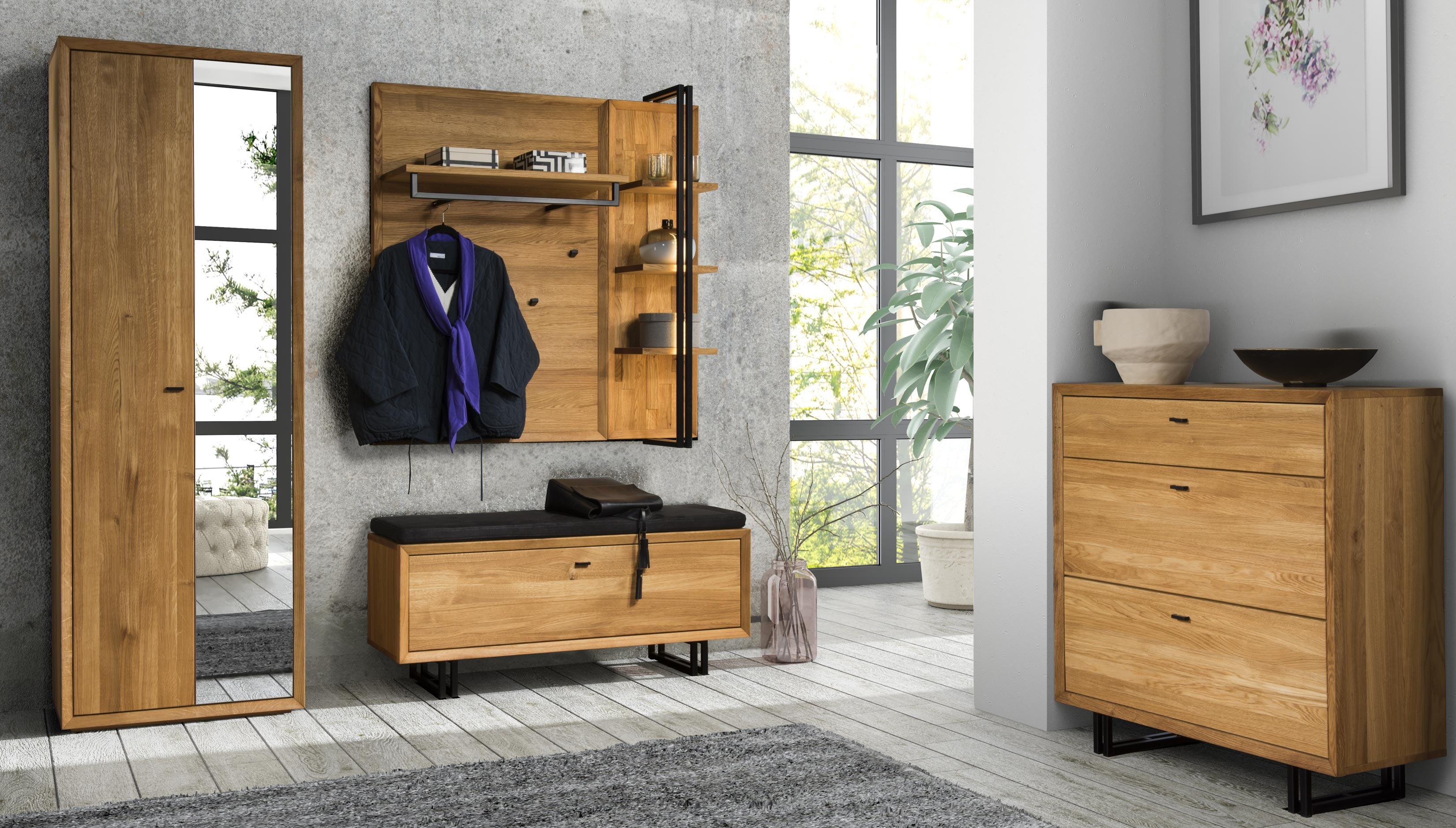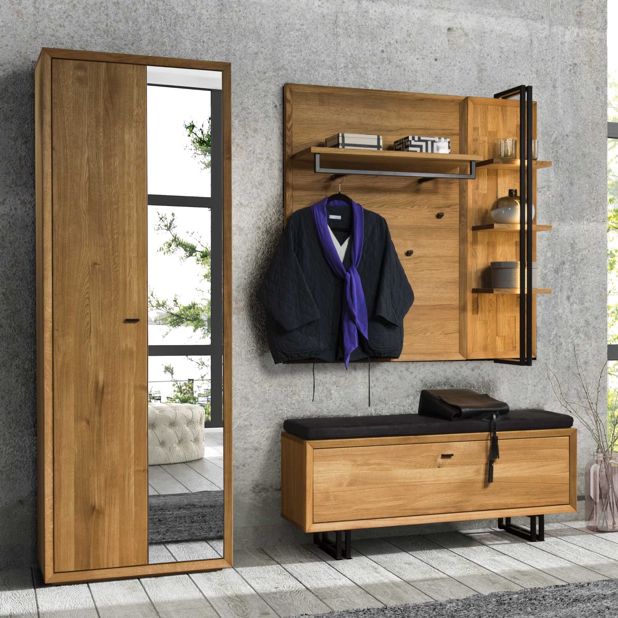 Luxusos előszobabútor tölgyfából, természetes tölgyfurnér kombinációjából. A szett tartalmaz egy gyönyörű Vilo cipőtartót, amely elegendő helyet biztosít a cipőinek. Lábakon álló cipőtartó, amely alkalmas a cipőfelvételre is. A szett része továbbá egy kétajtós szekrény tükörrel. Valamint polcos falpanel és fali polcok. Valóban exkluzív és dizájnos, ezek a fő jelzők a Vilo 2020-as kollekció tölgybútoraira. A Vilo tölgybútor elsősorban az előszobába készült, a kínálatban megtalálhatók a fogasfalak és cipőtartók.