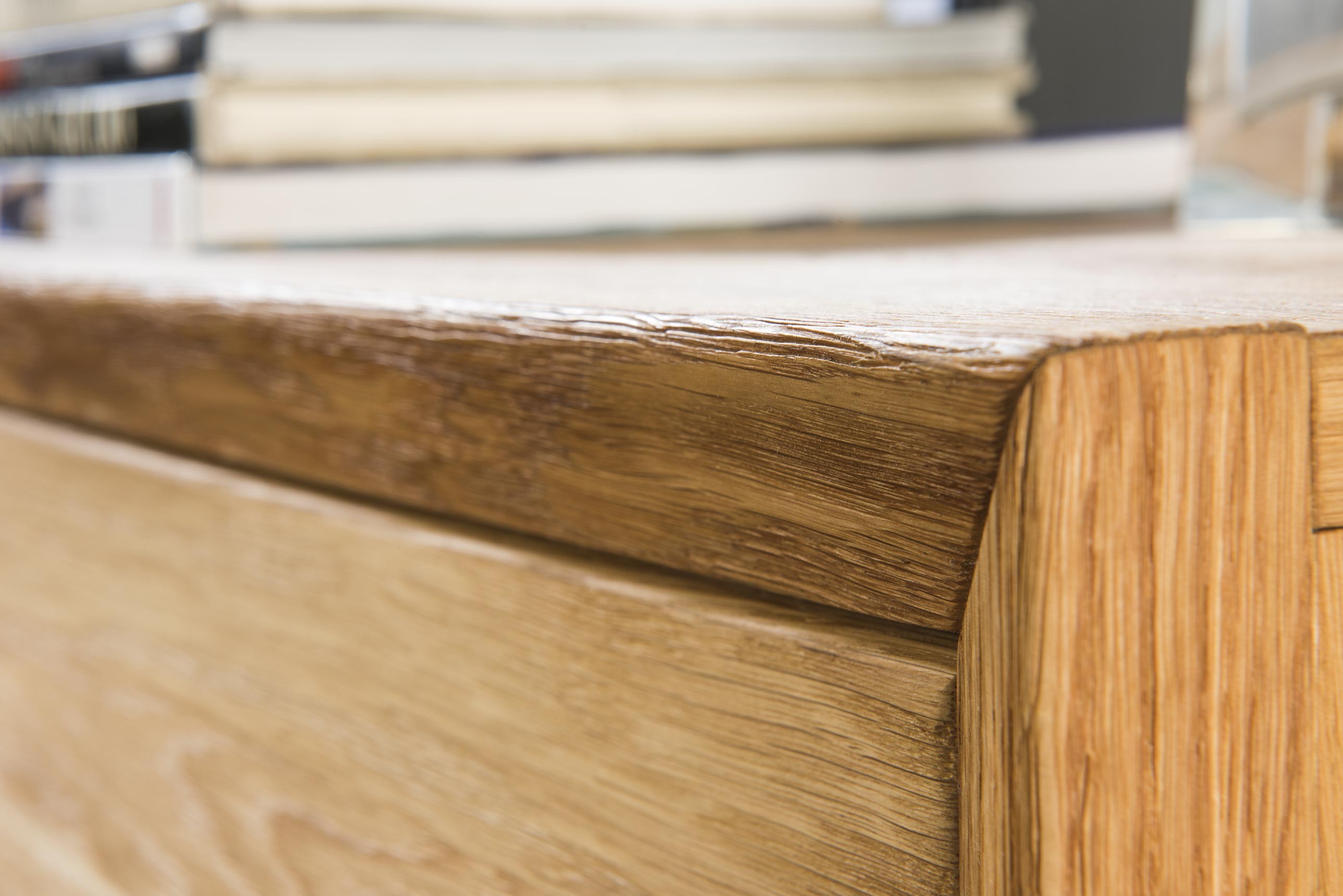 A Vilo bútorcsalád tölgyfa és természetes tölgyfurnér kombinációjából készül. Az elülső részek (fiókok/ajtók) tölgyfából készülnek, a felső lap természetes tölgyfurnér, míg a belső váz és a bútor oldalfalai természetes tölgyfurnérból vannak. A bútor különleges német Livos olajjal van kezelve. A bútor cégünk és egy lengyel vállalat együttműködésében készül, ahol a végső termék minden egyes darabja valódi, legmagasabb minőségű egyedi darab.