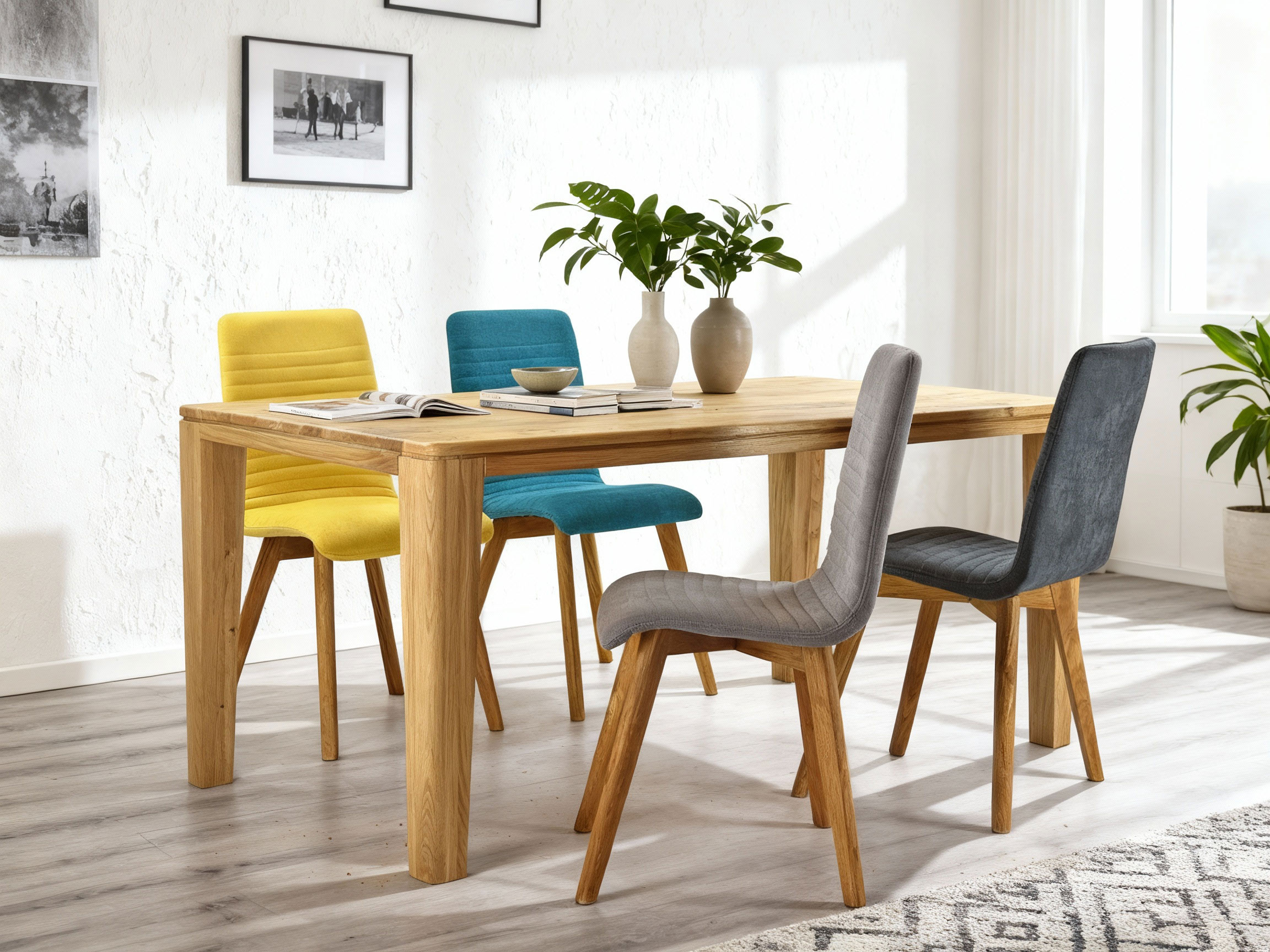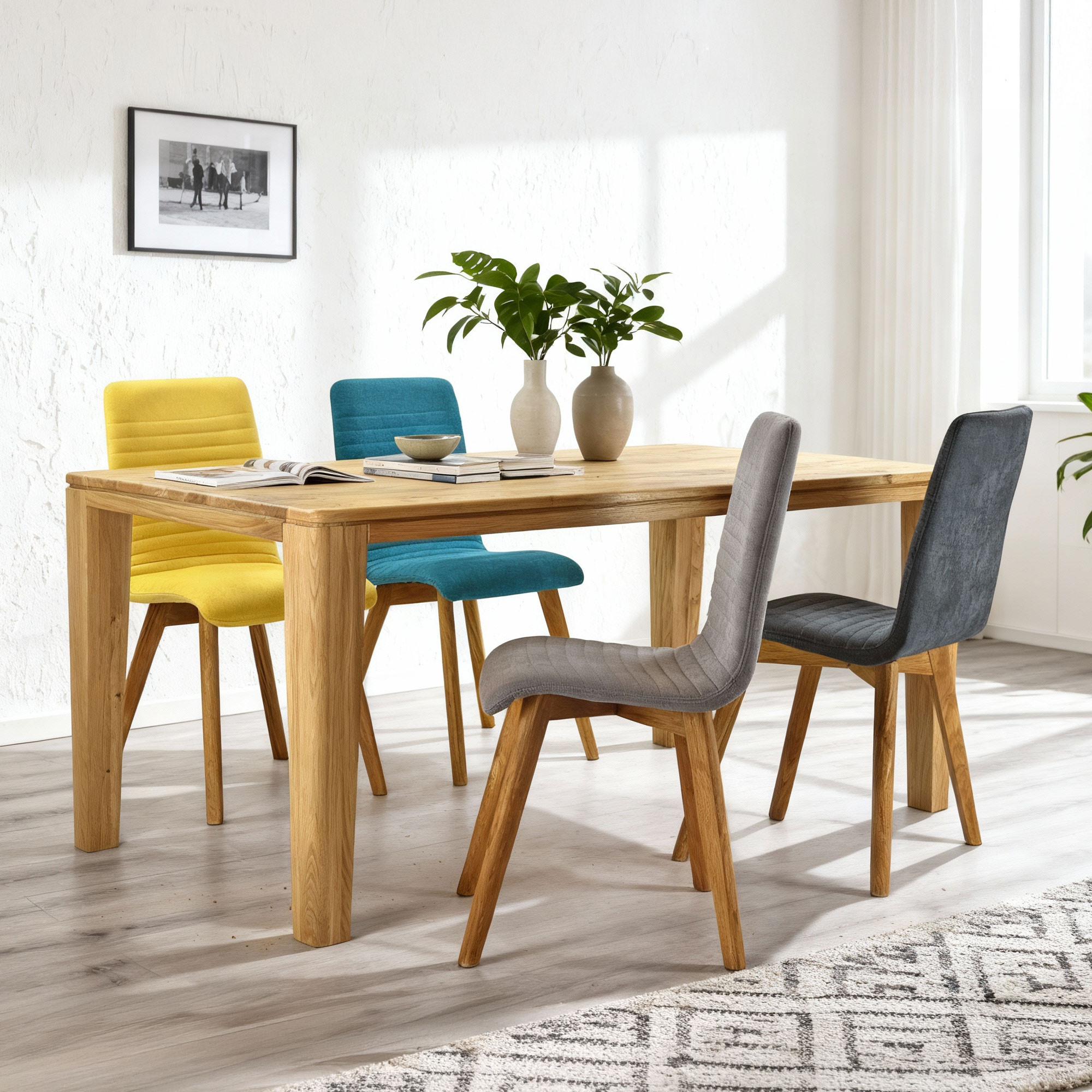Tömör tölgy étkezőasztal olajozott felülettel, Arosa kárpitozott