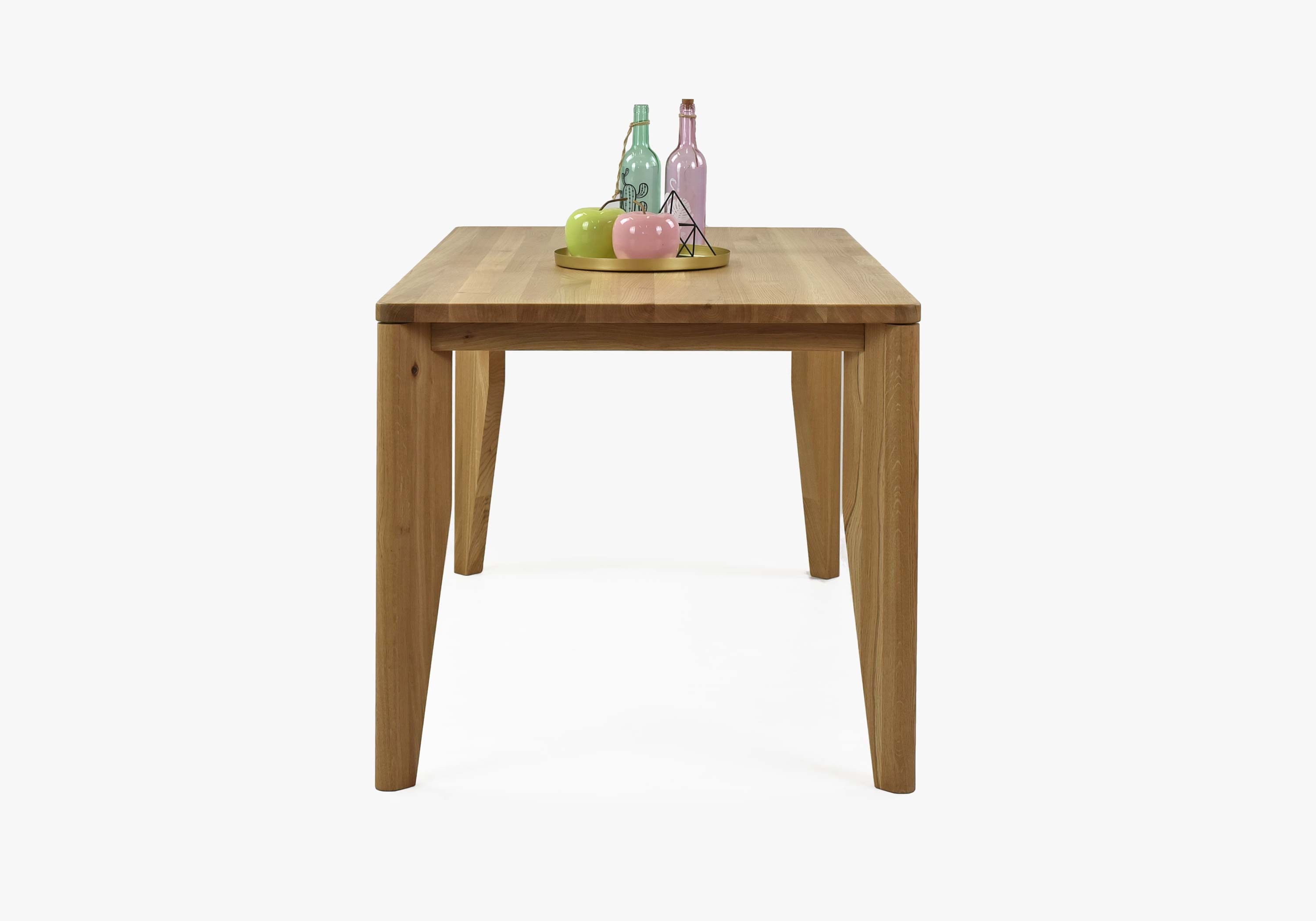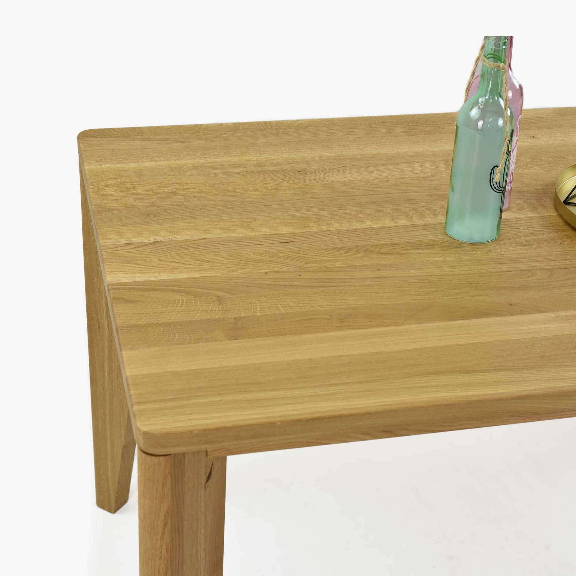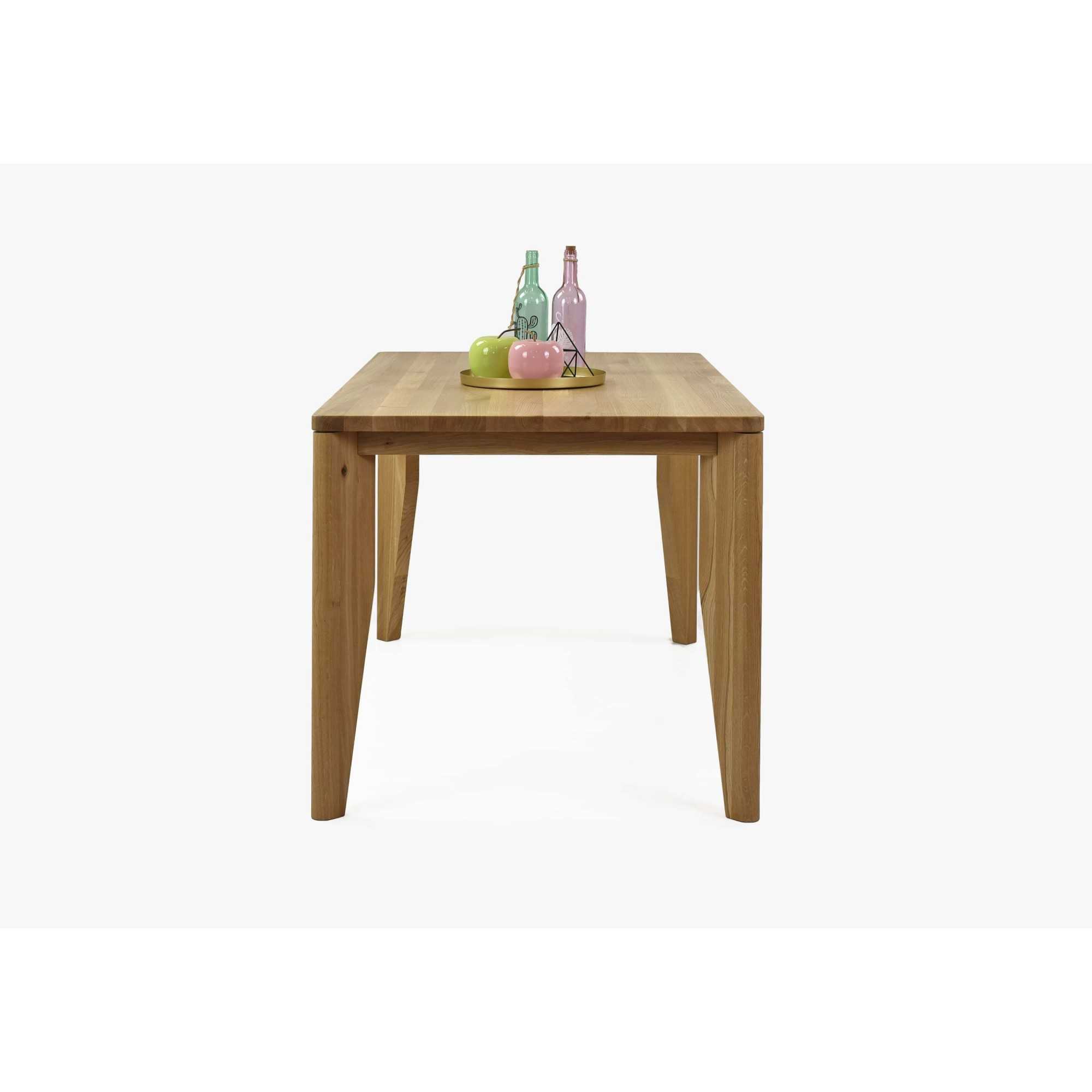 Dizájn étkezőasztal, 100% tömör tölgyfából készült a funkcionális használat érdekében. Engedje meg magának ezt a dizájnos, luxus étkezőasztalt. Nagy előnye a lekerekített élek és sarkok, így elkerülhetőek a felesleges sérülések. Masszív, stabil lábak mérete akár 15 x 4,5 cm biztosítják az asztal nagy stabilitását. A munkalap vastagsága akár 3 cm, ami tölgyfánál teljesen elegendő. Az asztal előnye, hogy a lábak a végeken vannak elhelyezve, így hatalmas helyet nyer a székek vagy fotelek számára. Az asztal magassága 76 cm, az asztallap alsó széléig mért magasság akár 67 cm.