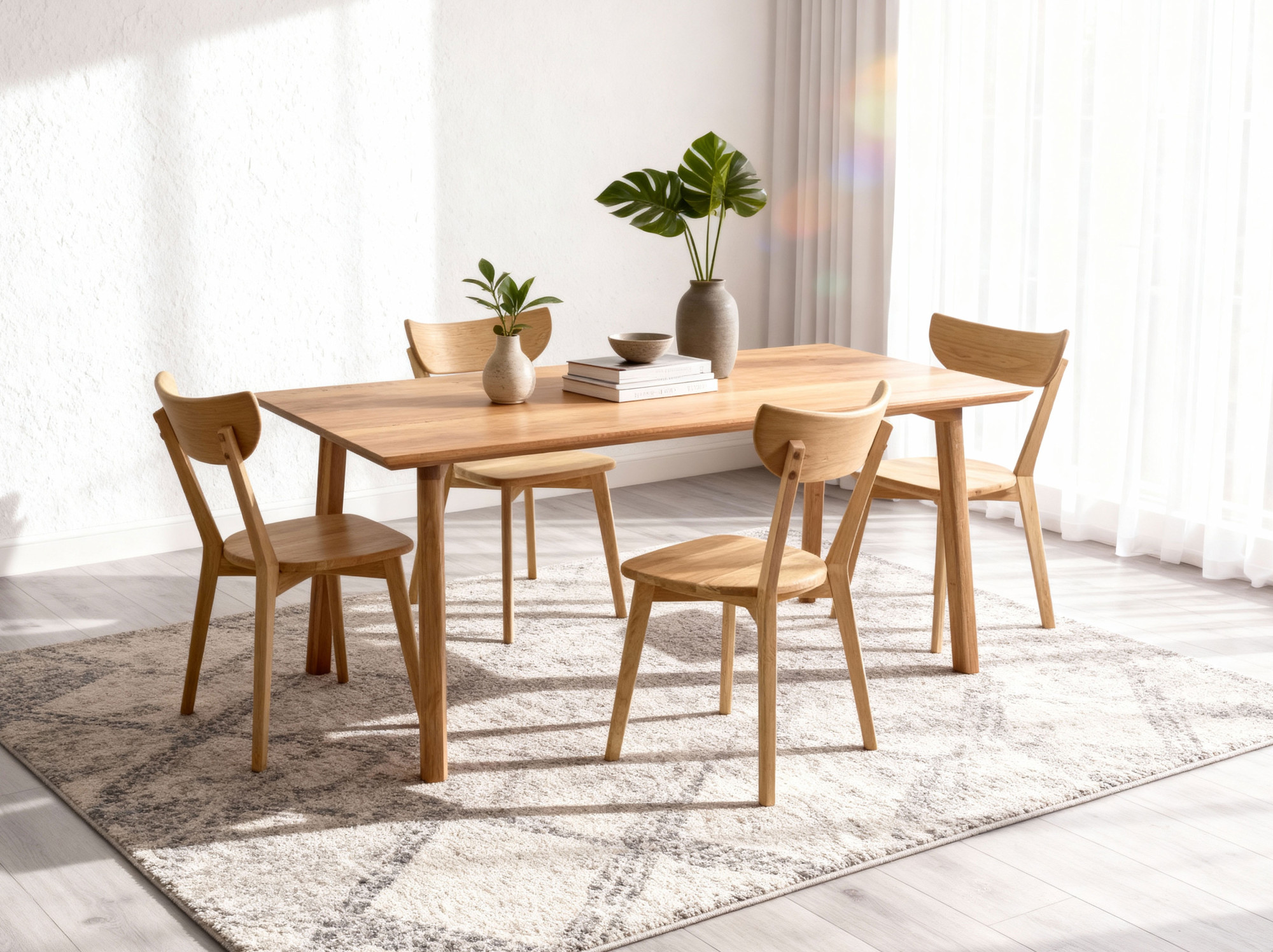 Az Eva székek ugyanolyan szeretettel készülnek a természet és a részletek iránt. Teljesen fából készült szerkezetük és a természetes olajjal kezelt felületük megőrzi az egységes tónust és a felület szépségét, így a székek nemcsak funkcionális ülőalkalmatosságok, hanem művészi darabok is otthonában. A természetes olaj használata a felületkezelésben biztosítja, hogy ez az étkezőszett környezetbarát, és hozzájárul tartósságához is. A fa természetes esztétikája minden részletben megmutatkozik, ami egyedi, meleg hangulatot kölcsönöz étkezőterének.