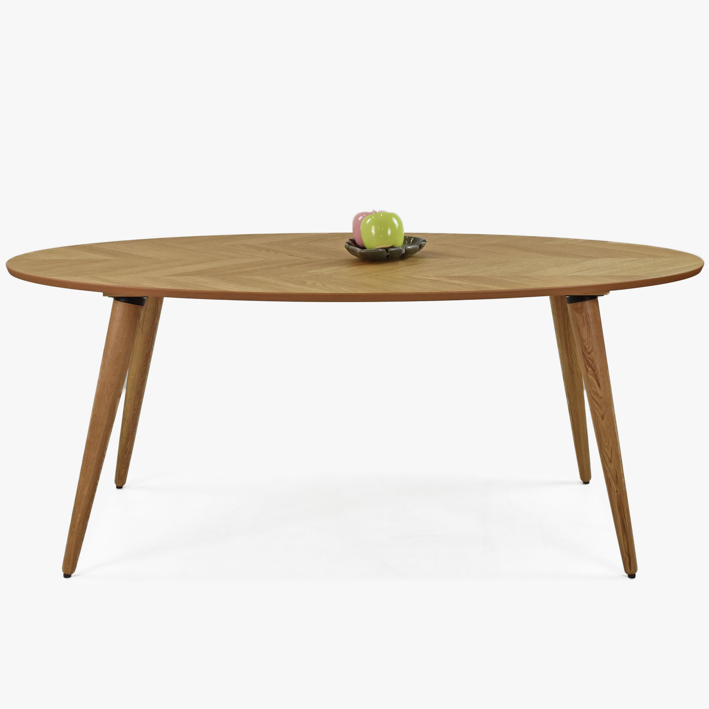 A "Miami" étkezőasztal büszkélkedhet egyedülálló asztallappal, amely természetes tölgyfurnérból készült, jellegzetes halszálka mintázattal. Az asztallap elegáns matt lakkal kezelt, amely kiemeli a fa természetes megjelenését. A masszív tölgyből készült erős lábak stabilitást és hosszú élettartamot biztosítanak. Könnyed és modern dizájnja ellenére az asztal nagyon stabil.