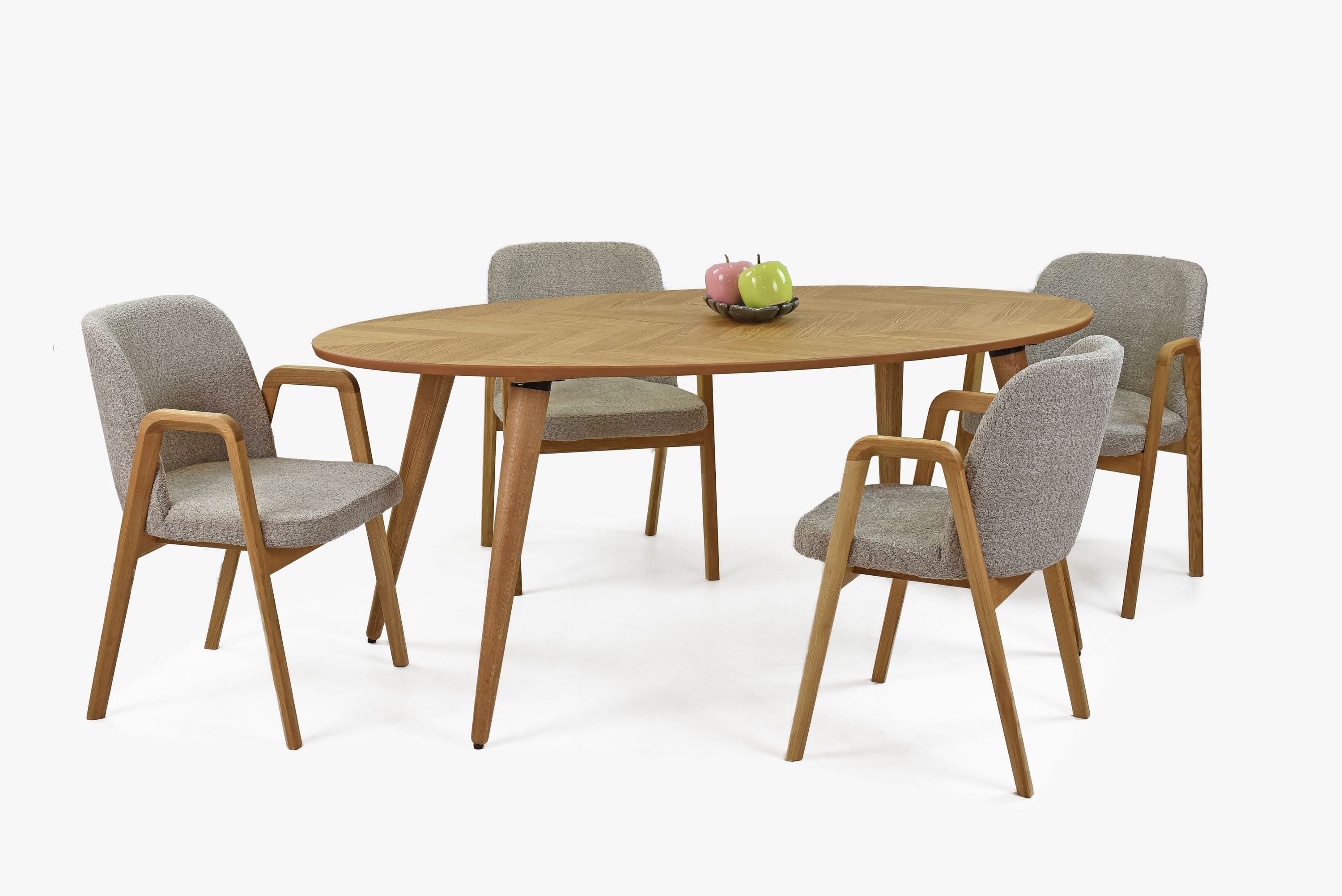 Tölgy furnér ovális étkezőasztal és 4 modern Chilla szék szett